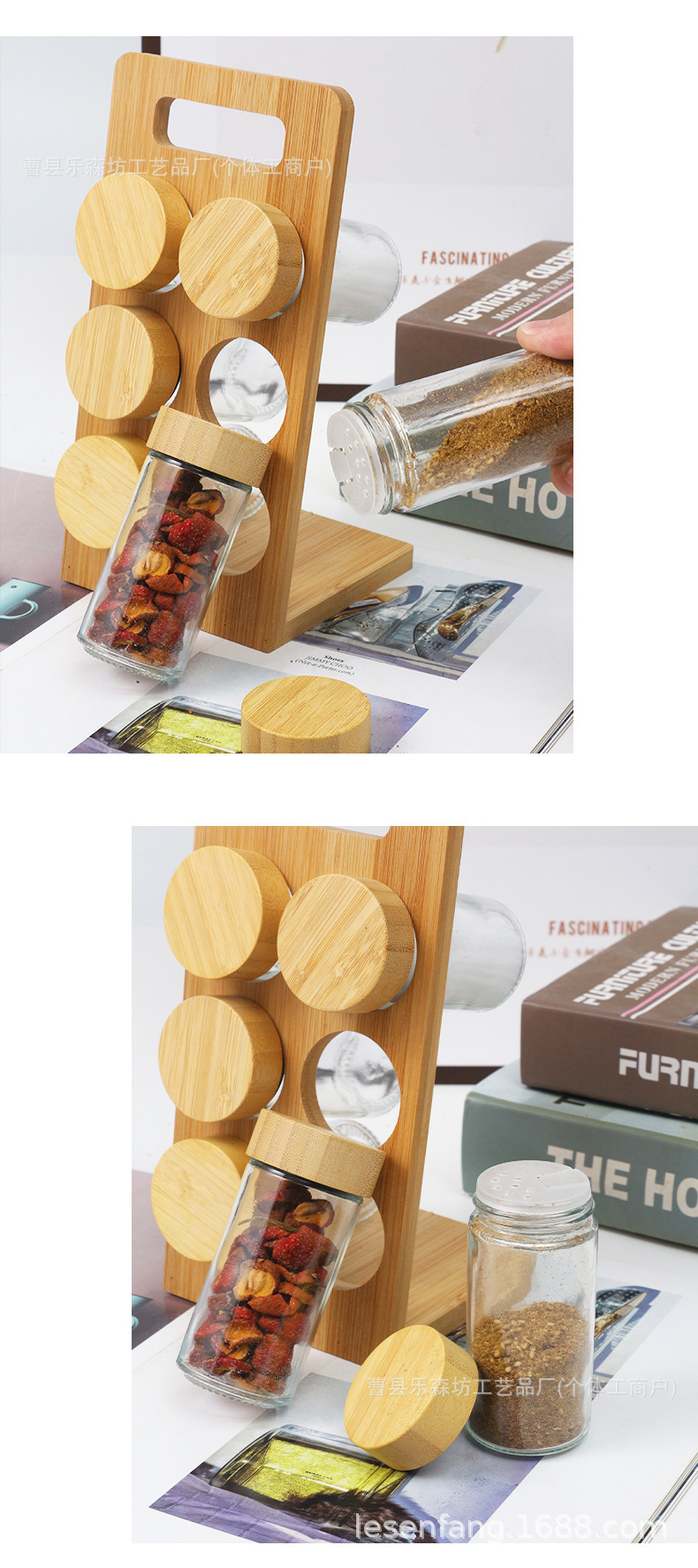 나무 부엌 후추 뚜껑 슬라이스 스파이스 저장 상자 브래킷 6 팩 향신료 병 저장 랙 세트