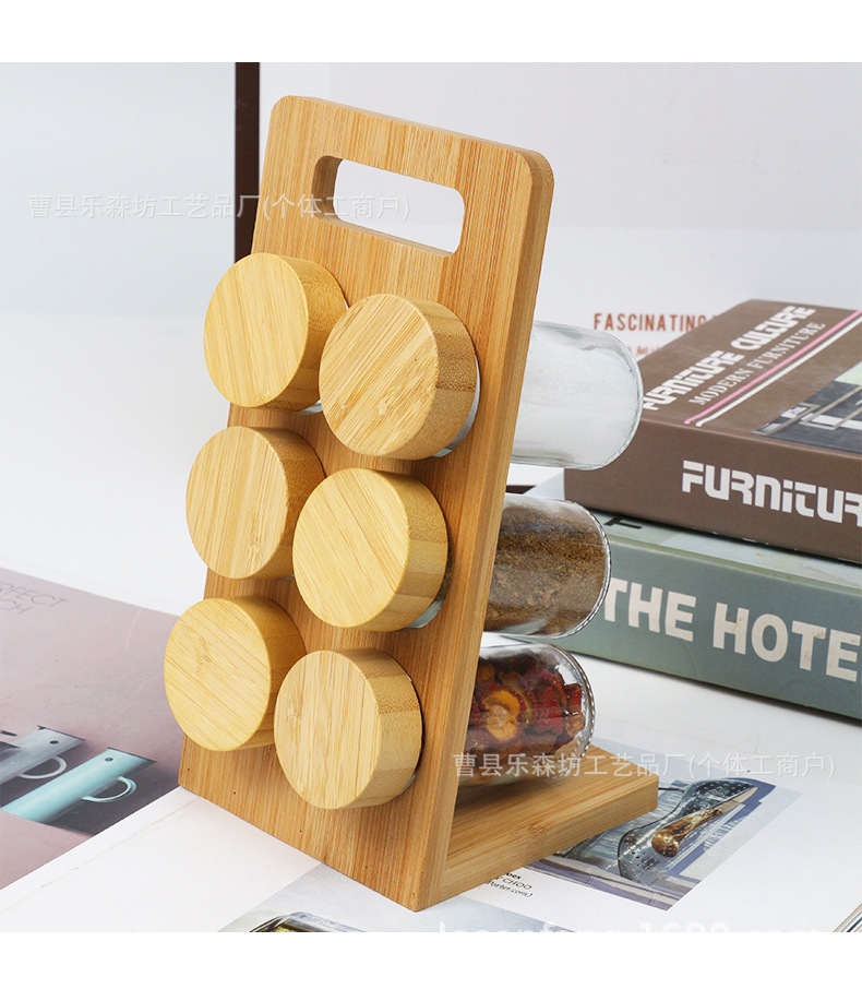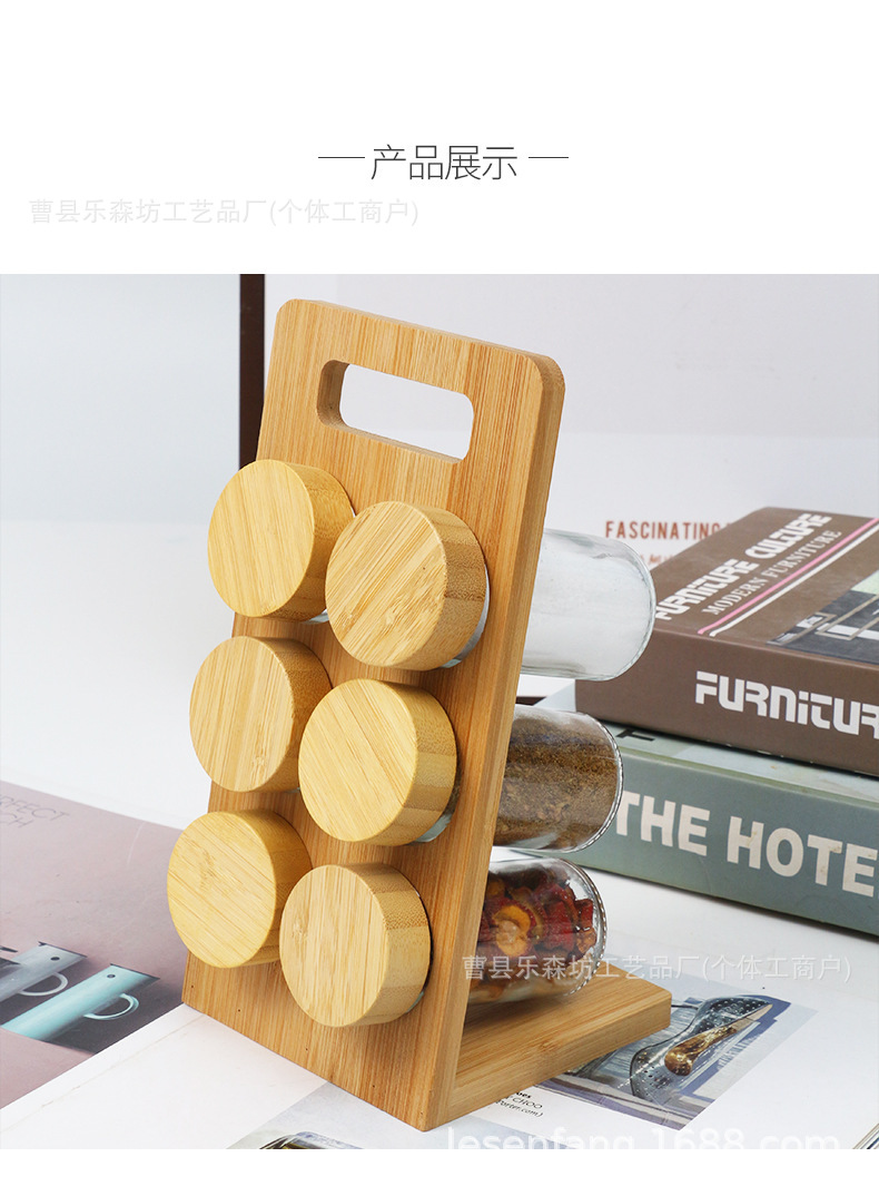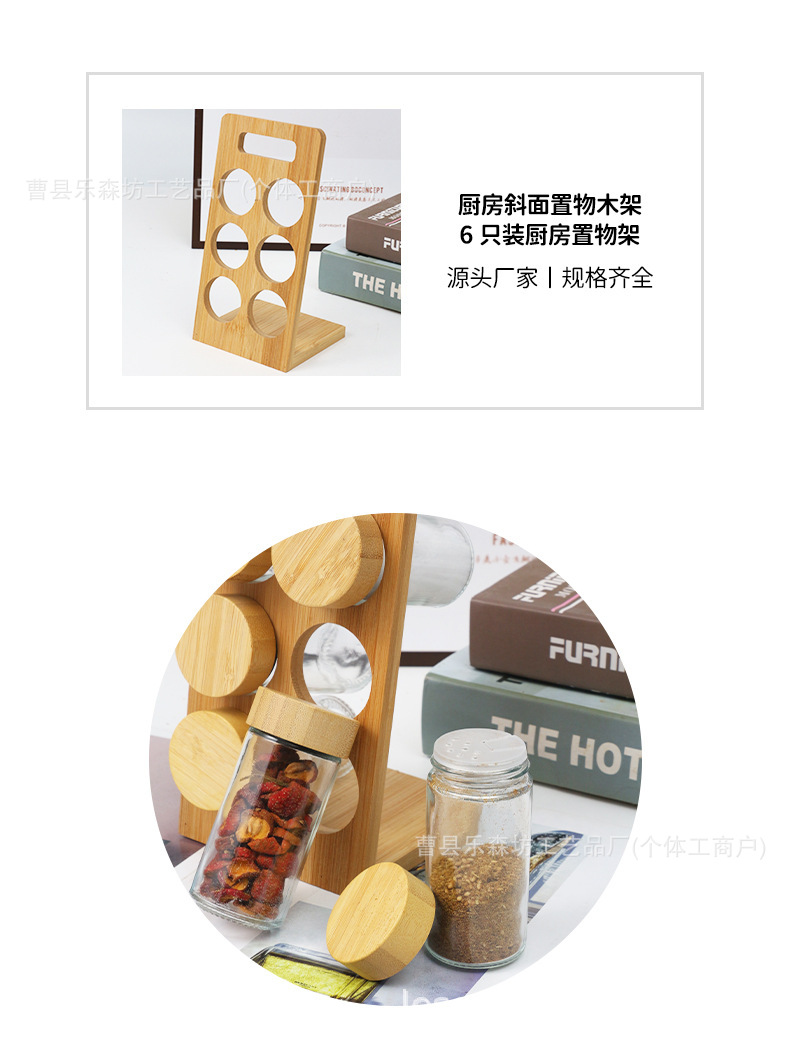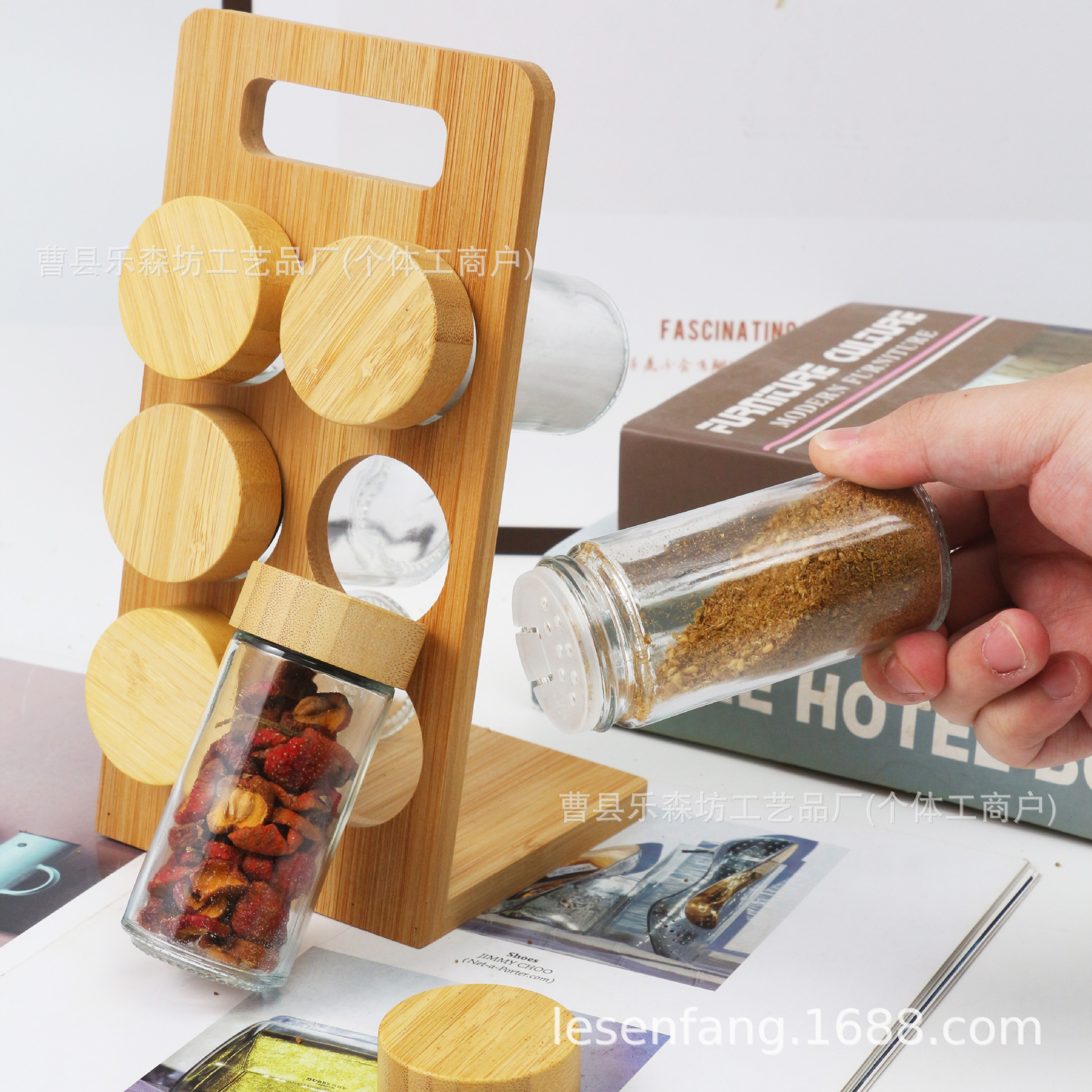 나무 부엌 후추 뚜껑 슬라이스 스파이스 저장 상자 브래킷 6 팩 향신료 병 저장 랙 세트스토어 가기