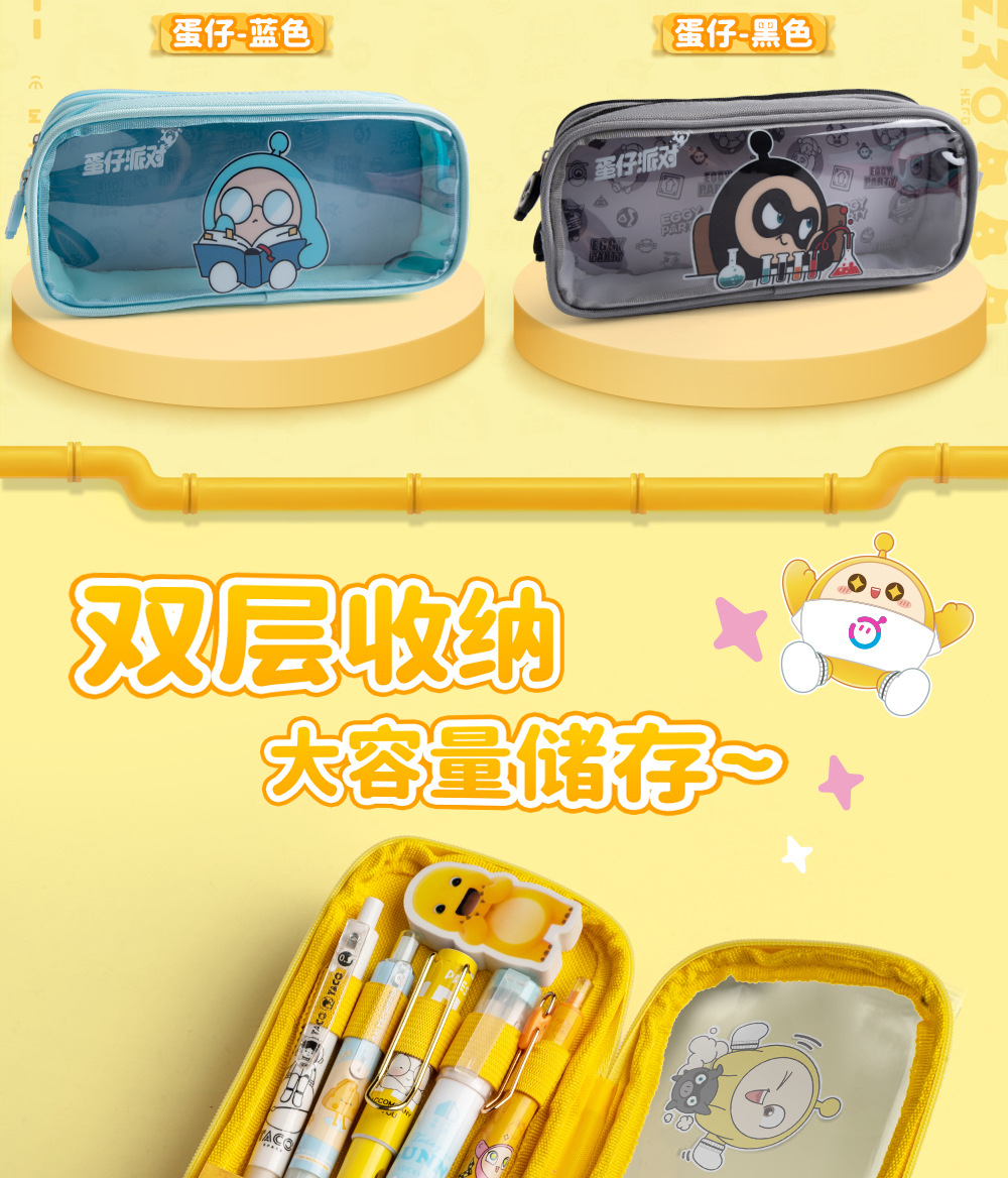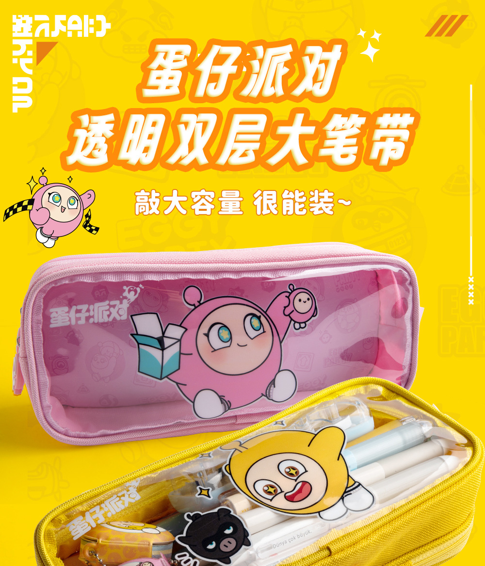 Maihe 정품 인증 계란 파티 더블 레이어 래그 본 연필 케이스 학생 대용량 시각적 만화 문구 연필 케이스스토어 가기