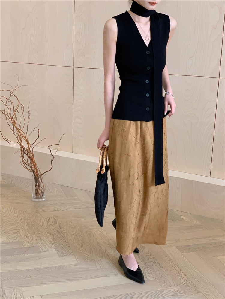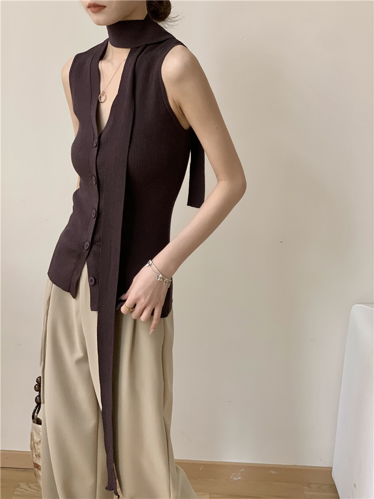 여름 새로운 패션 딥 V 넥 싱글 브레스트 슬리브 숄더 허리 슬리밍 니트 셔츠 턱받이 조끼 탑 여성스토어 가기
