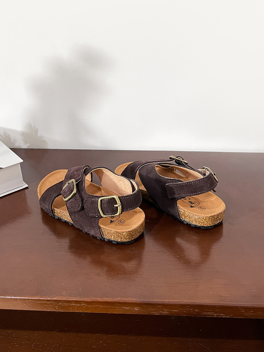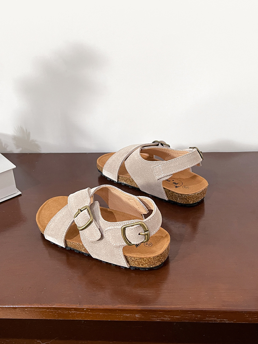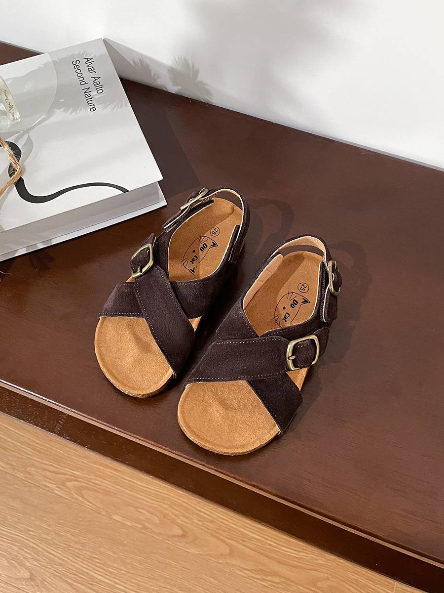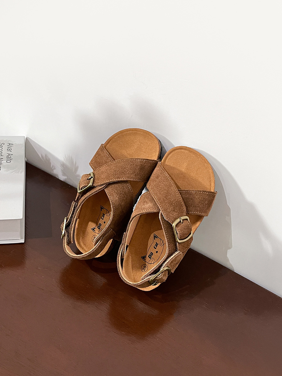 2025 봄과 여름 새로운 여자 샌들 두꺼운 밑창 젖빛 가죽 신발 소년 샌들 캐주얼 솔리드 컬러 Boken 샌들