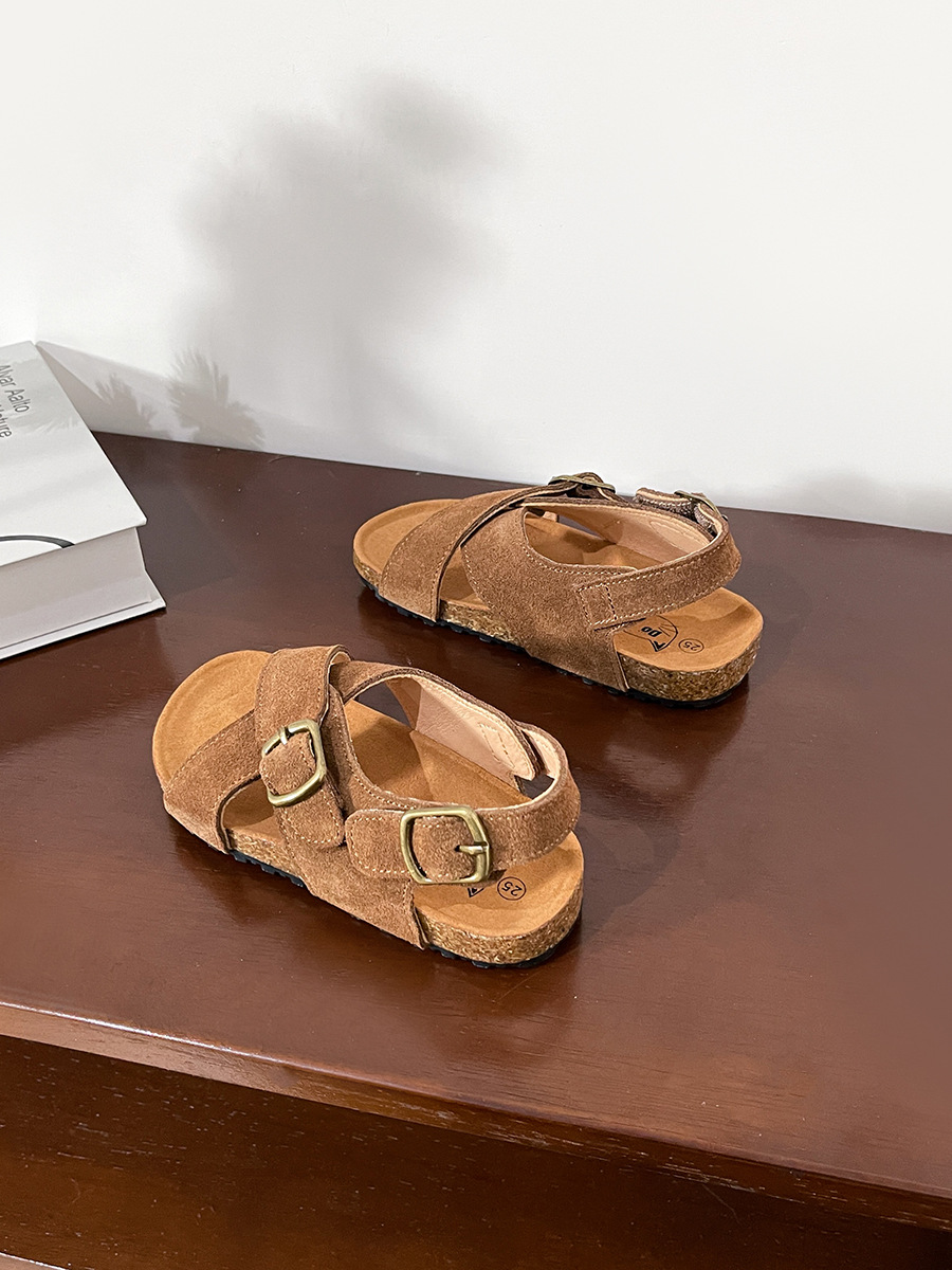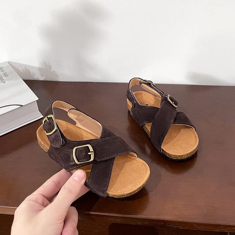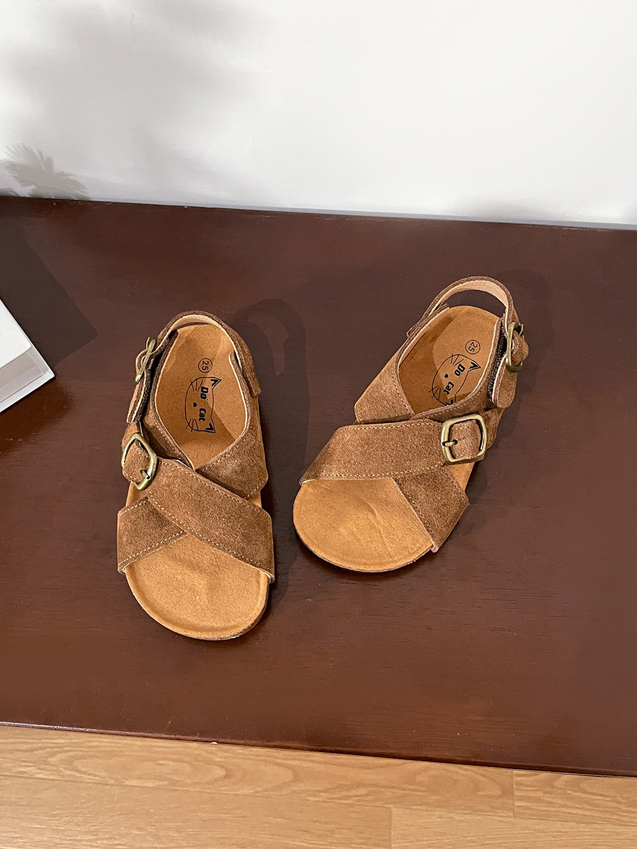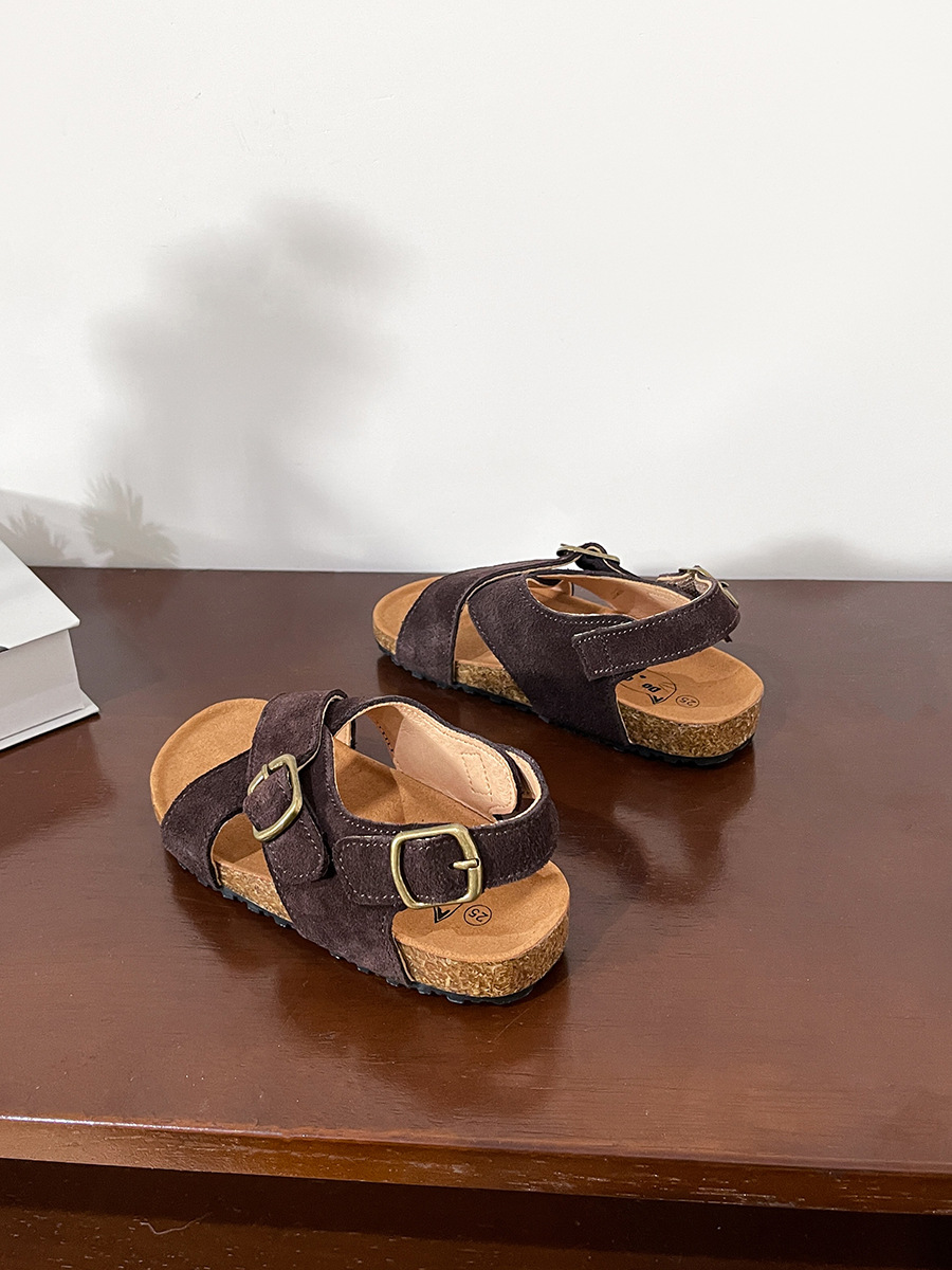 2025 봄과 여름 새로운 여자 샌들 두꺼운 밑창 젖빛 가죽 신발 소년 샌들 캐주얼 솔리드 컬러 Boken 샌들