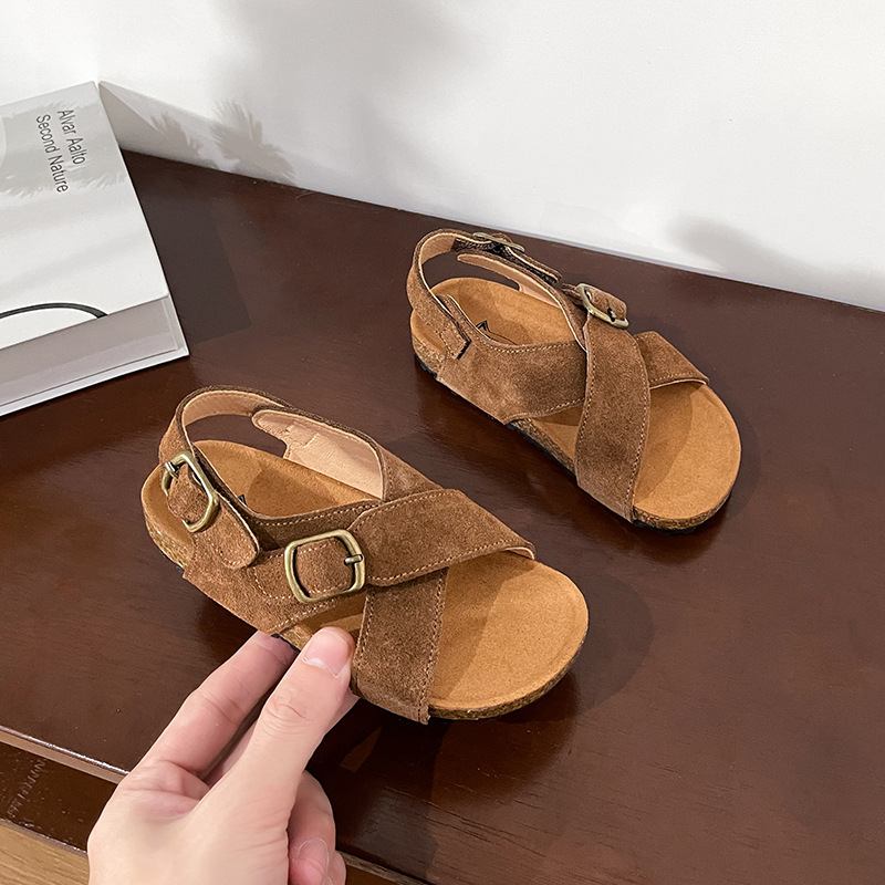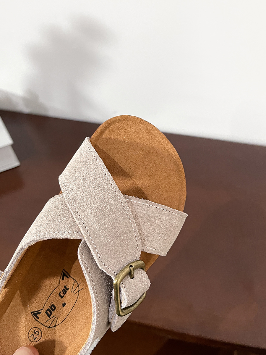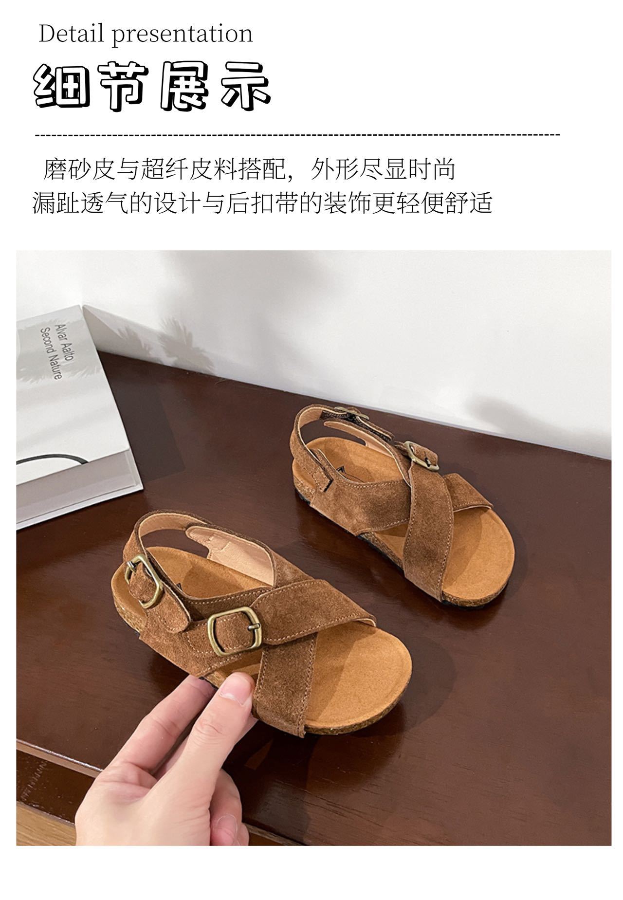 2025 봄과 여름 새로운 여자 샌들 두꺼운 밑창 젖빛 가죽 신발 소년 샌들 캐주얼 솔리드 컬러 Boken 샌들스토어 가기