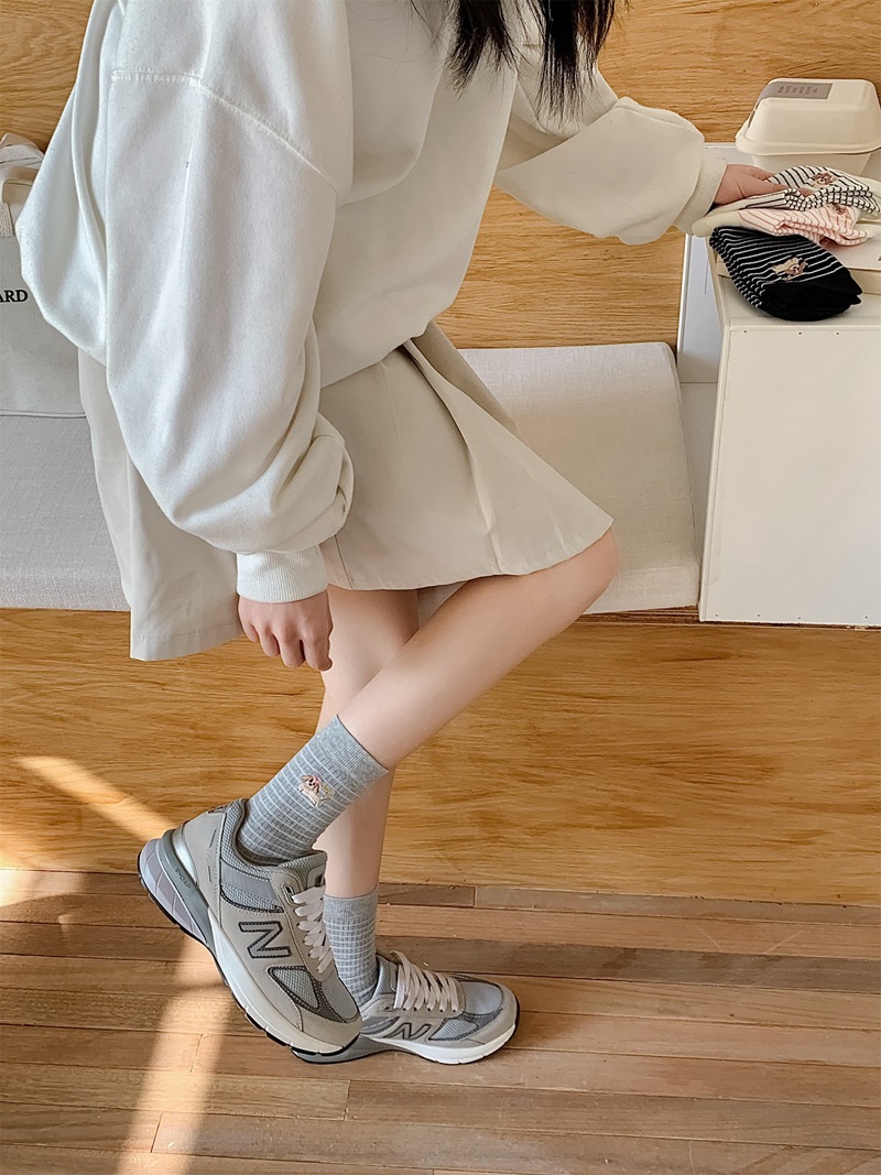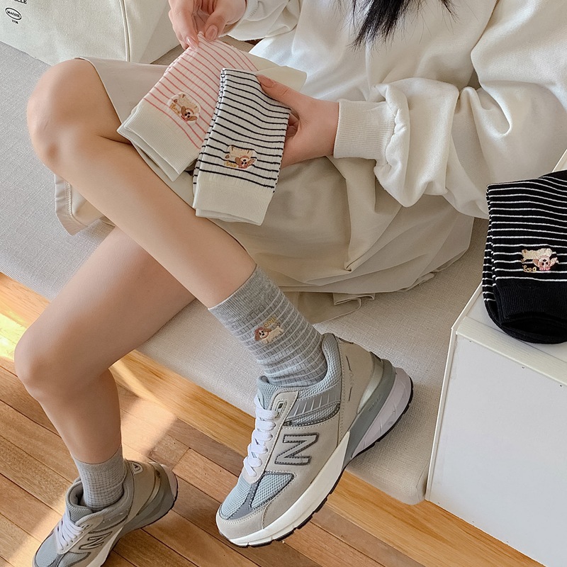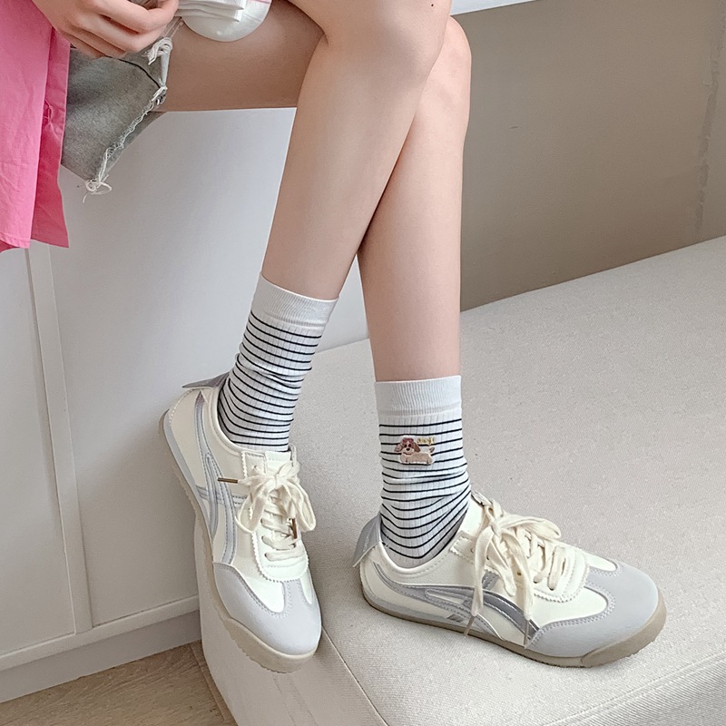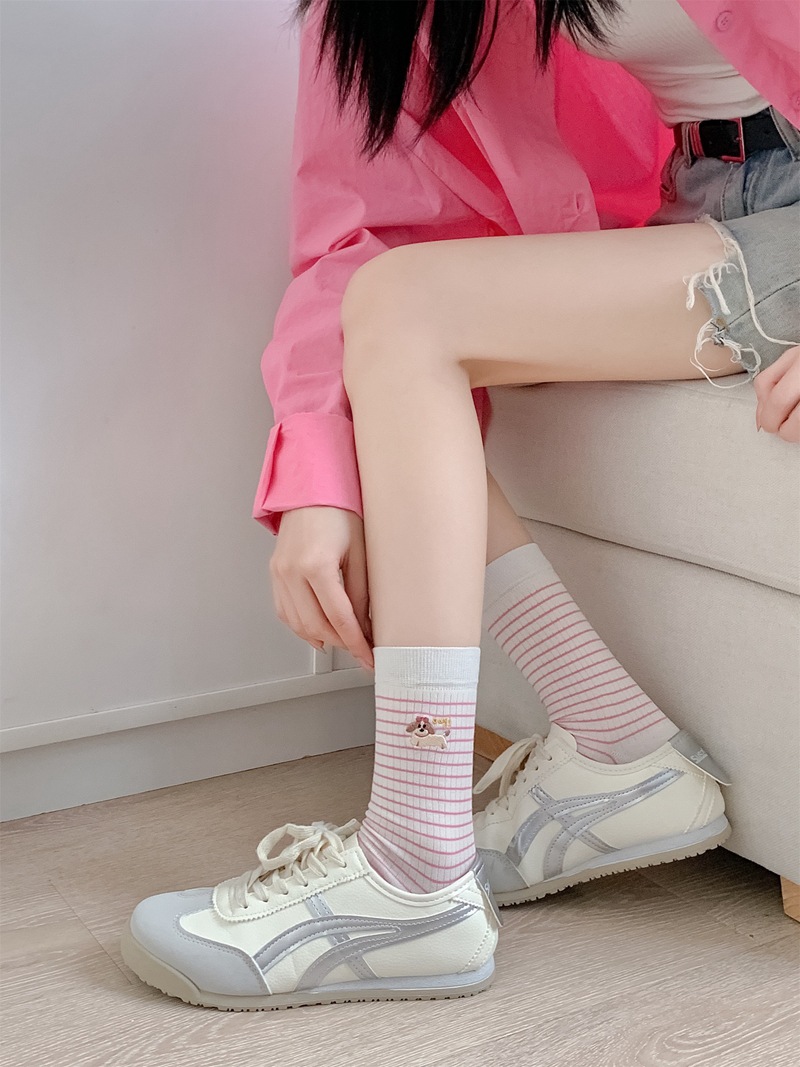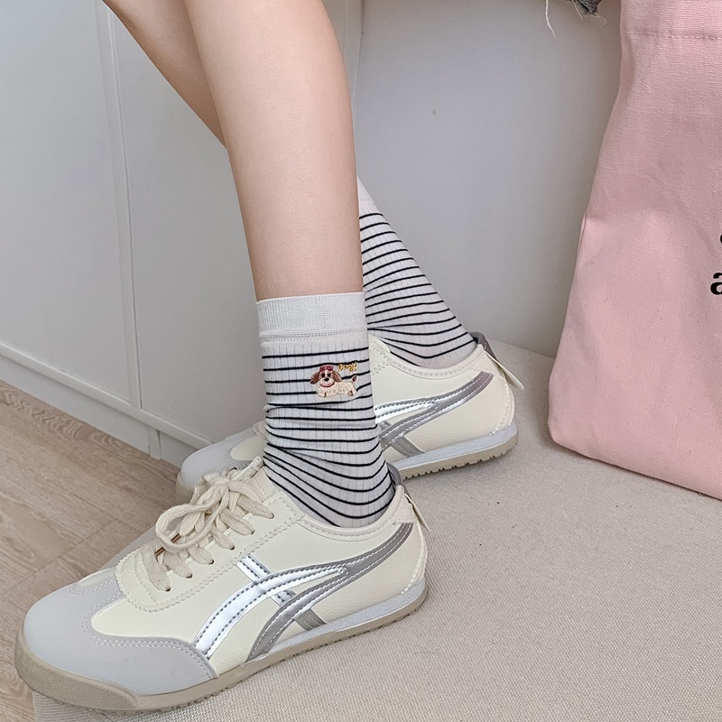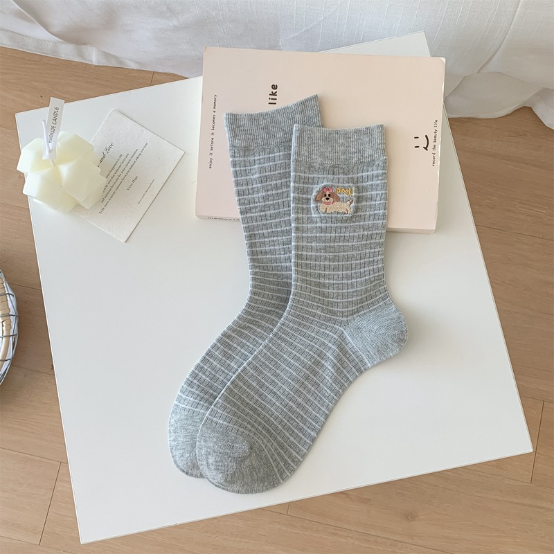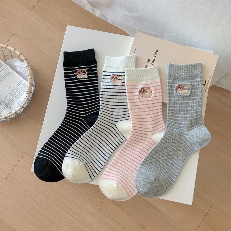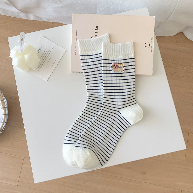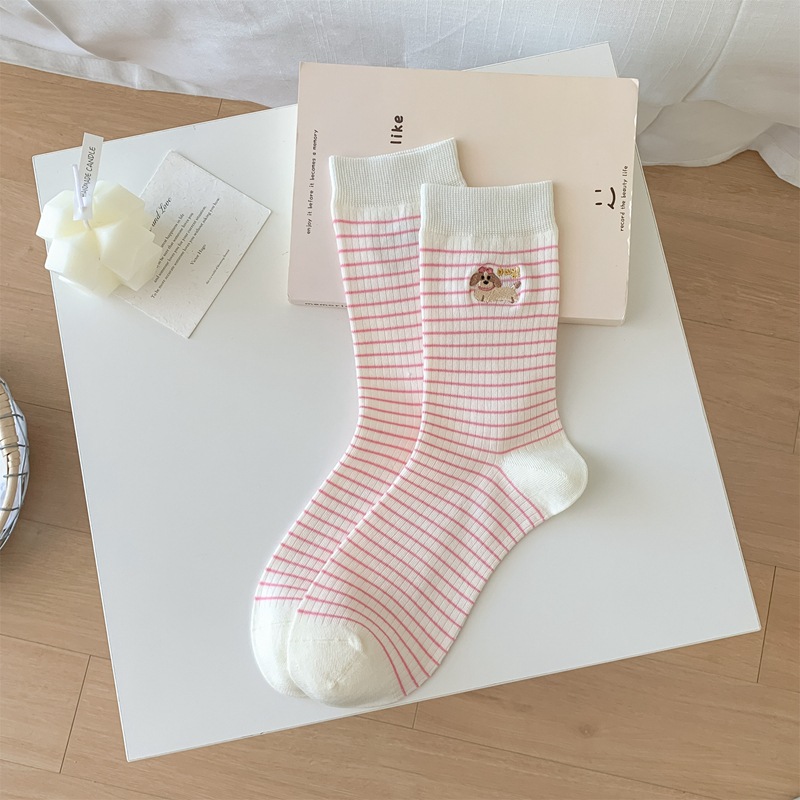 25ss春秋简约款横条纹可爱卡通小狗无骨刺绣袜