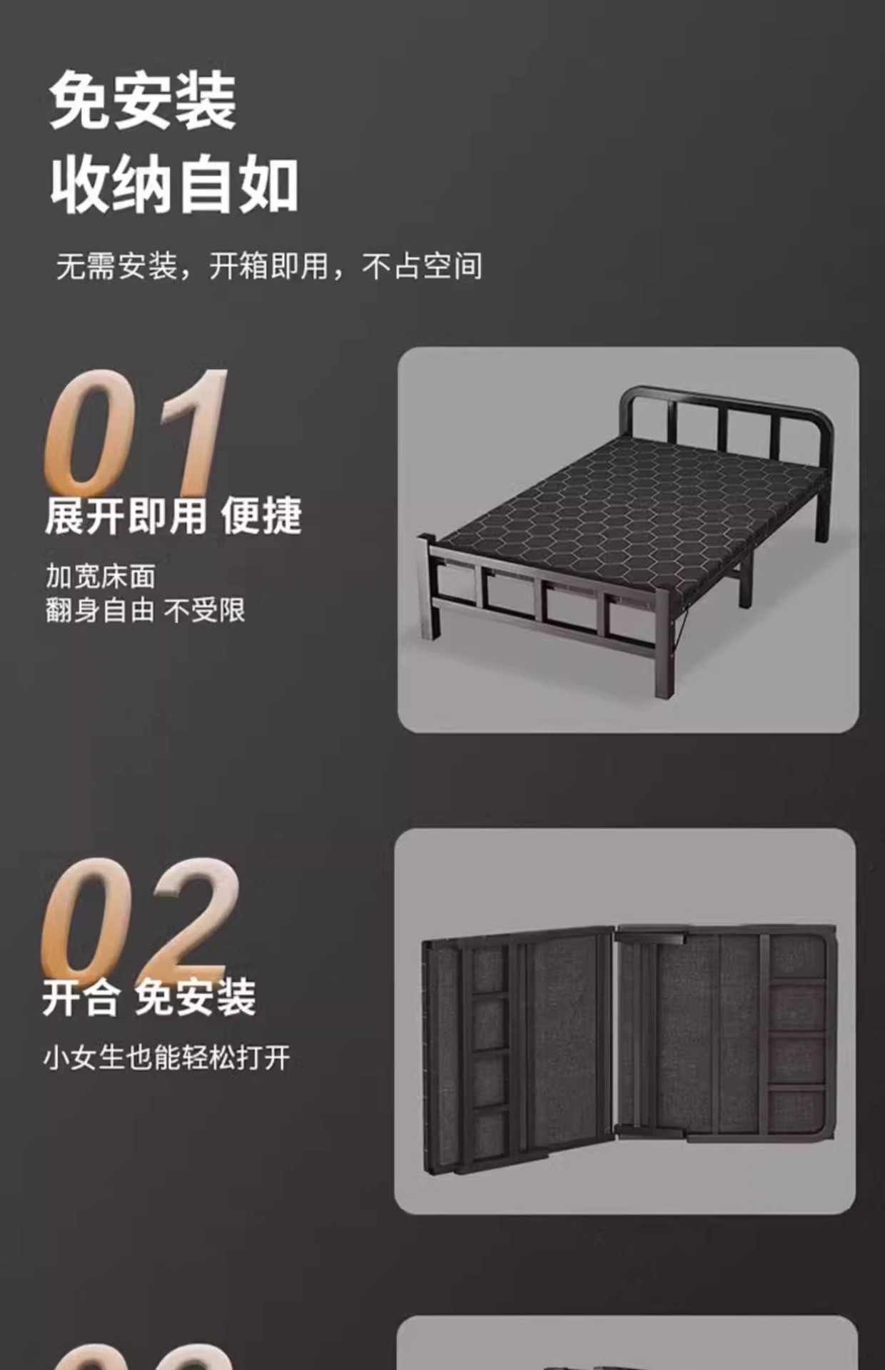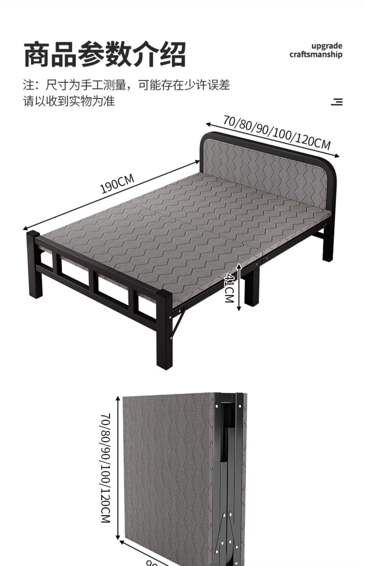 • 철골 두꺼운 판❤두꺼운 스펀지❤길이 190* 폭 70 [설치 불필요 소프트 패키지 침대 옆 모델]