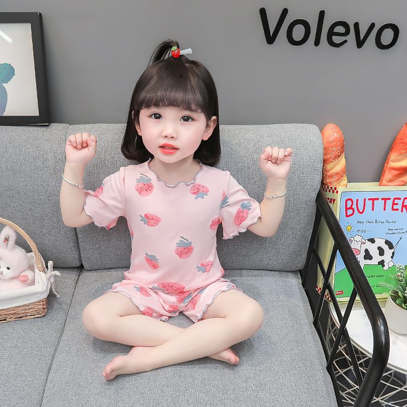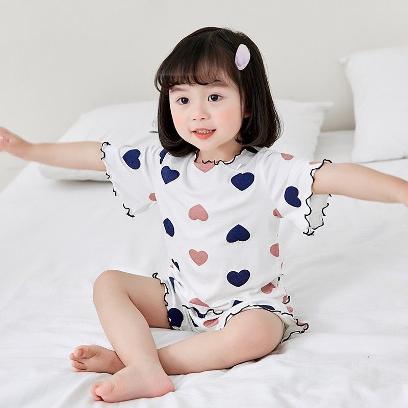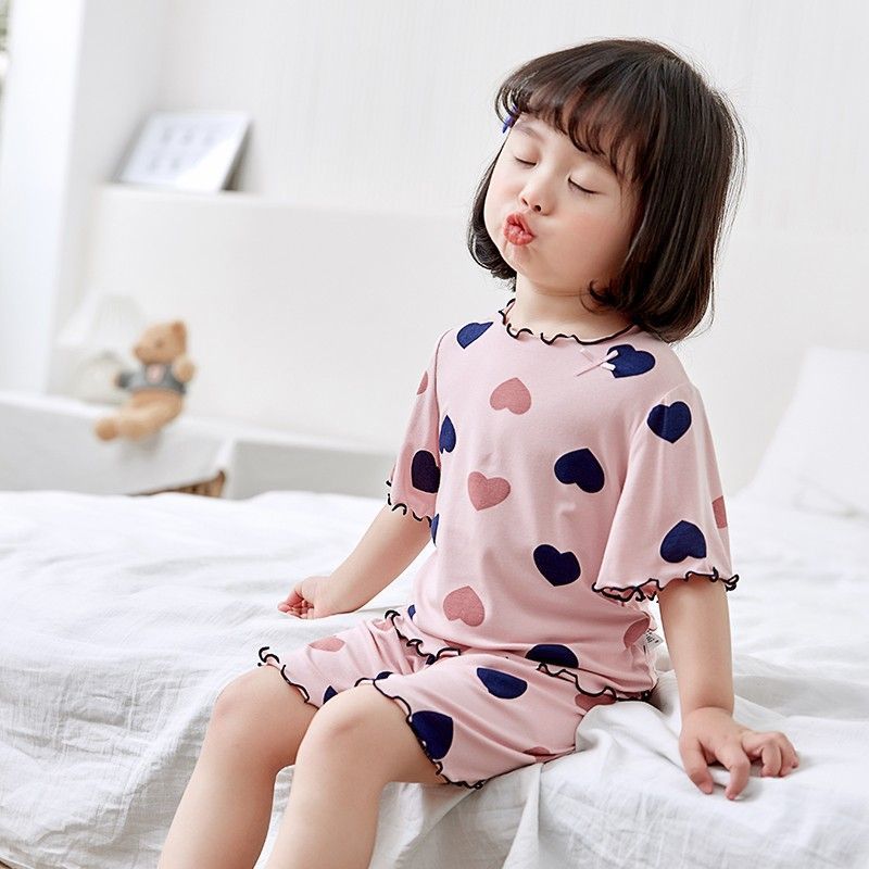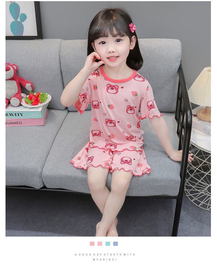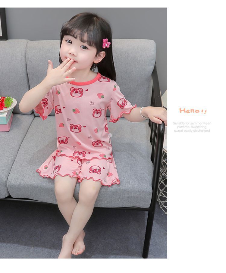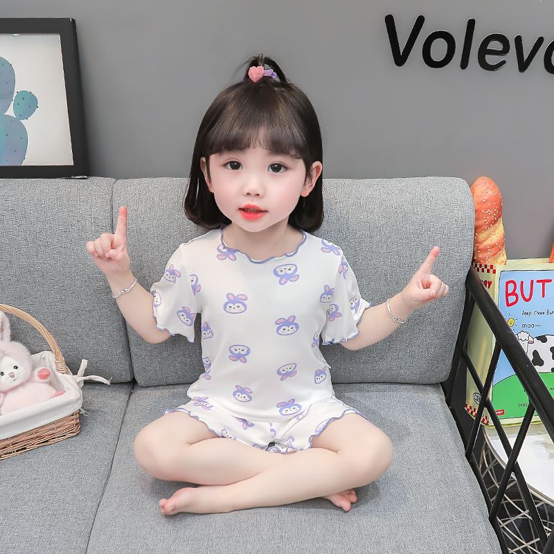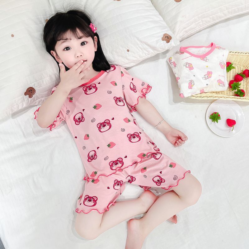여자 모달 반팔 반바지 잠옷 아기 소녀 레이스 만화 인쇄 홈 의류 어린이 여름 정장 새로운스토어 가기