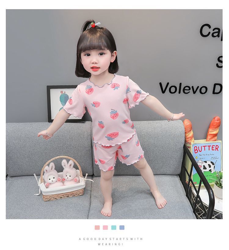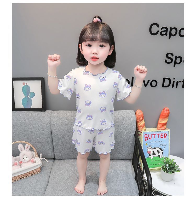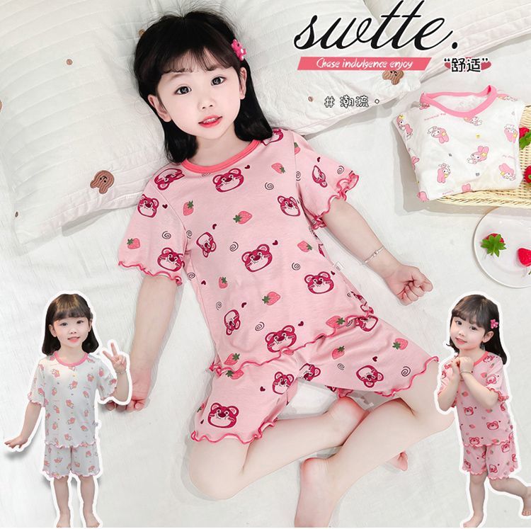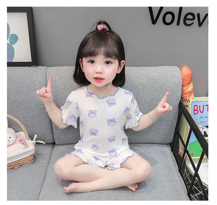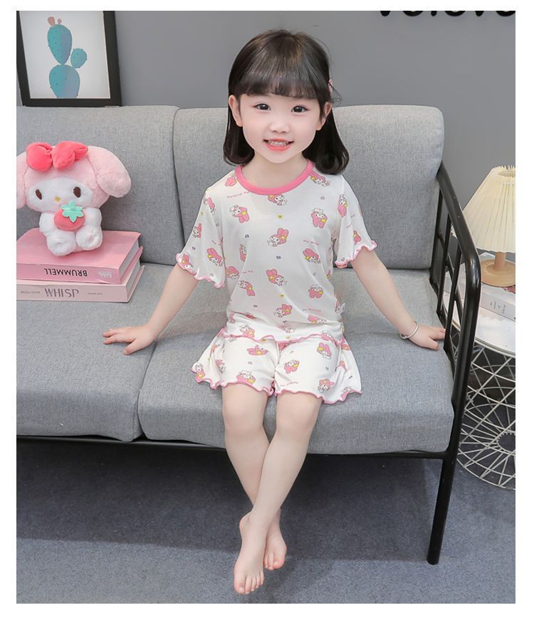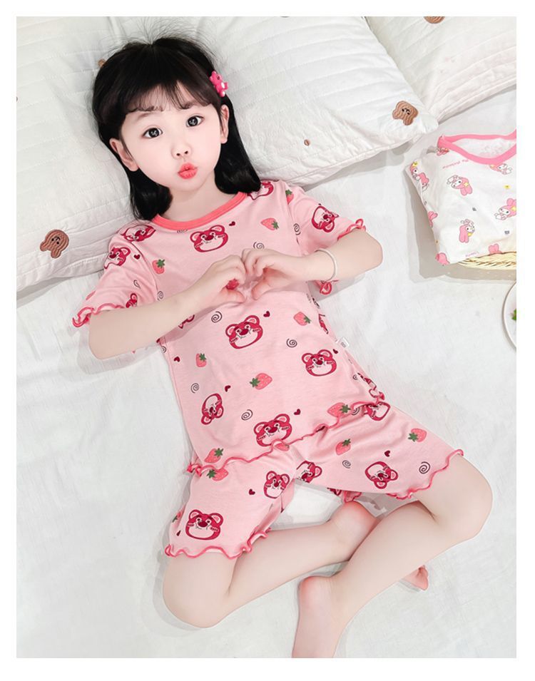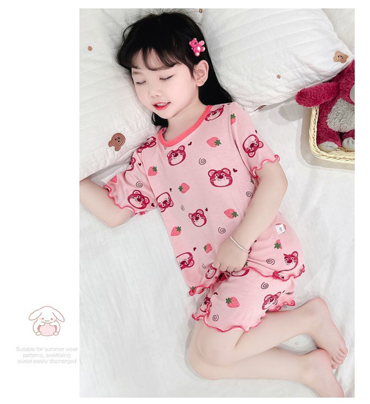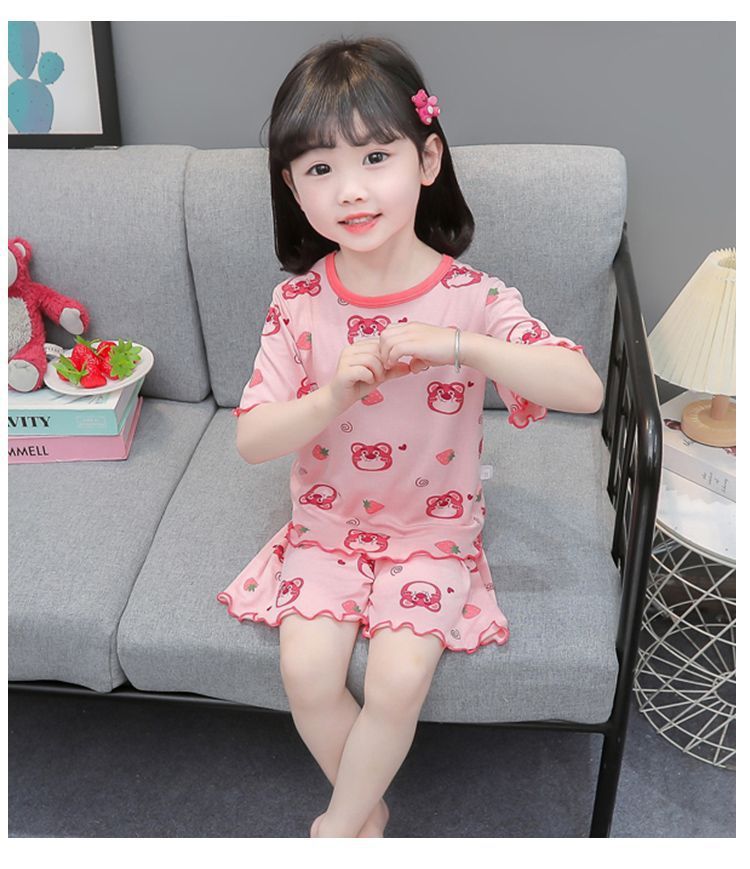 여자 모달 반팔 반바지 잠옷 아기 소녀 레이스 만화 인쇄 홈 의류 어린이 여름 정장 새로운스토어 가기