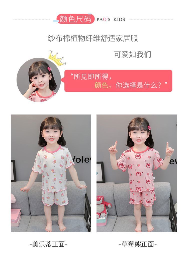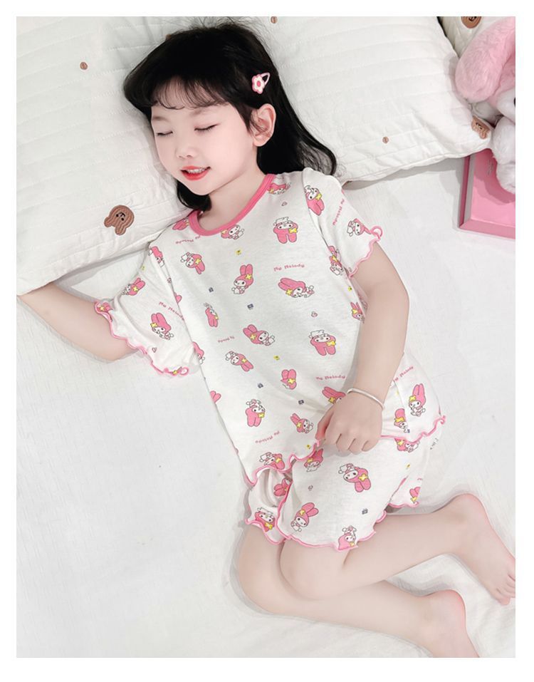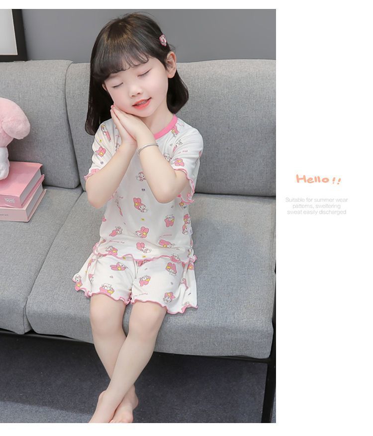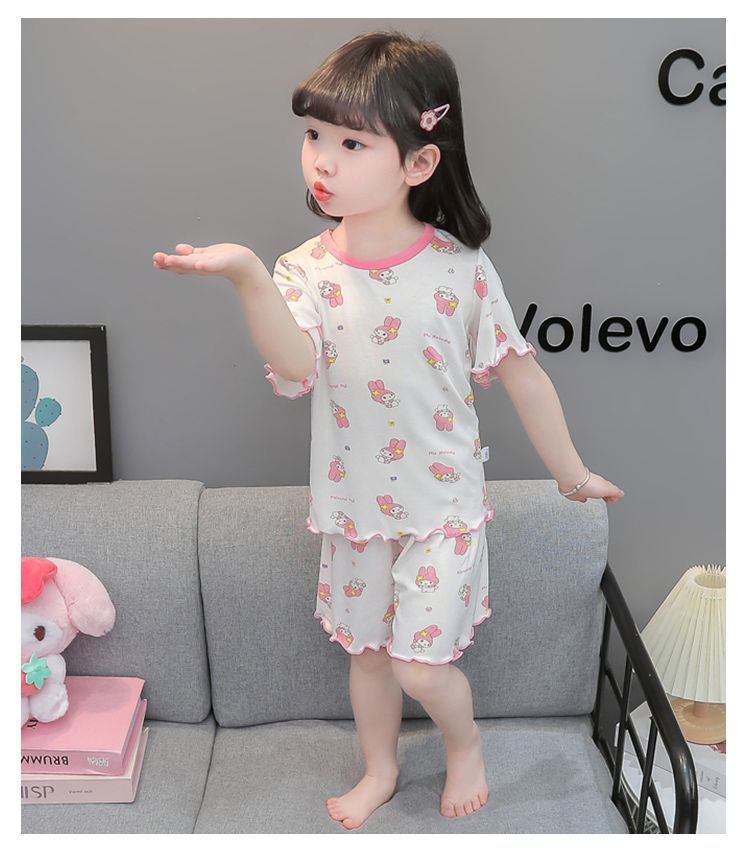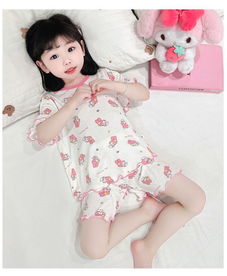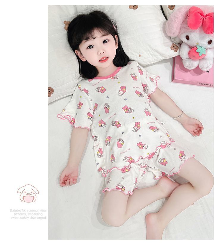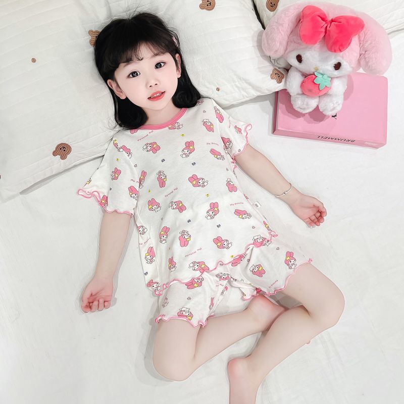 여자 모달 반팔 반바지 잠옷 아기 소녀 레이스 만화 인쇄 홈 의류 어린이 여름 정장 새로운스토어 가기