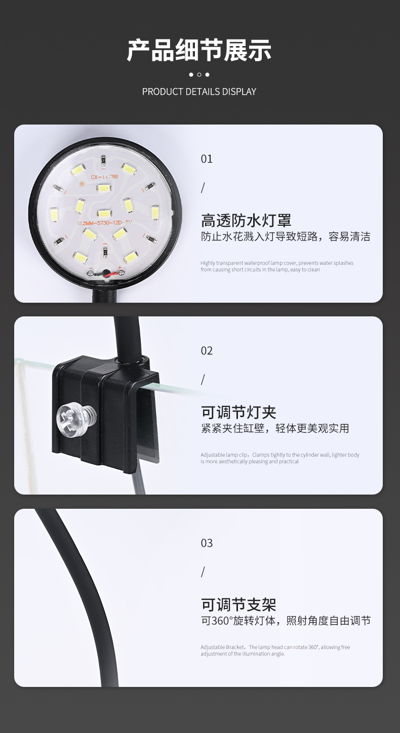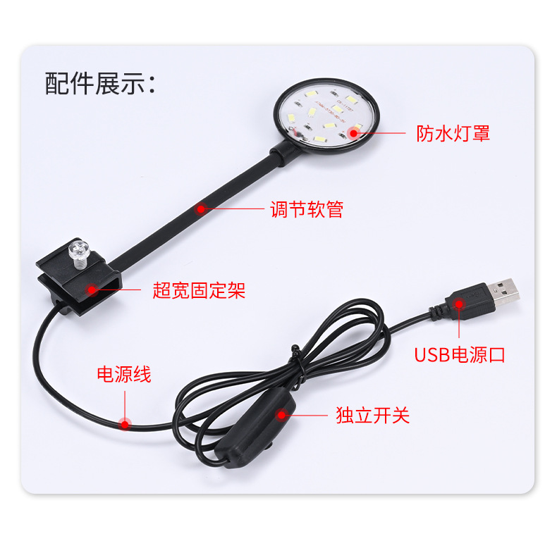 수족관 조명 장비 USB 작은 물고기 탱크 램프 수족관 조경 브래킷 클립 램프 라운드 led 수족관 물 잔디 램프