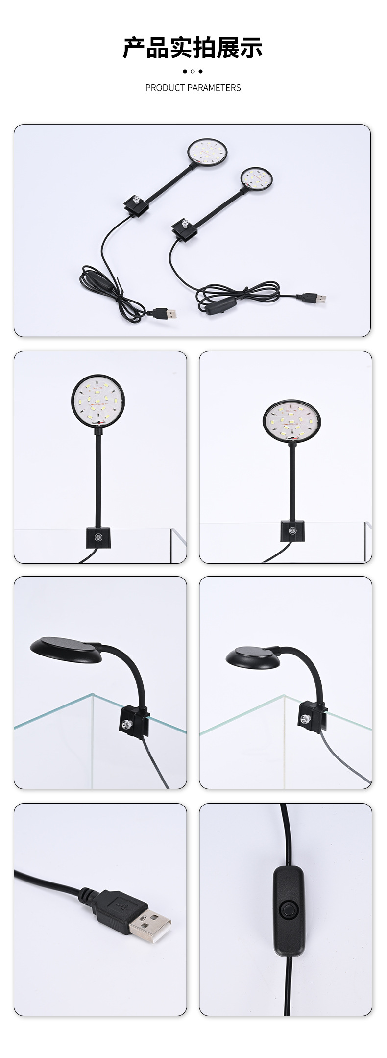 수족관 조명 장비 USB 작은 물고기 탱크 램프 수족관 조경 브래킷 클립 램프 라운드 led 수족관 물 잔디 램프스토어 가기