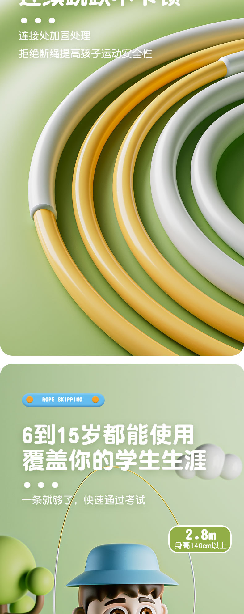 어린이 줄넘기 6-13세용, 레이싱 줄넘기, 전문가용 샌드스타일 스포츠 피트니스 용품, 쉽게 엉키지 않고 미끄럼 방지 기능이 있습니다.스토어 가기