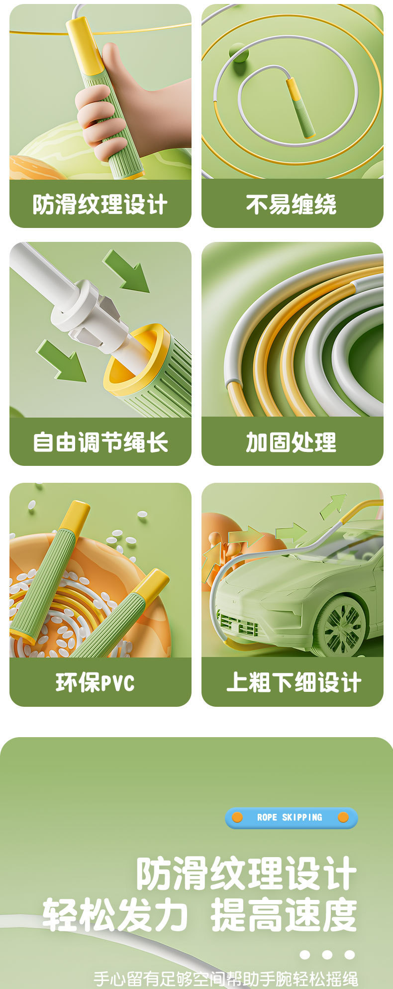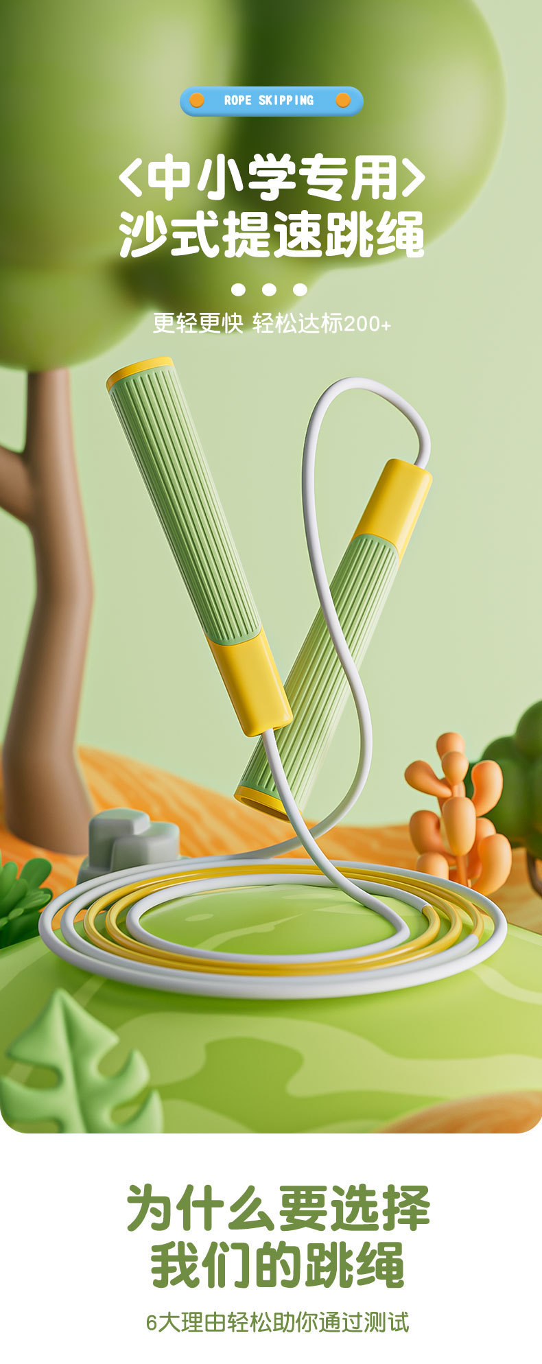어린이 줄넘기 6-13세용, 레이싱 줄넘기, 전문가용 샌드스타일 스포츠 피트니스 용품, 쉽게 엉키지 않고 미끄럼 방지 기능이 있습니다.