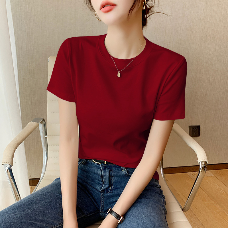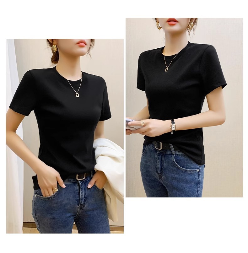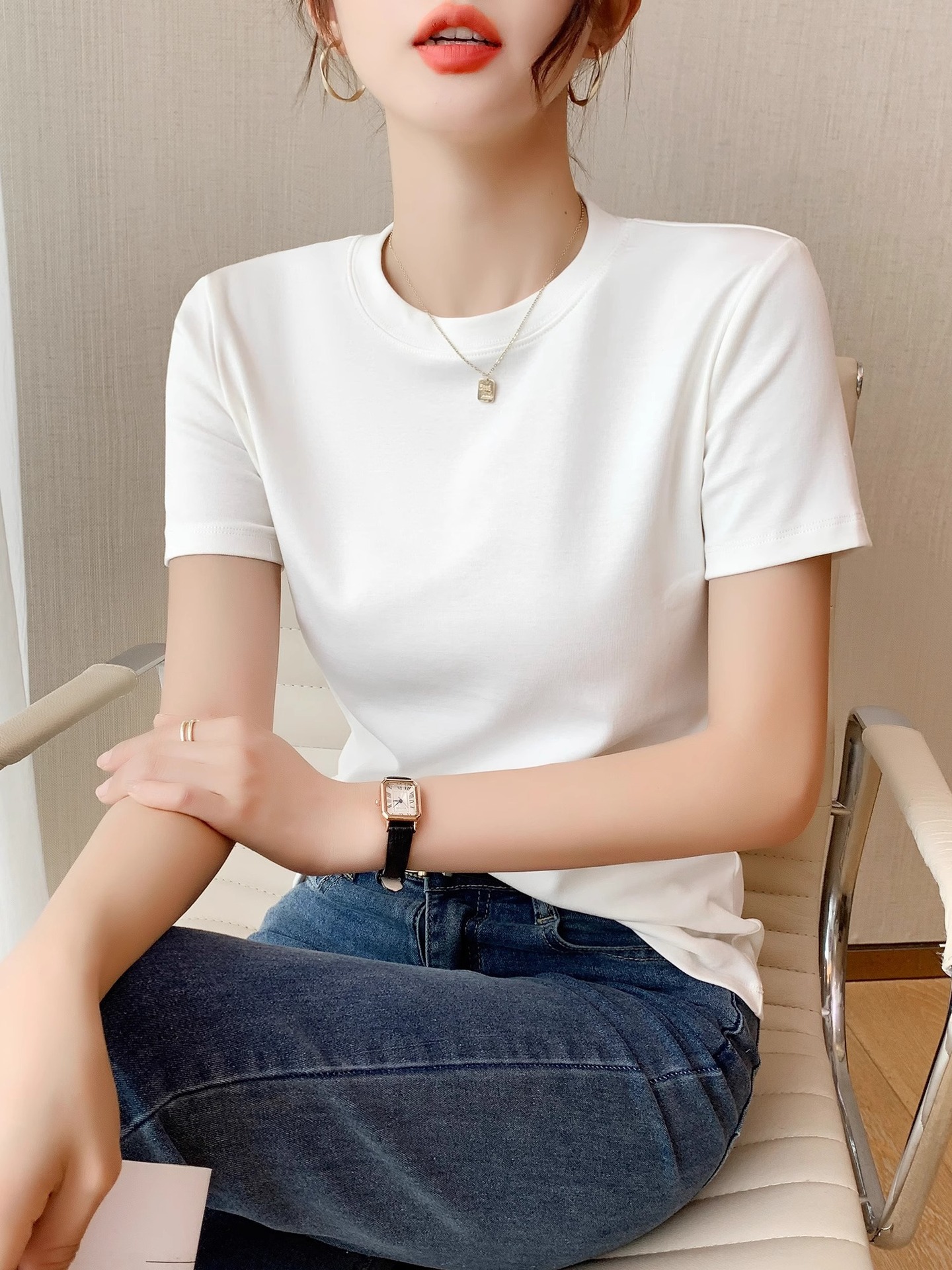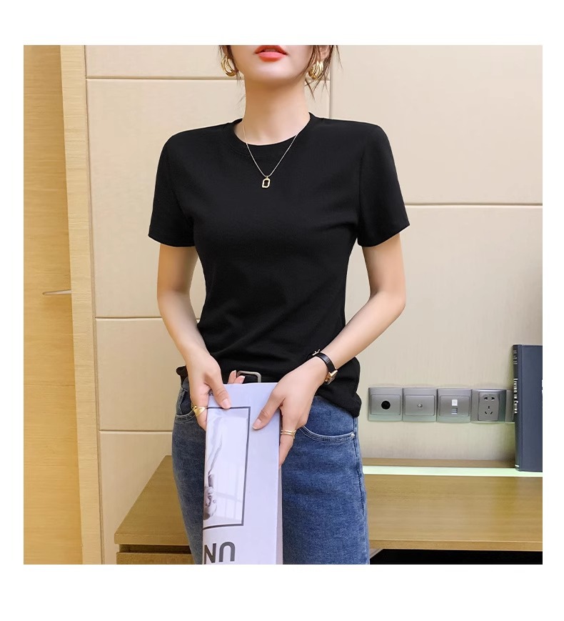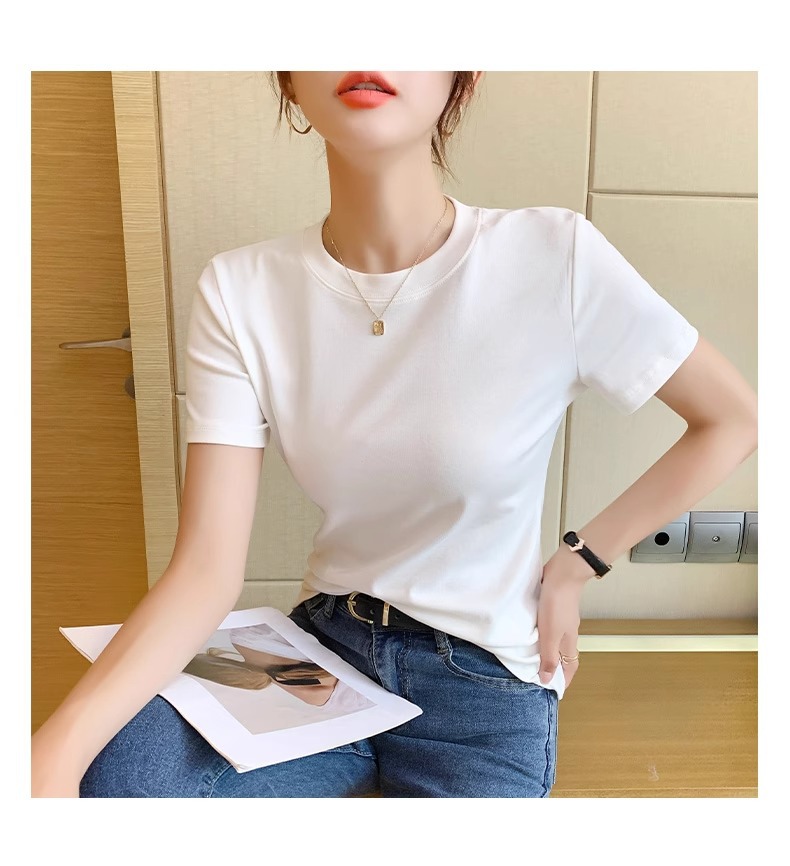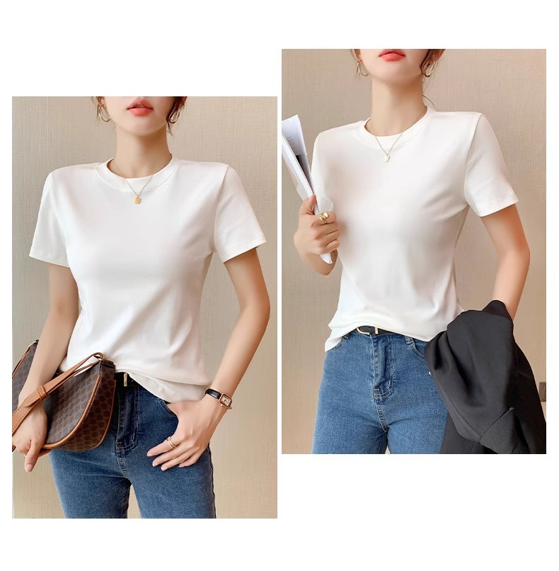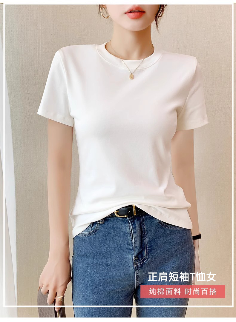 코튼 반팔 티셔츠 여성용 2025 년 여름 새 어깨 슬림핏 슬리밍 티셔츠 반소매 라운드 넥 베이스 탑스토어 가기