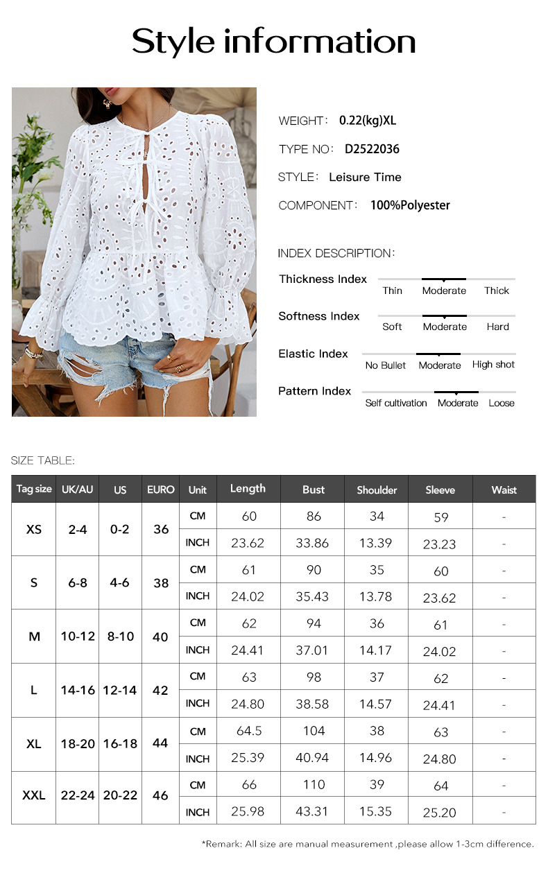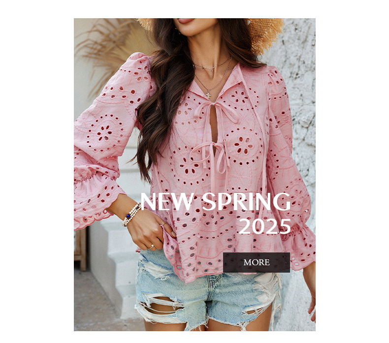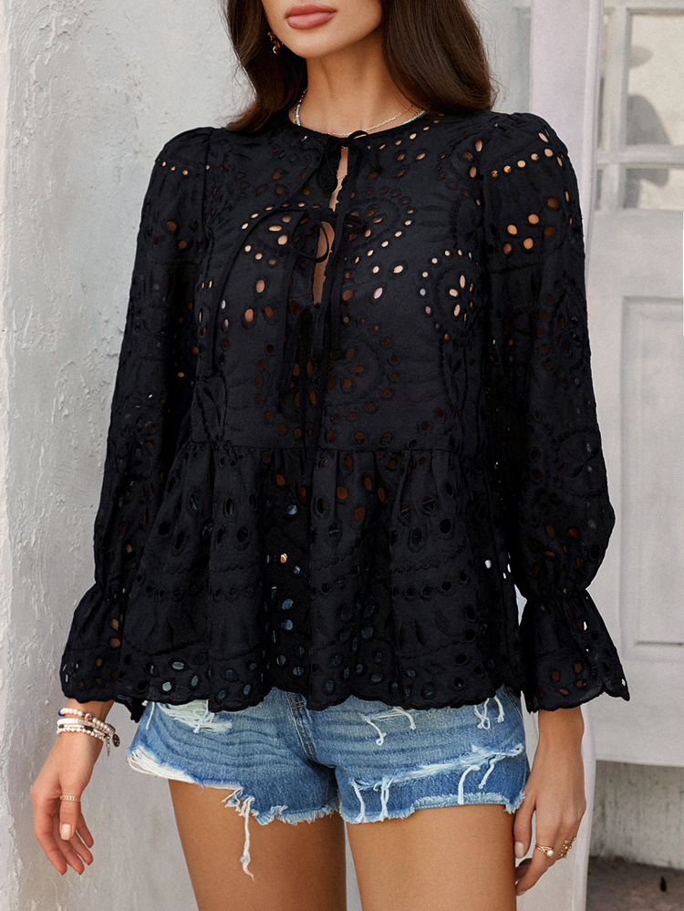 Di Yun 유럽과 미국의 국경 2025 봄과 여름 레저 휴가 느슨한 레이스 업 카디건 단색 할로우 아웃 최고의 여성 셔츠