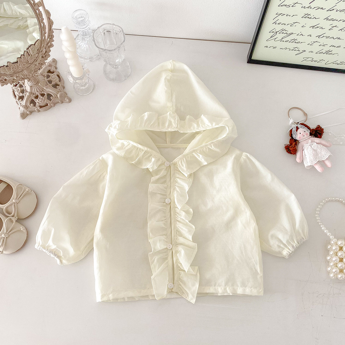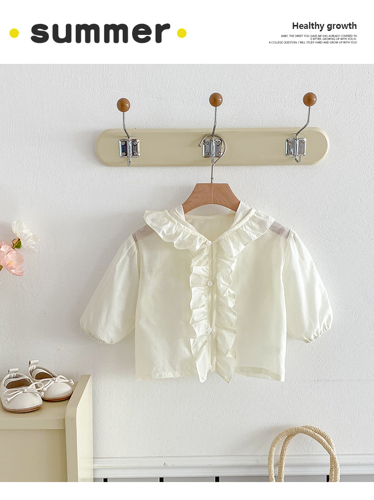영유아 여름 얇은 코트, 여자 아기의 작은 월령 망토, 가볍고 얇은 여름 피부 코트, 방풍 얇은 에어컨 셔츠스토어 가기