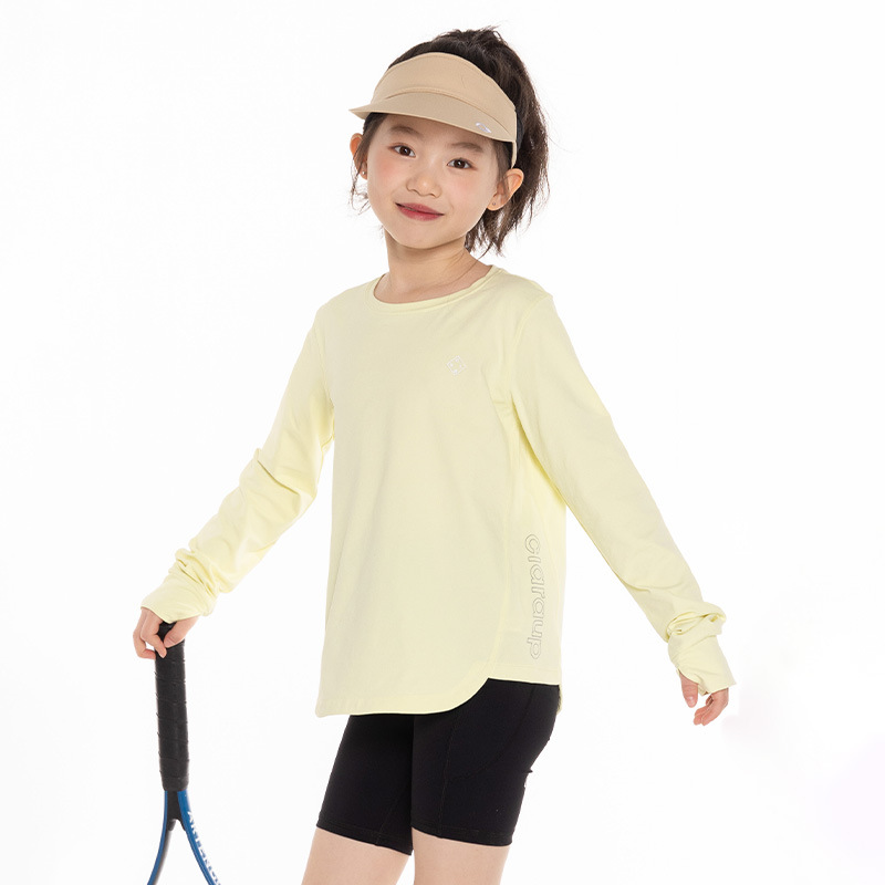 소녀 5A 항균 신속 건조 스포츠 티셔츠 2025 여름 새 어린이 야외 선 스크린 캐주얼 긴팔베이스 탑스토어 가기