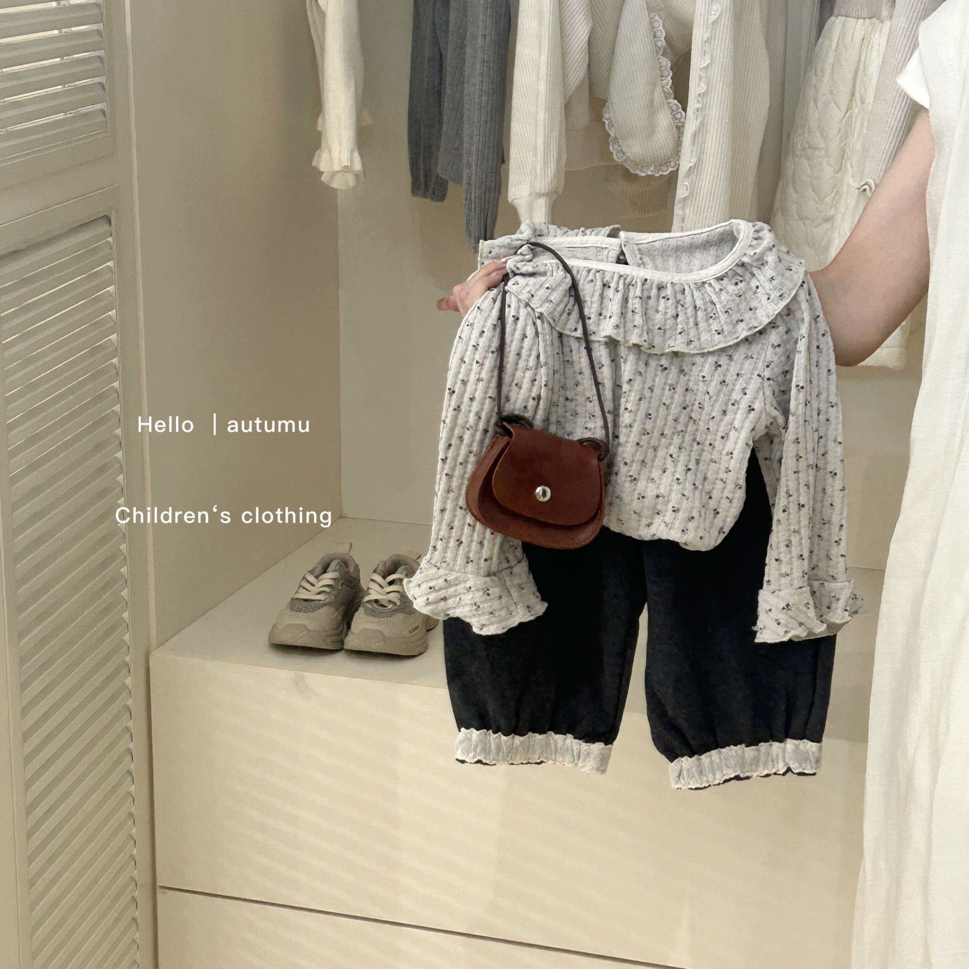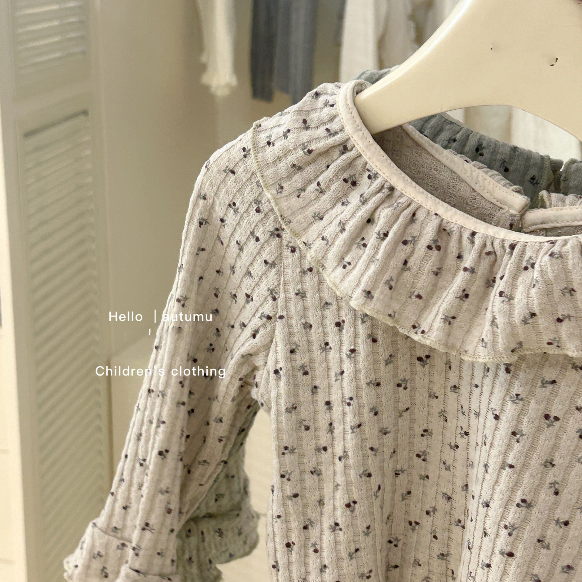 소녀들을 위한 봄 신상품, 부드러운 꽃무늬 베이스 셔츠, 긴 소매 꽃무늬 인형 칼라 상의, 랜턴 팬츠스토어 가기