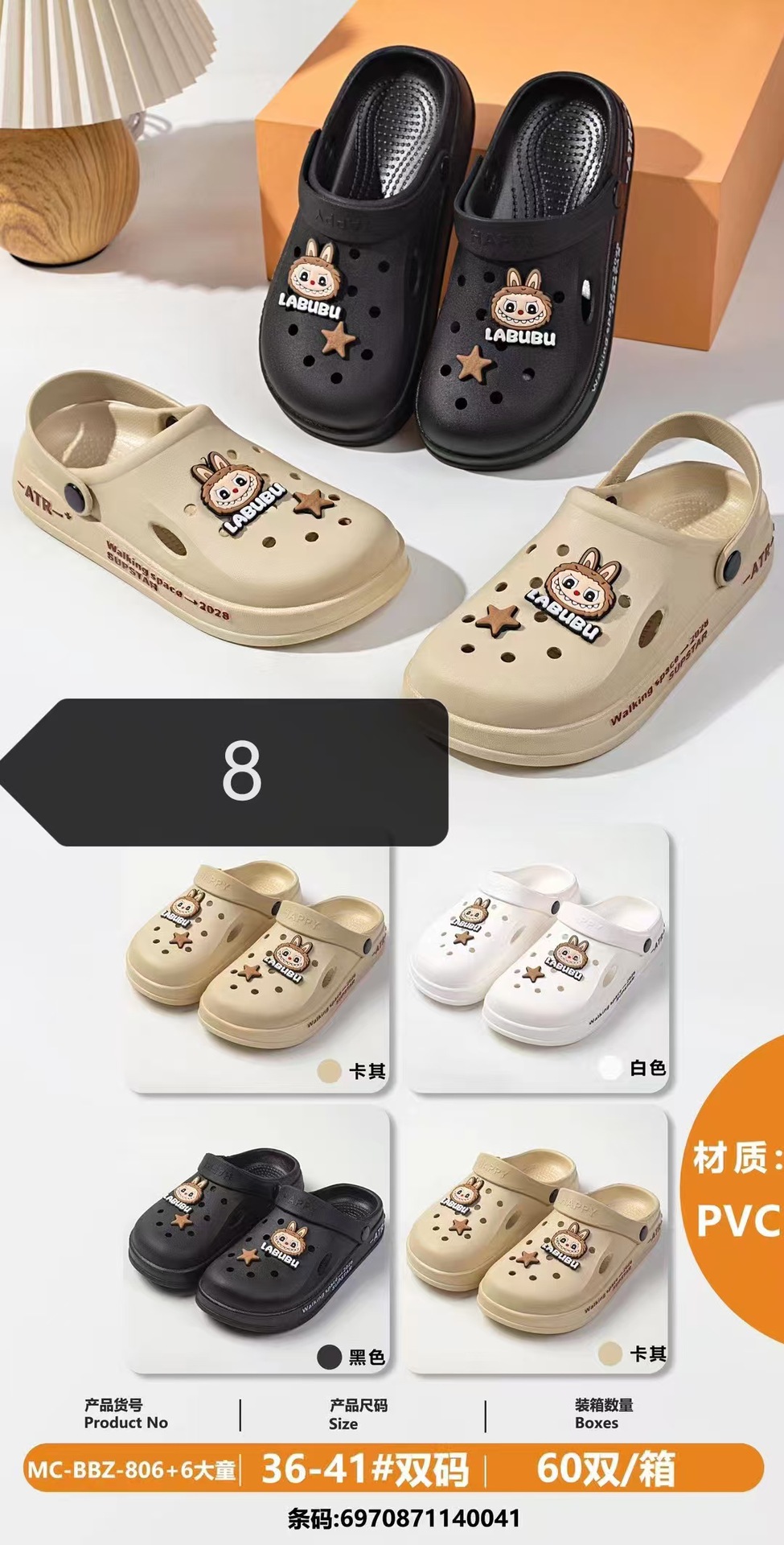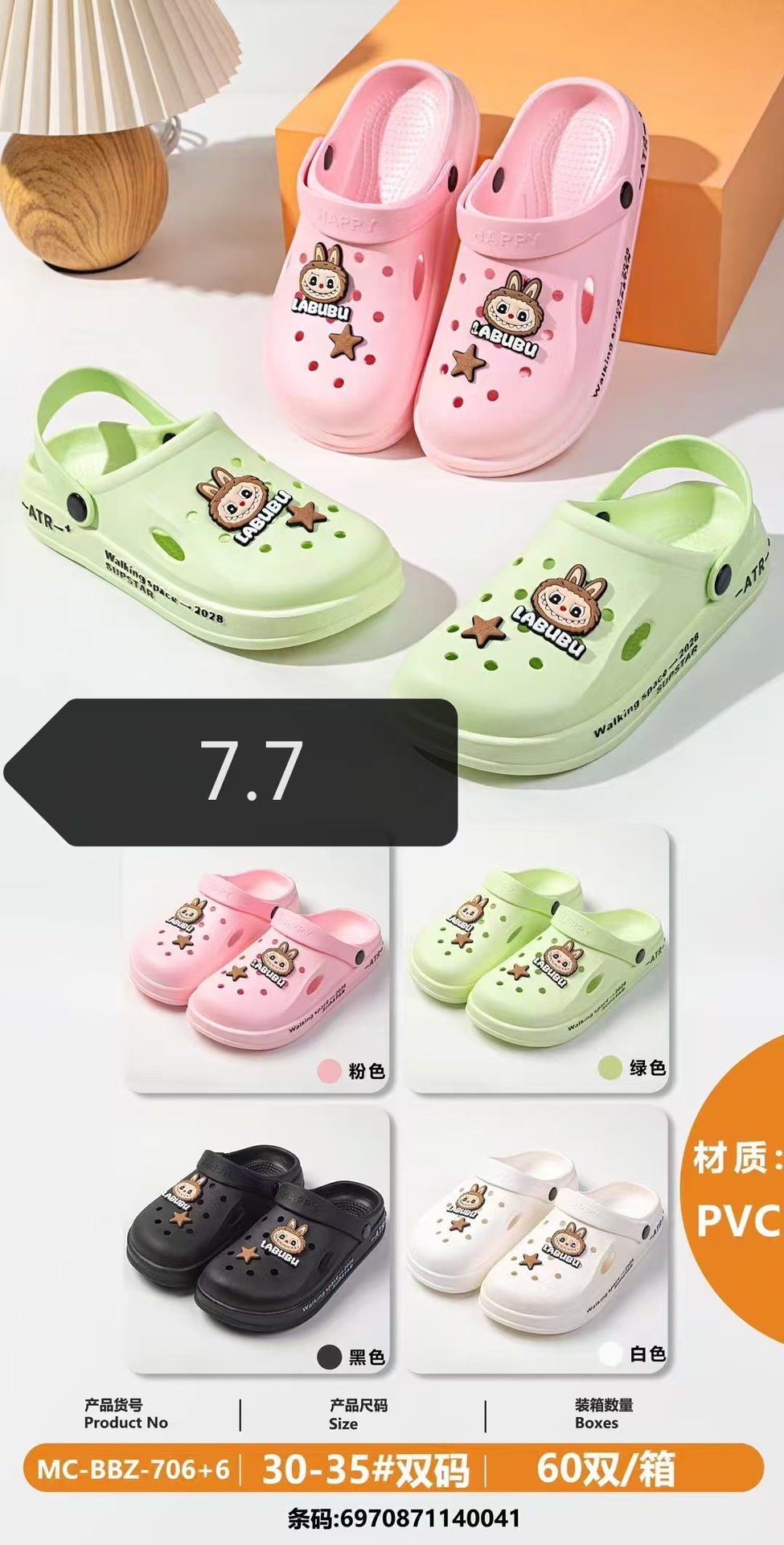 새로운 PVA 어린이 구멍 슬리퍼 귀여운 만화 편안한 미끄럼 방지 이중 사용 소년 소녀 구멍 신발 도매