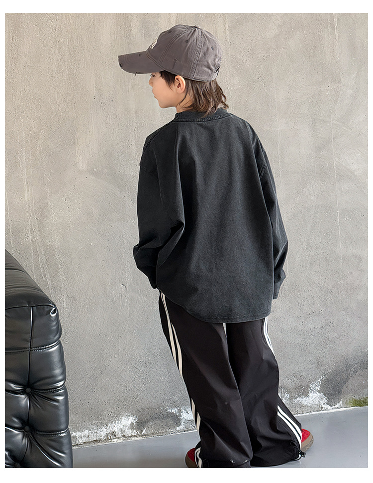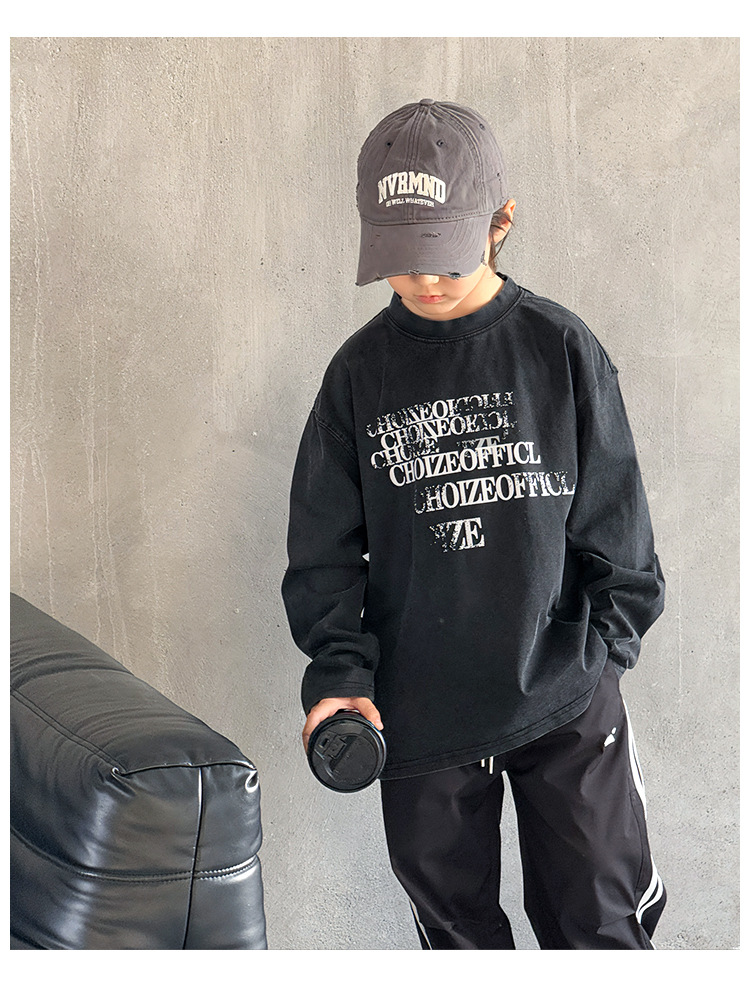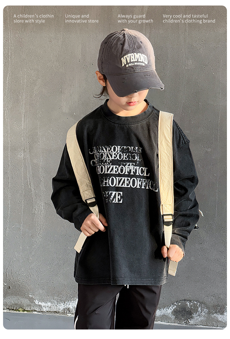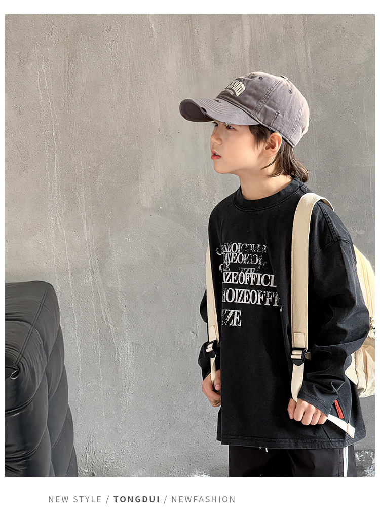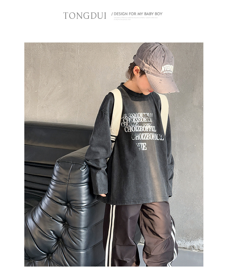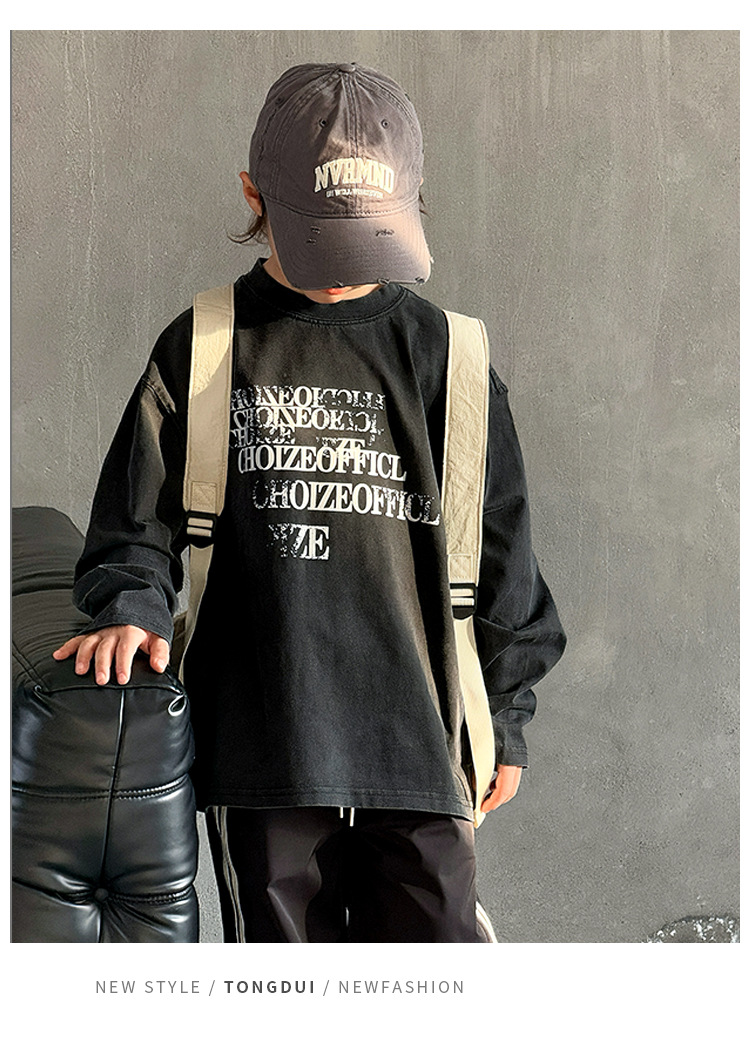 Tongdu 2025 소년의 멋진 워시 올드 코튼 긴팔 티셔츠 봄, 가을 얇은 중대형 아동용 루즈한 바닥 셔츠스토어 가기
