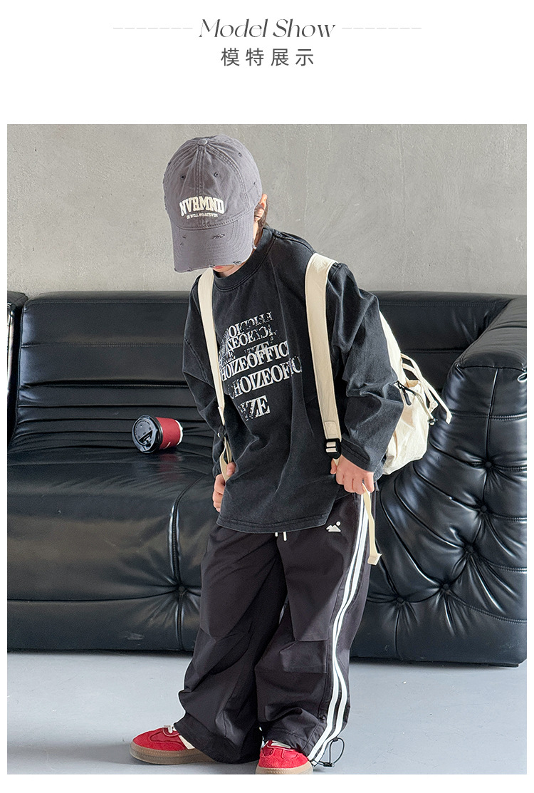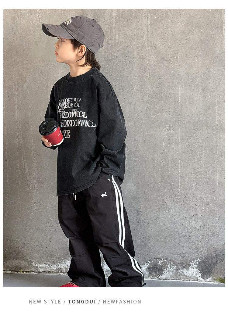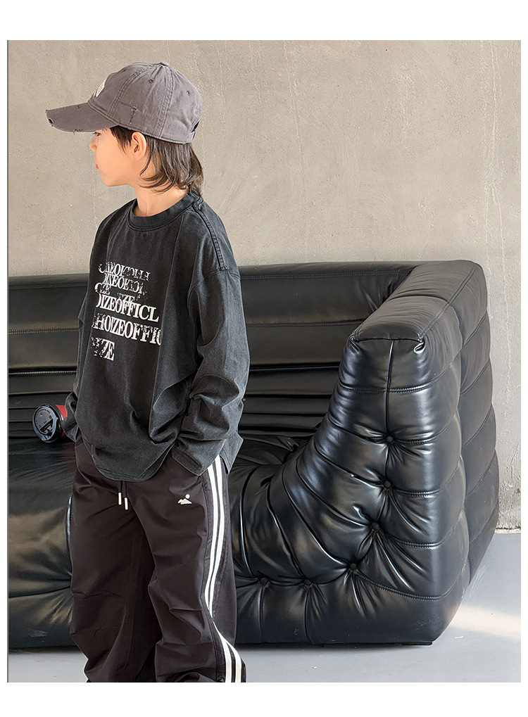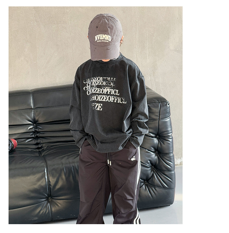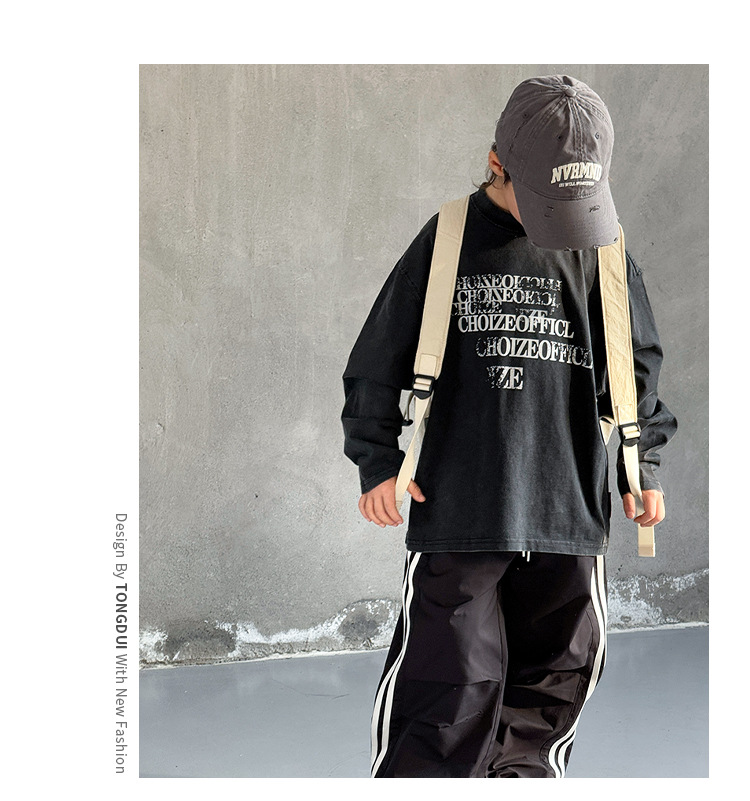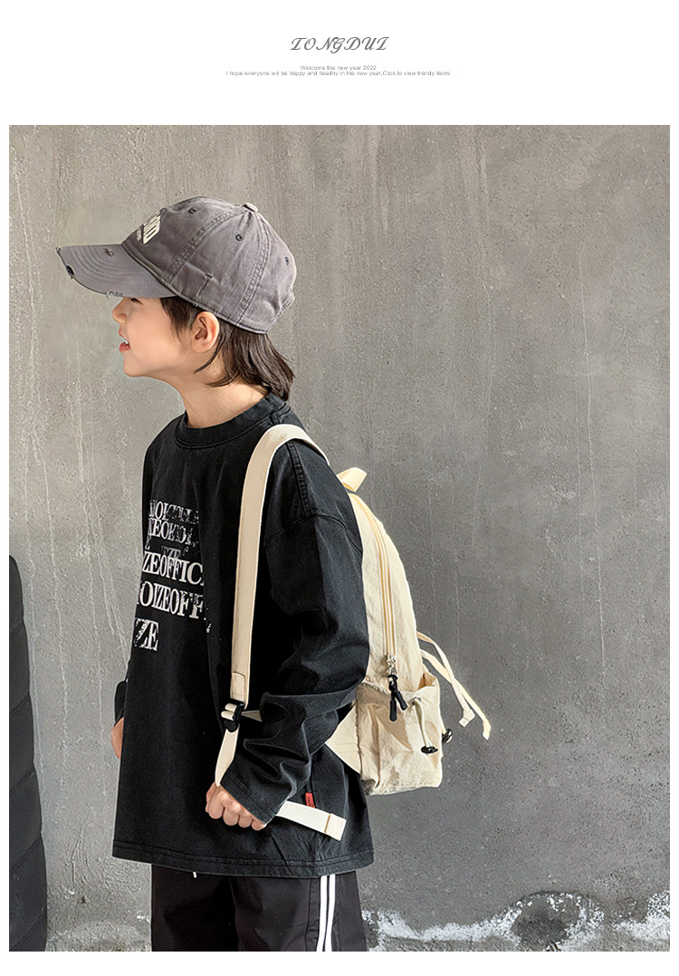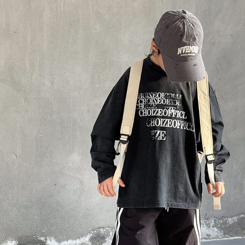 Tongdu 2025 소년의 멋진 워시 올드 코튼 긴팔 티셔츠 봄, 가을 얇은 중대형 아동용 루즈한 바닥 셔츠스토어 가기