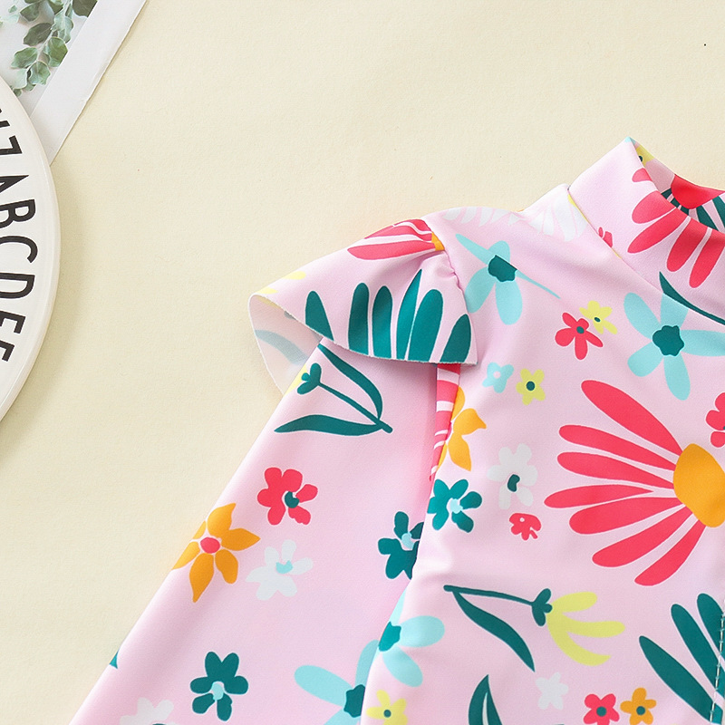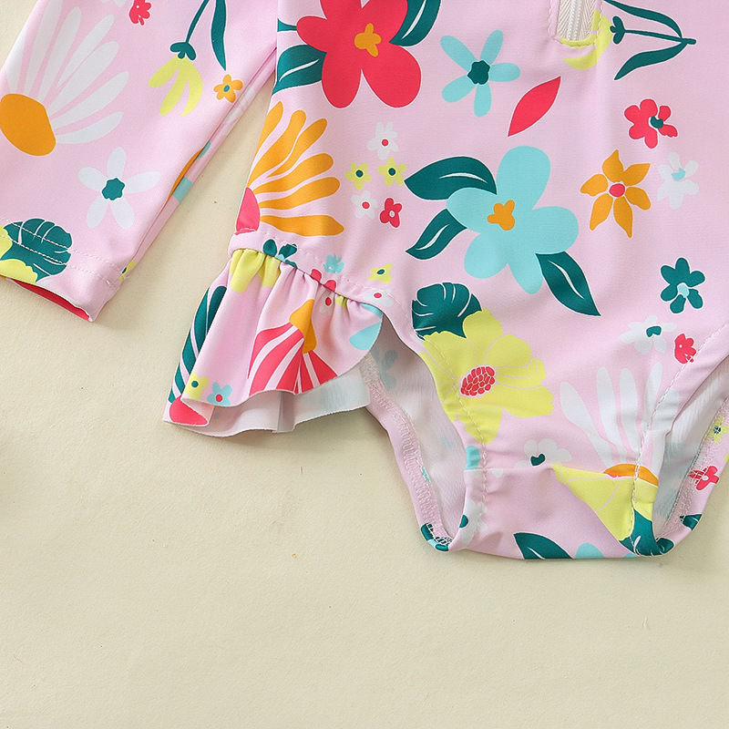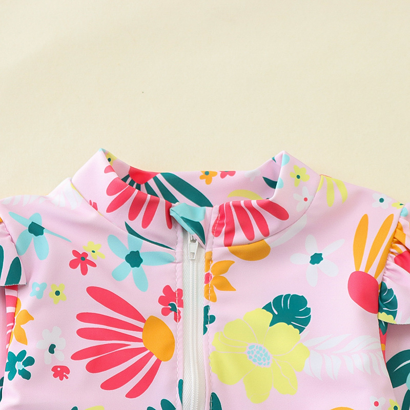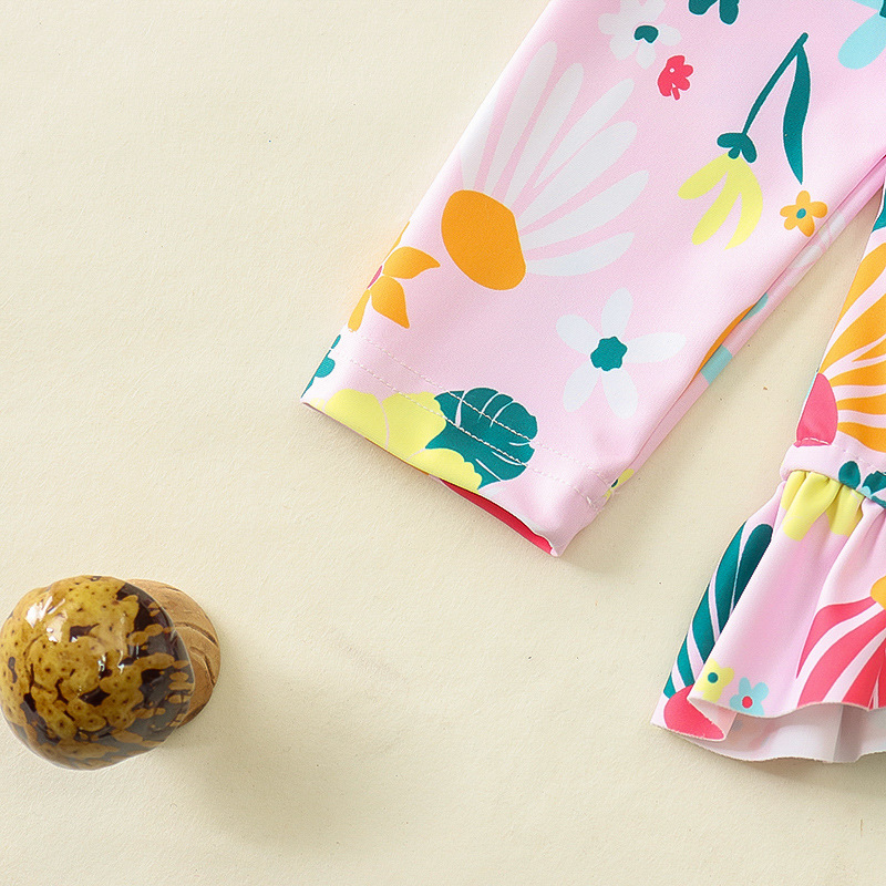 어린이 의류 소녀 꽃 풀 프린트 러플 원피스 수영복 아기 소녀의 선 스크린 긴 소매 세트 어린이 수영복