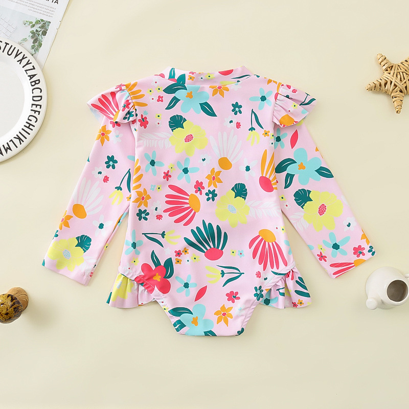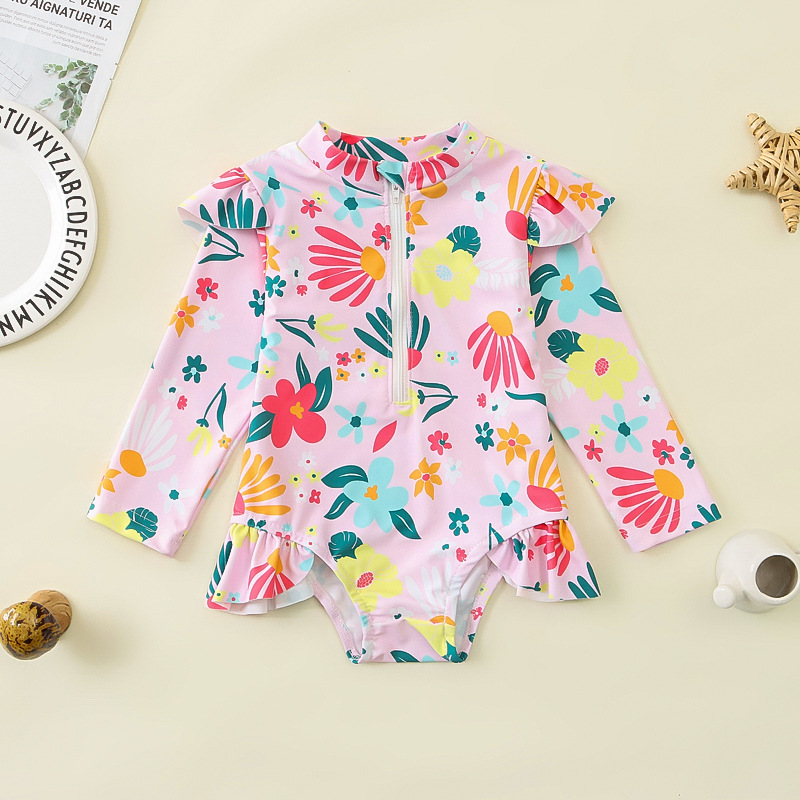 어린이 의류 소녀 꽃 풀 프린트 러플 원피스 수영복 아기 소녀의 선 스크린 긴 소매 세트 어린이 수영복스토어 가기