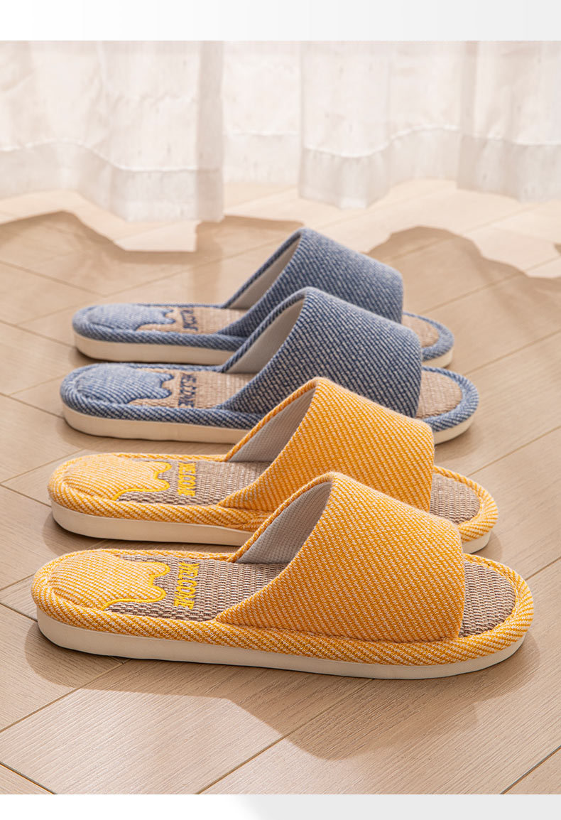린넨 슬리퍼 여성용 통기성 실내 홈 미끄럼 방지 부드러운 바닥 땀 봄과 가을 사계절 부부를 위한 코튼 리넨 천 신발