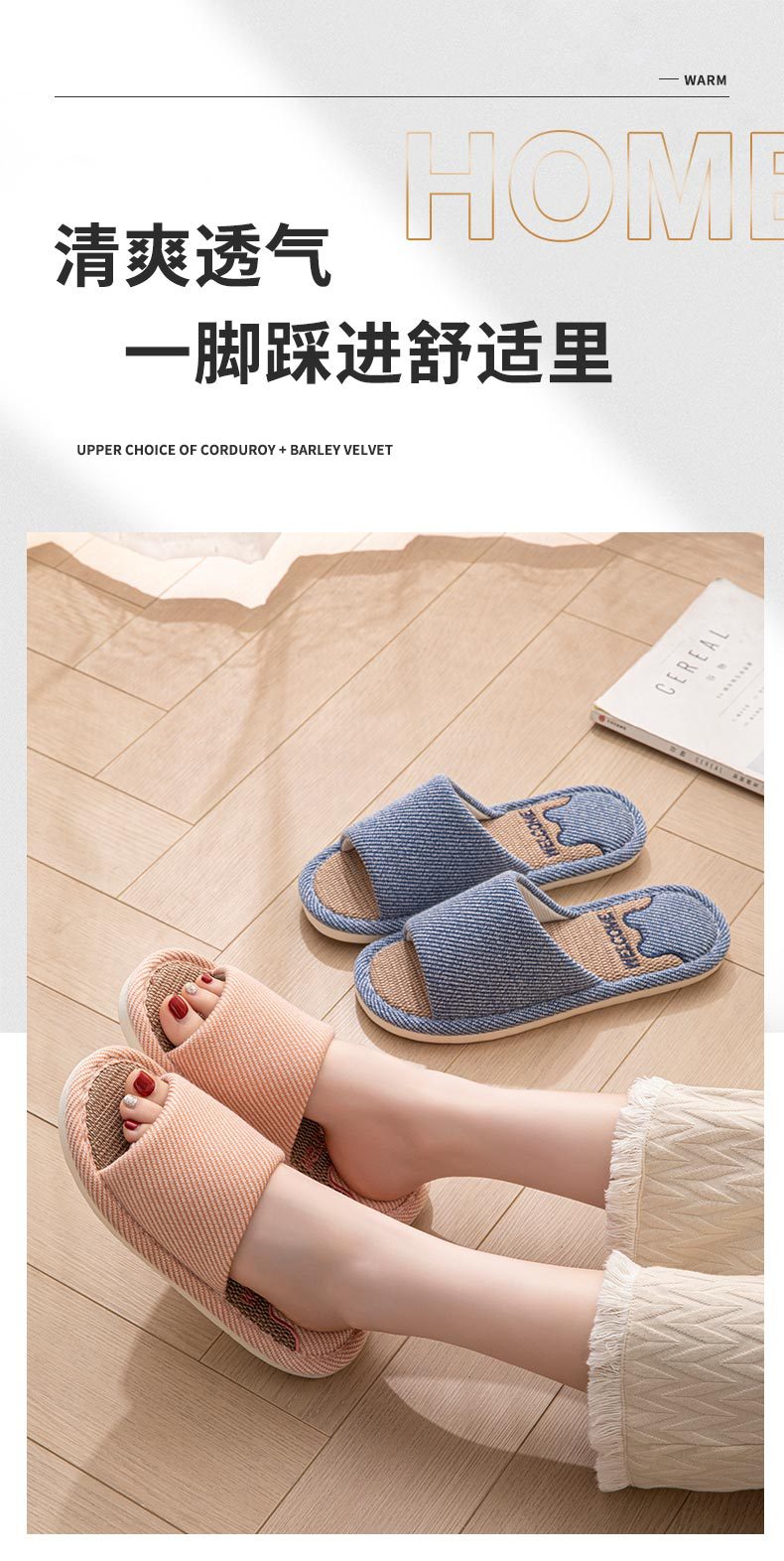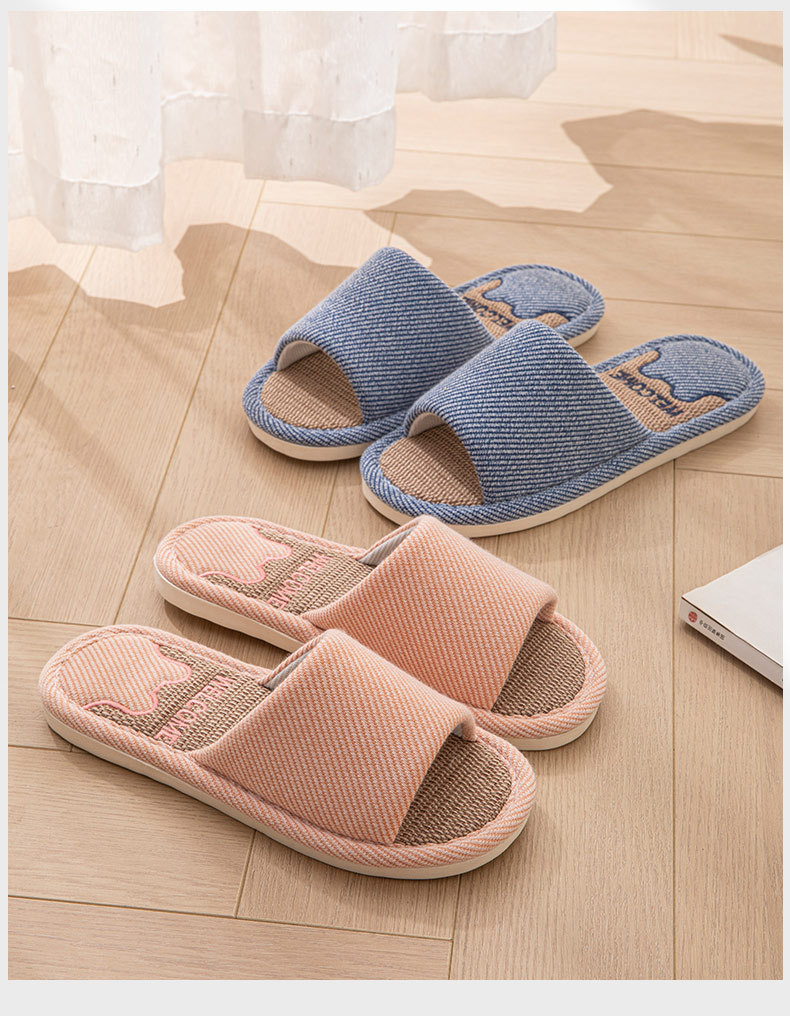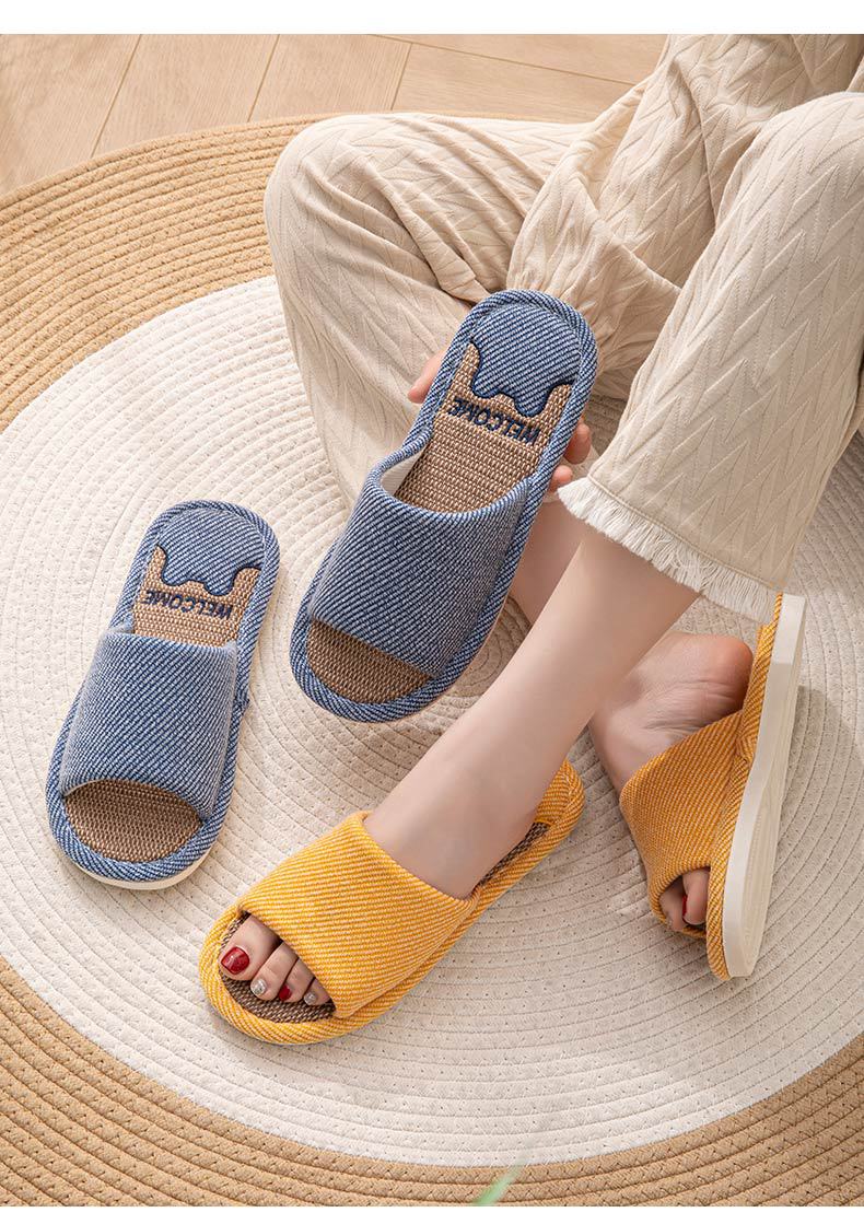 린넨 슬리퍼 여성용 통기성 실내 홈 미끄럼 방지 부드러운 바닥 땀 봄과 가을 사계절 부부를 위한 코튼 리넨 천 신발스토어 가기