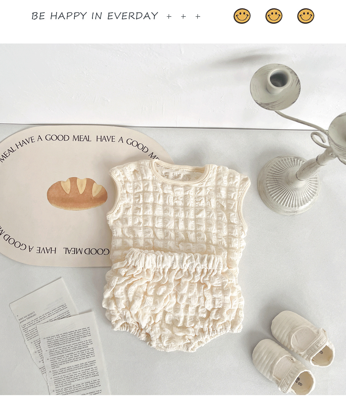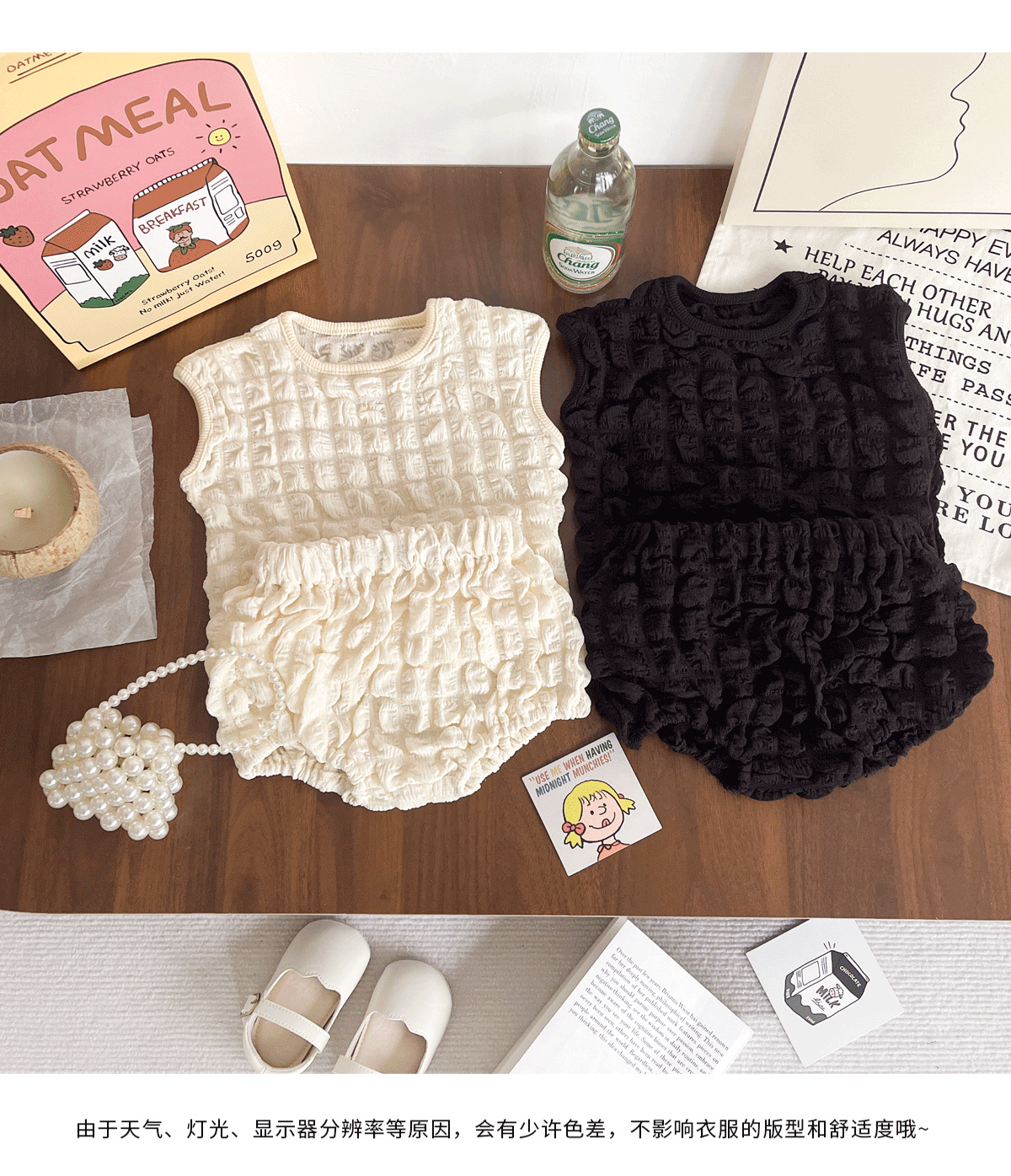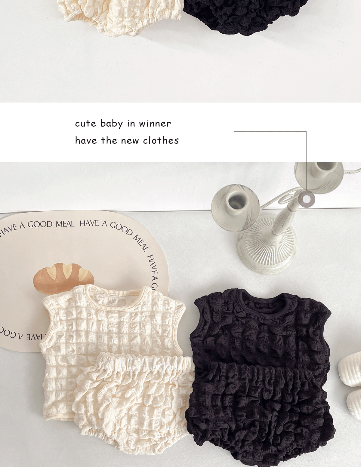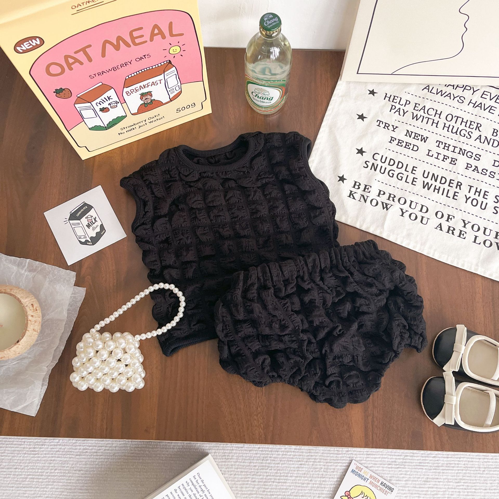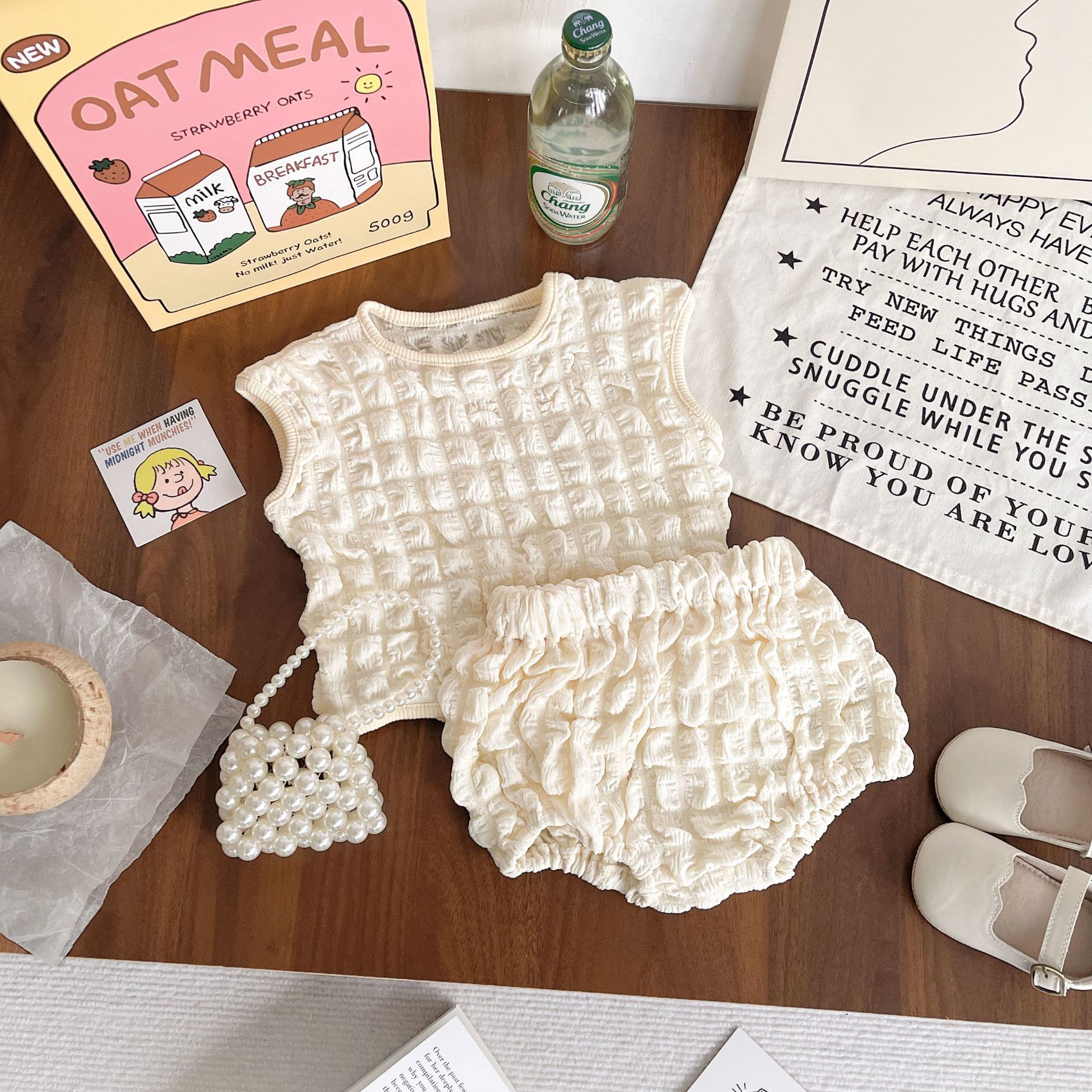 한국식 여름 아기 어린이 착용 아기 백일 귀여운 민소매 세트 버블 체크 무늬 3 차원 푹신한 티셔츠 반바지