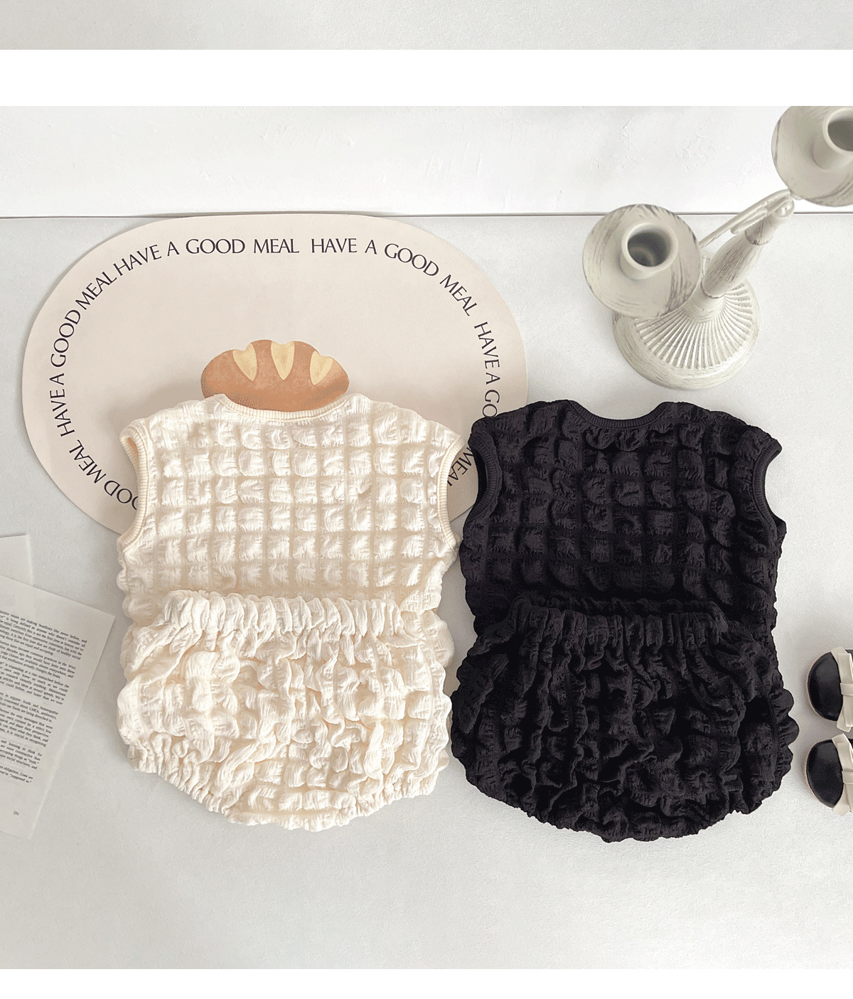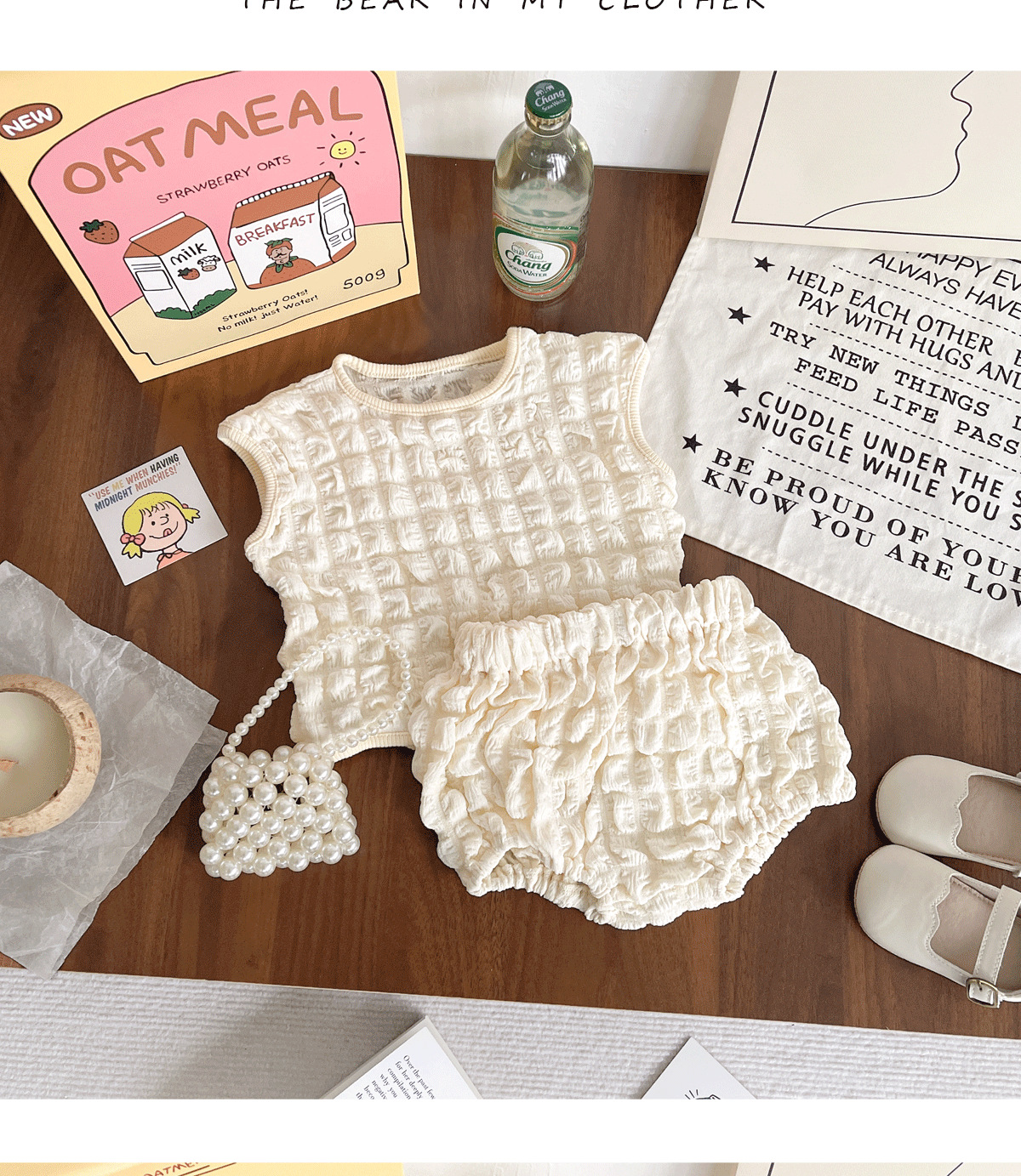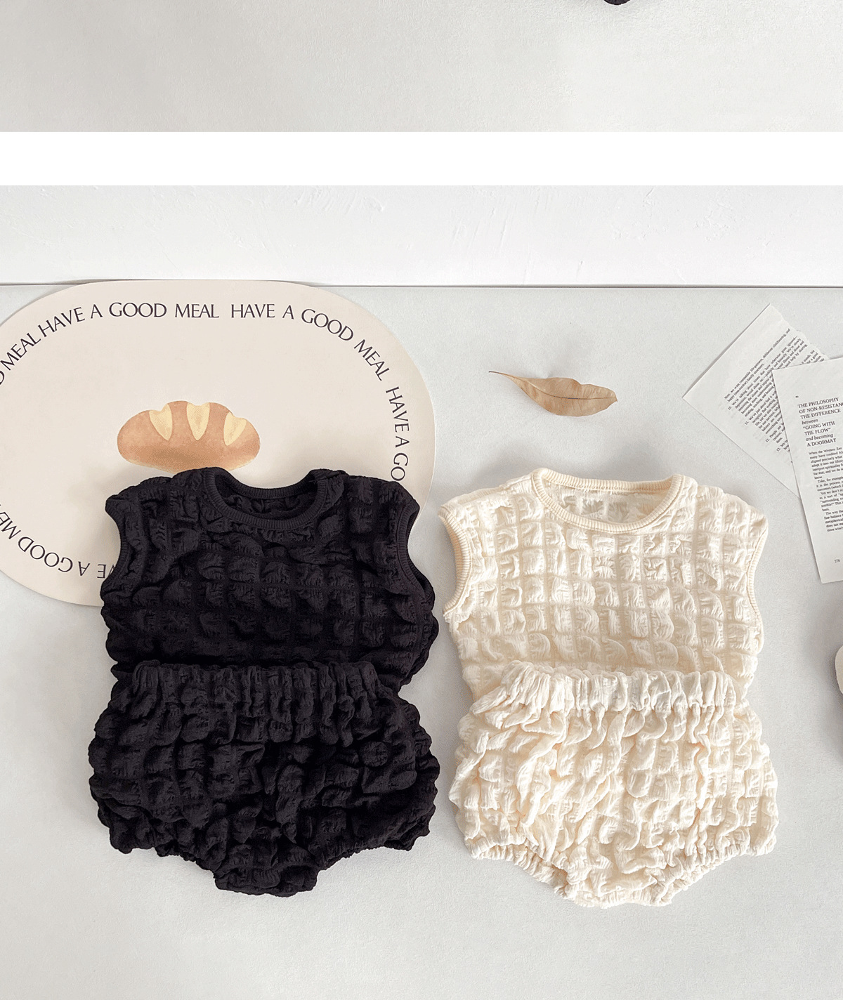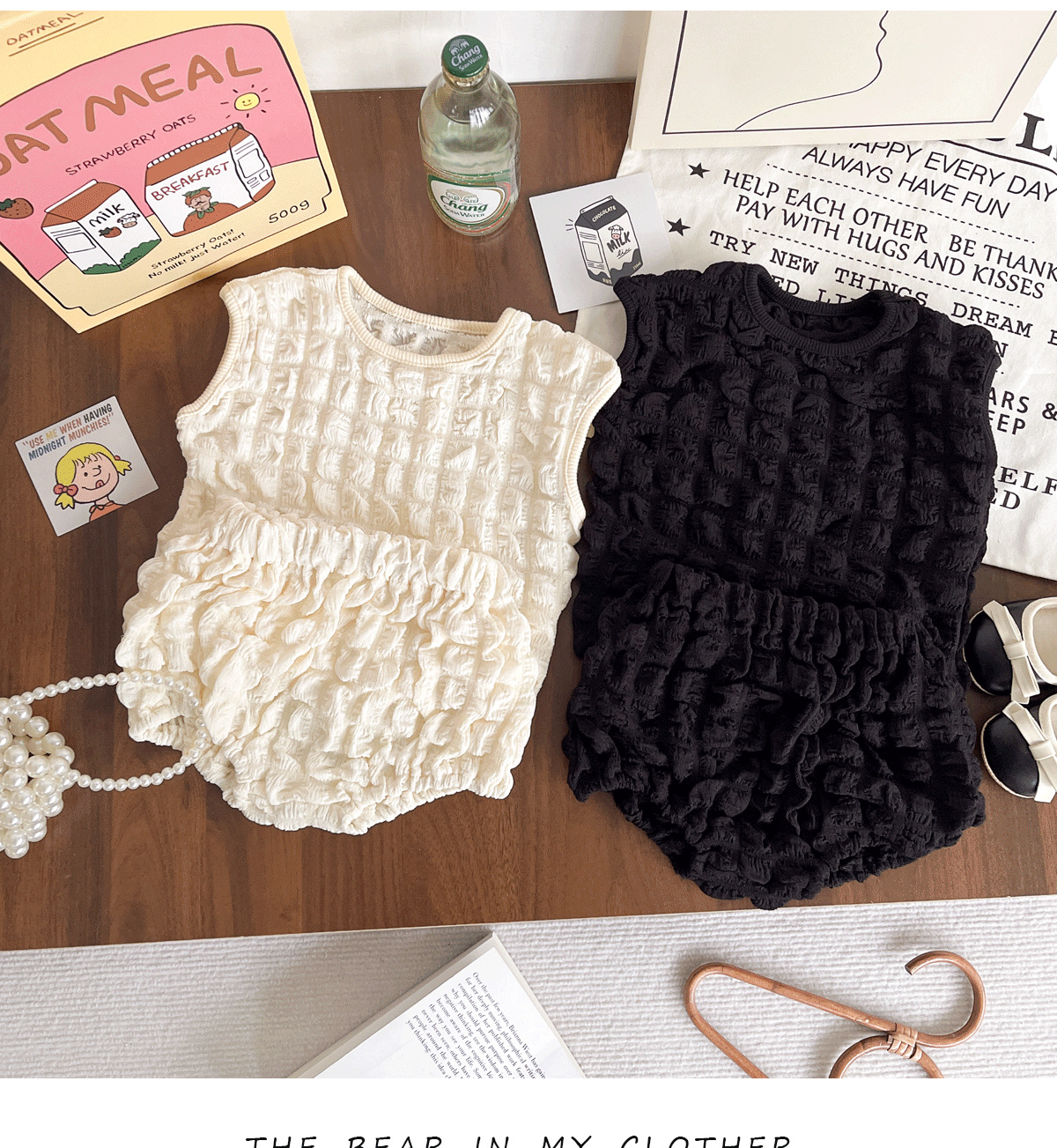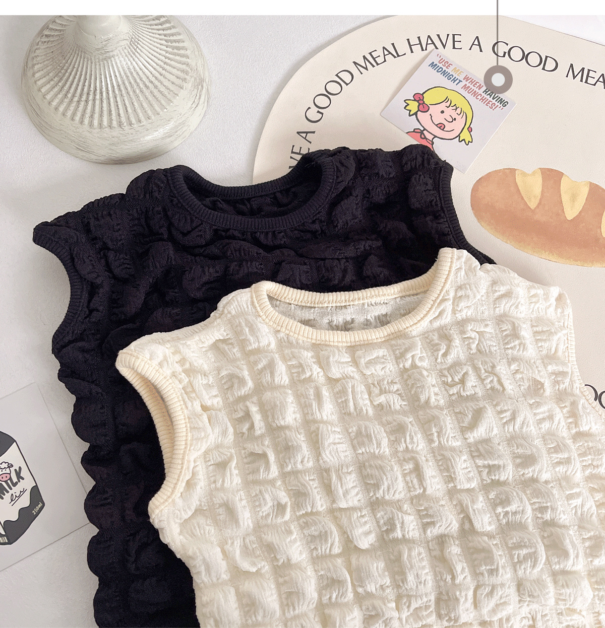한국식 여름 아기 어린이 착용 아기 백일 귀여운 민소매 세트 버블 체크 무늬 3 차원 푹신한 티셔츠 반바지