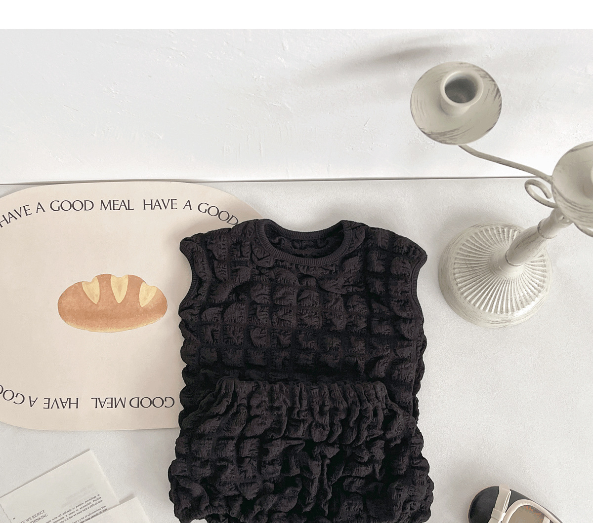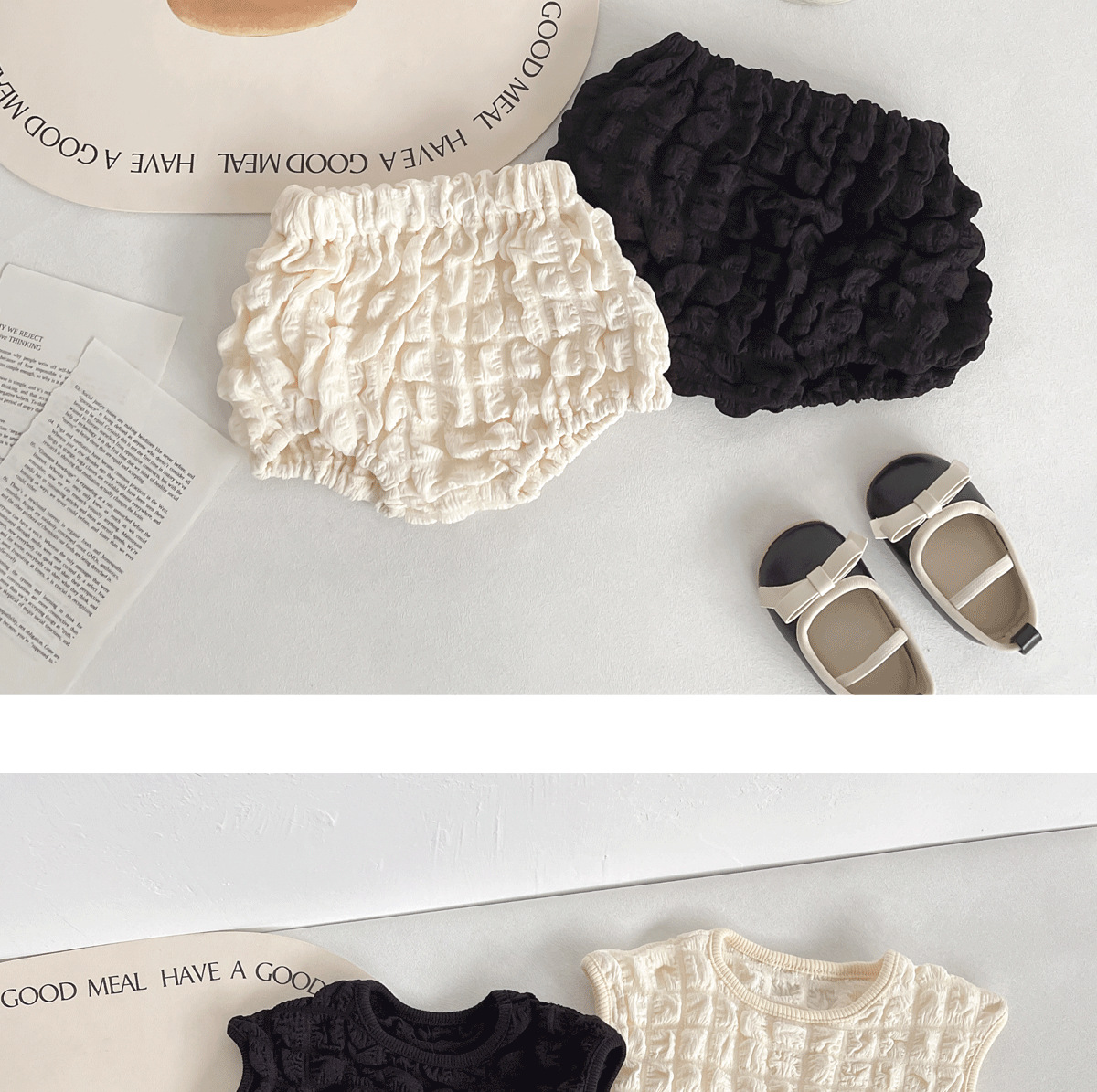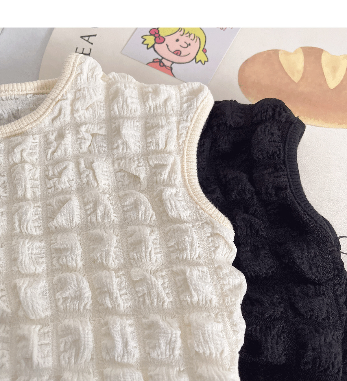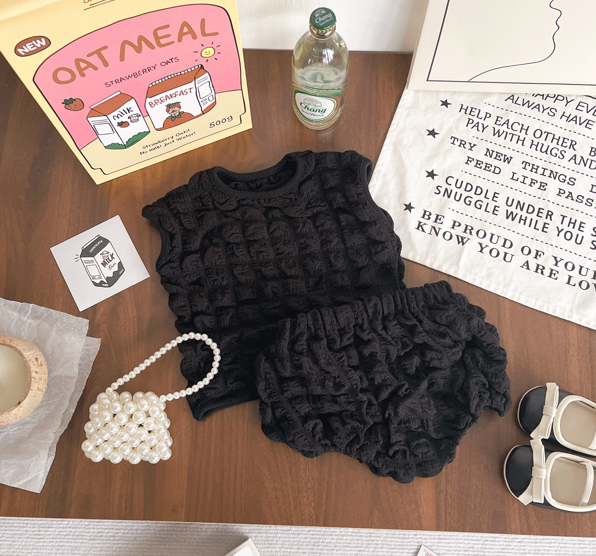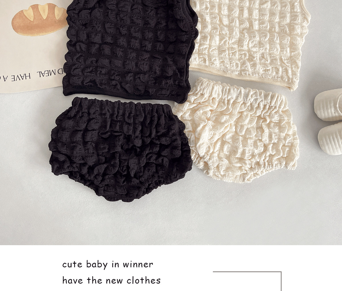한국식 여름 아기 어린이 착용 아기 백일 귀여운 민소매 세트 버블 체크 무늬 3 차원 푹신한 티셔츠 반바지