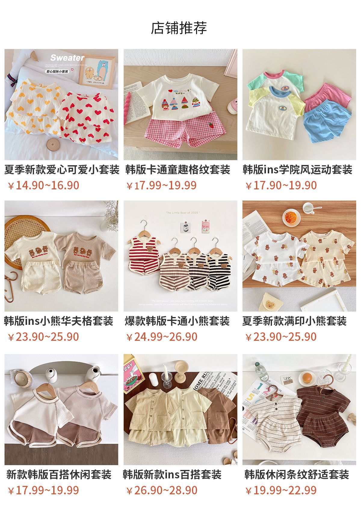 한국식 여름 아기 어린이 착용 아기 백일 귀여운 민소매 세트 버블 체크 무늬 3 차원 푹신한 티셔츠 반바지스토어 가기