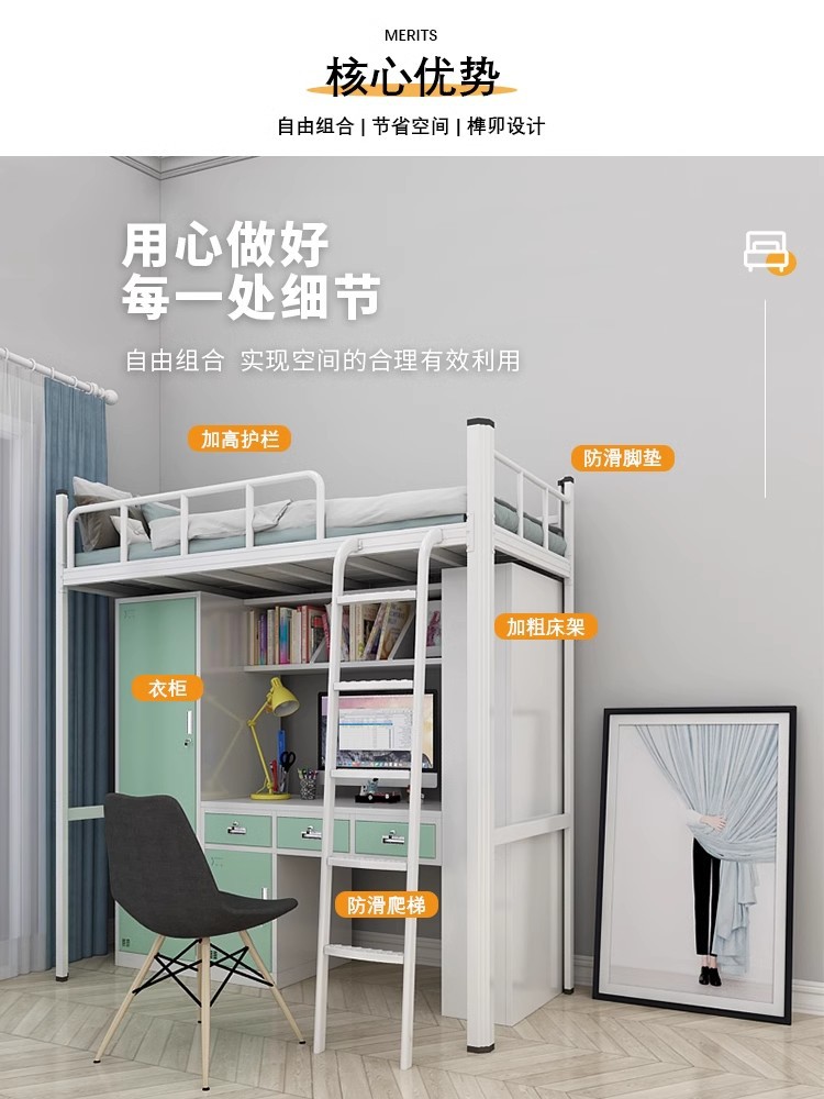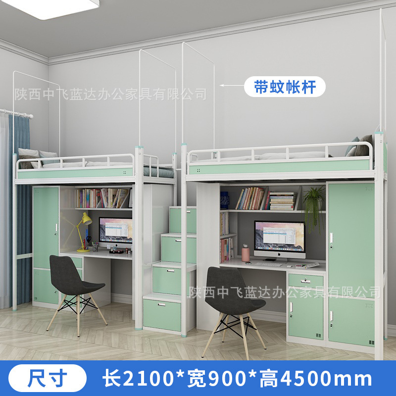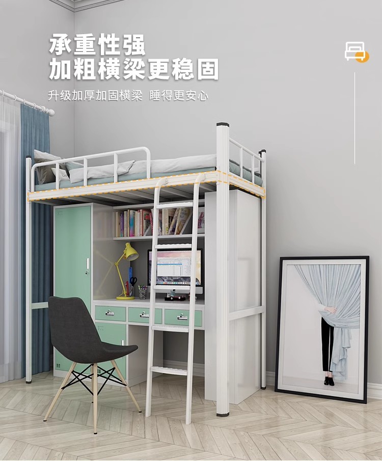 • 캐비닛과 아파트 침대가 포함된 고급스러운 일체형 사다리(단일 도어 옷장 + 학습 테이블 + 모기장 기둥 +
