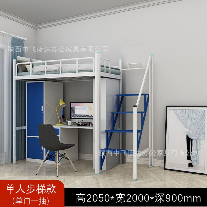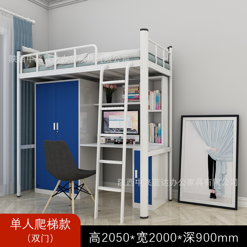 • 고급스러운 사다리 아파트 침대 블루 (단일 도어 옷장 + 학습 테이블 + 책장)