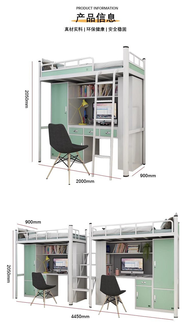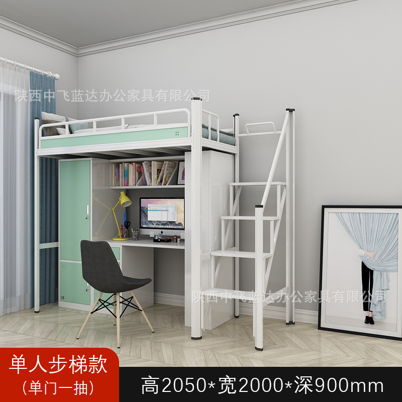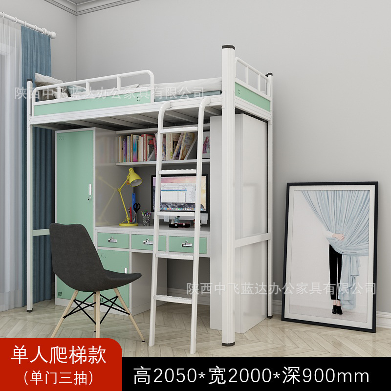 • 고급스러운 사다리 아파트 침대 그린 (단일 도어 옷장 + 학습 테이블 + 책장)