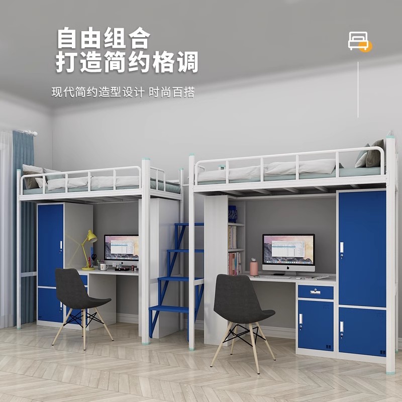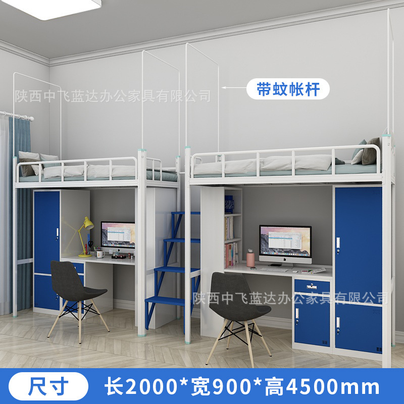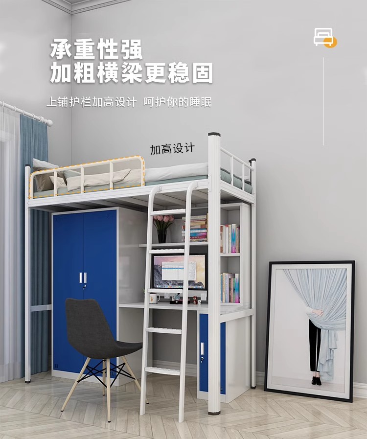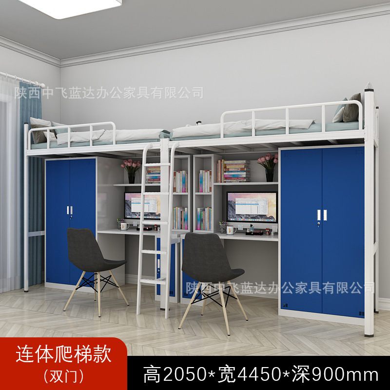 • 고급스러운 사다리 아파트 침대 블루 (양문 옷장 + 학습 테이블 + 책장)