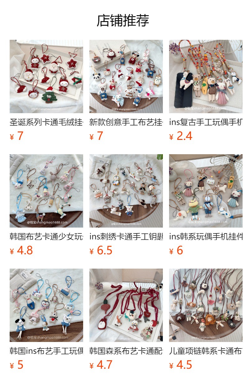 한국 핸드 메이드 패브릭 만화 펜던트 인형 패션 액세서리 키 체인 가방 액세서리 귀여운 쥬얼리 세트스토어 가기