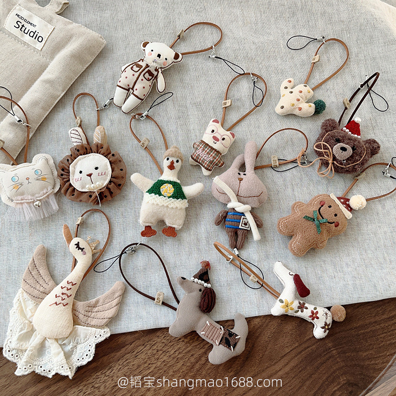 한국 핸드 메이드 패브릭 만화 펜던트 인형 패션 액세서리 키 체인 가방 액세서리 귀여운 쥬얼리 세트