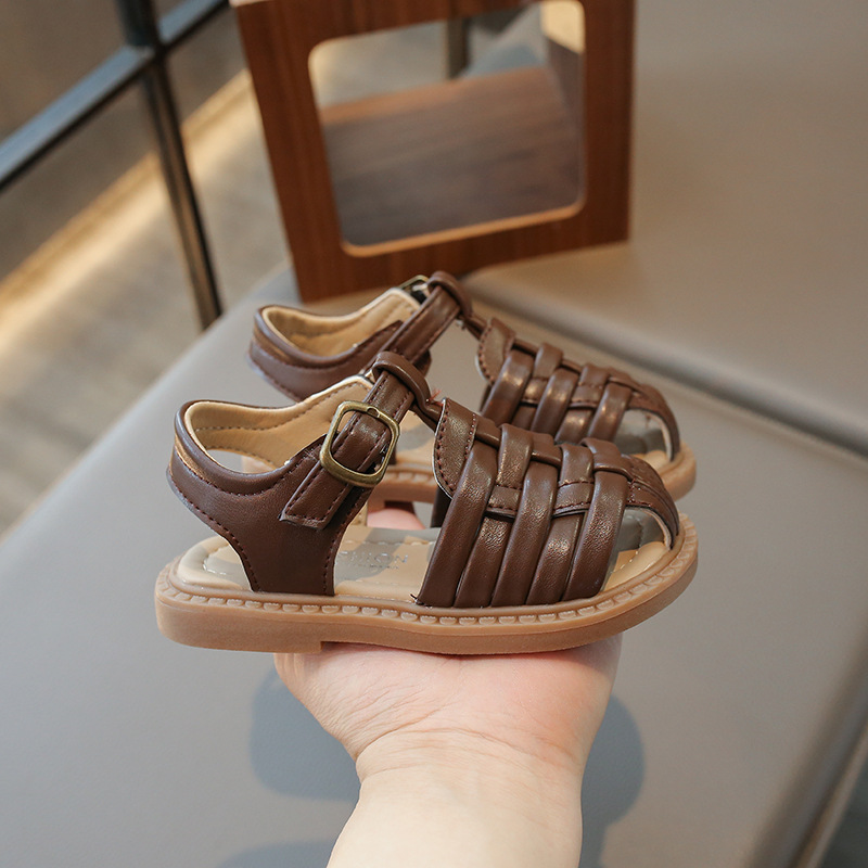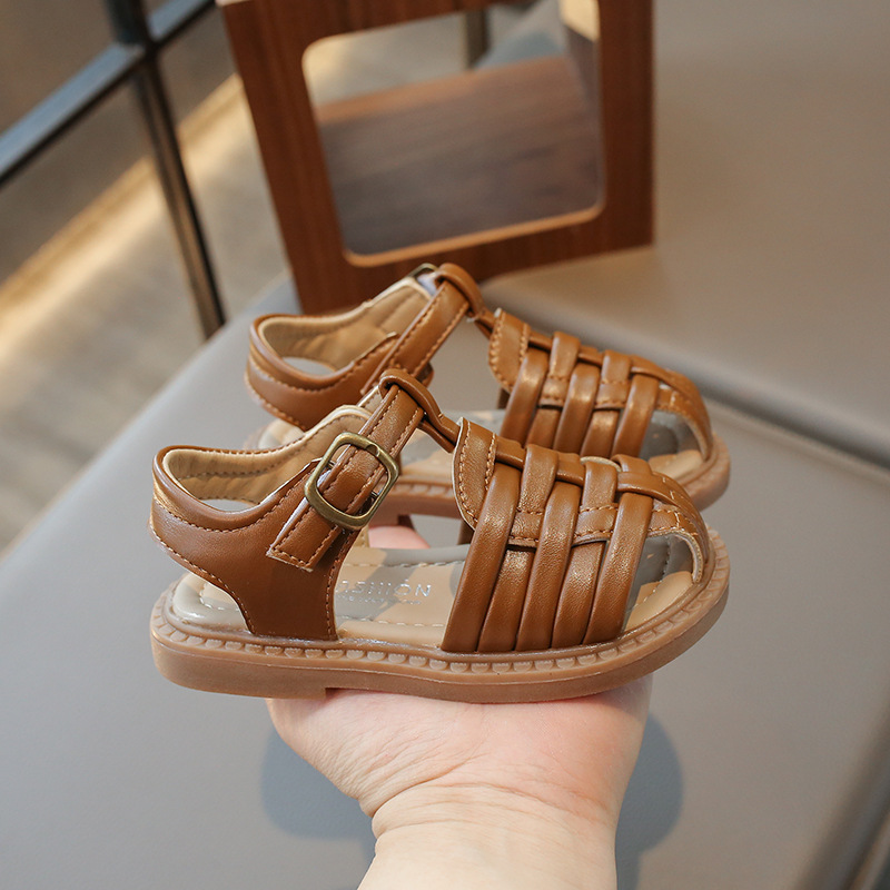 소녀 샌들 중공 2025 여름 새로운 어린이 신발 소년 공주 신발 부드러운 밑창 짠 아기 신발스토어 가기