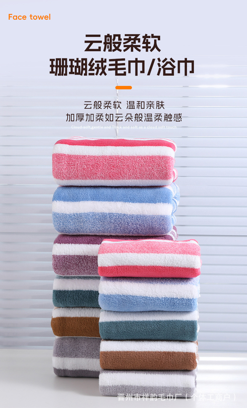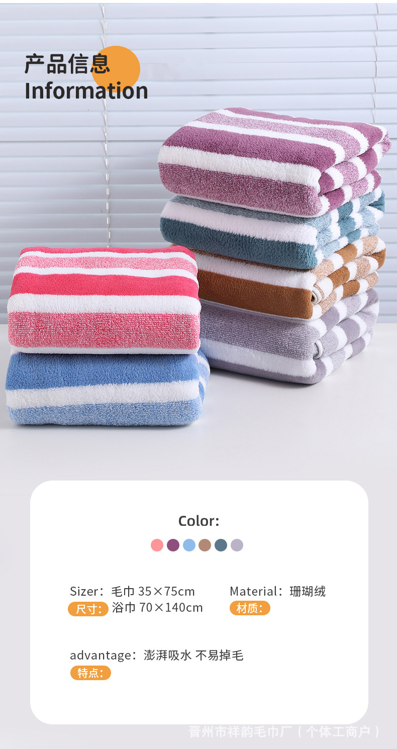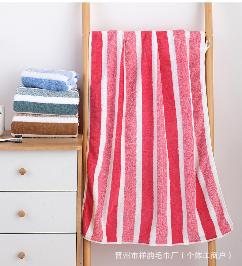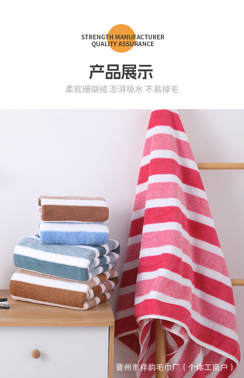 국경 간 산호 벨벳 와이드 바디 타월 양면 두꺼운 깊은 및 밝은 줄무늬 바디 타월 가장자리 성인 및 어린이용 범용스토어 가기