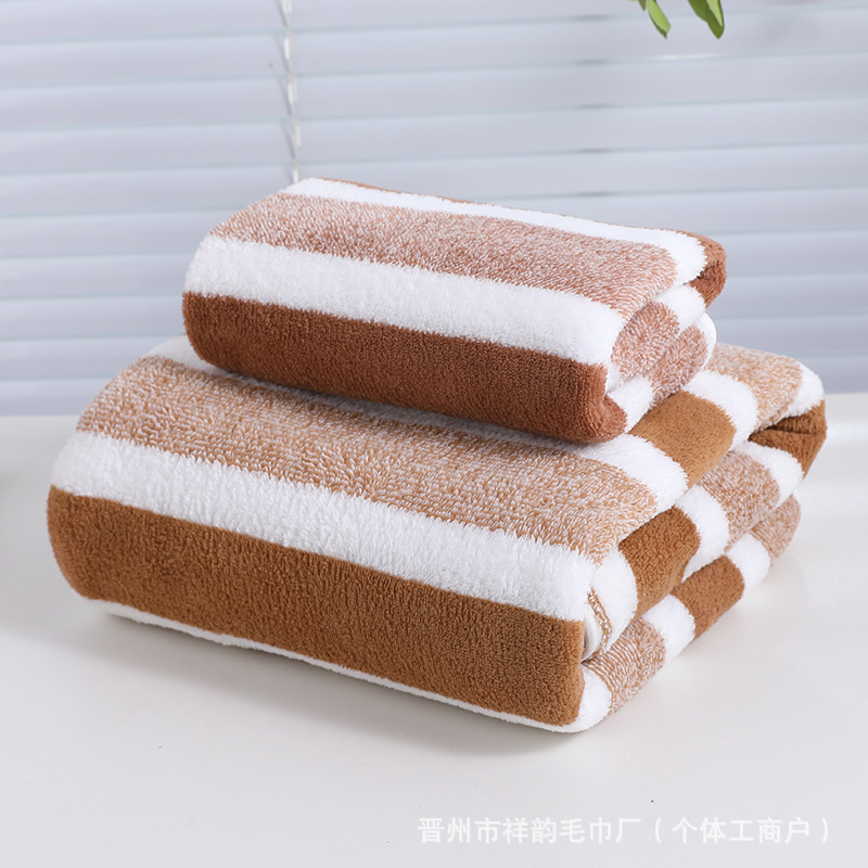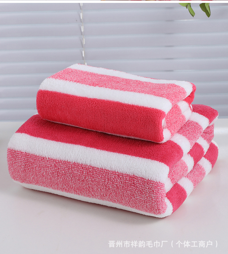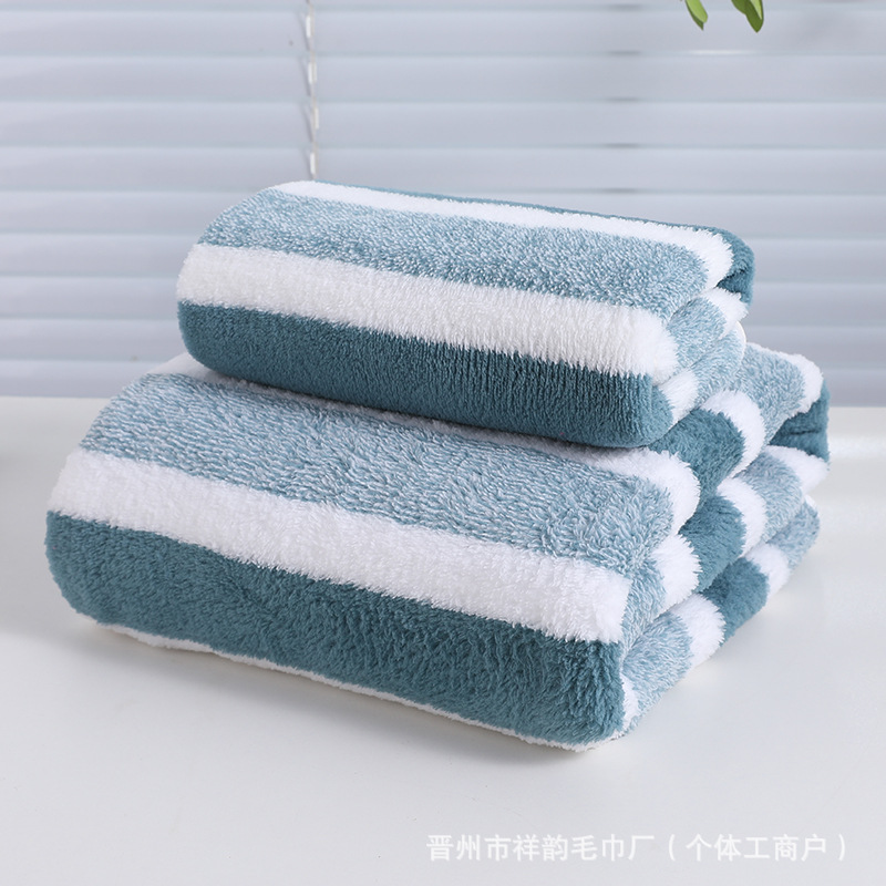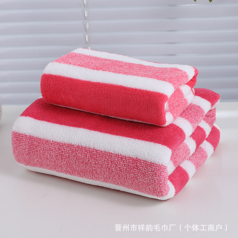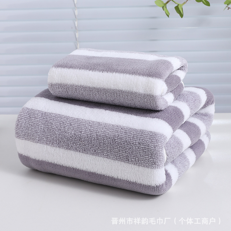 국경 간 산호 벨벳 와이드 바디 타월 양면 두꺼운 깊은 및 밝은 줄무늬 바디 타월 가장자리 성인 및 어린이용 범용스토어 가기