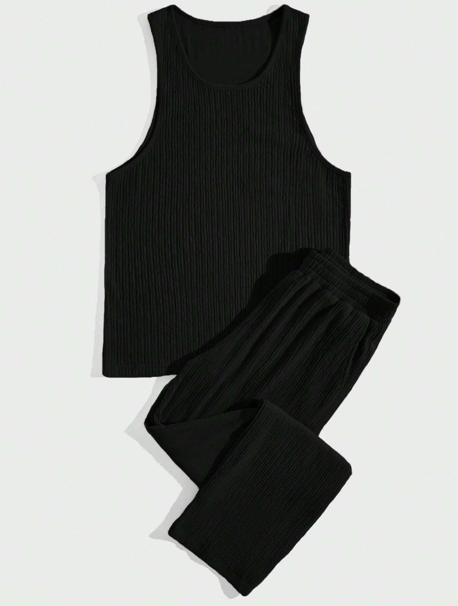 2025 남자 조끼 여름 미국 슬림 핏 스포츠 솔리드 컬러 조끼 남자 유행 캐주얼 스트레치 세트