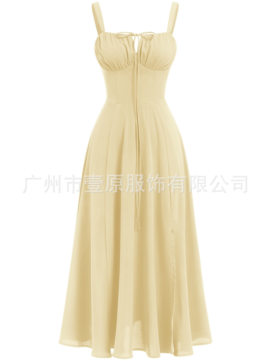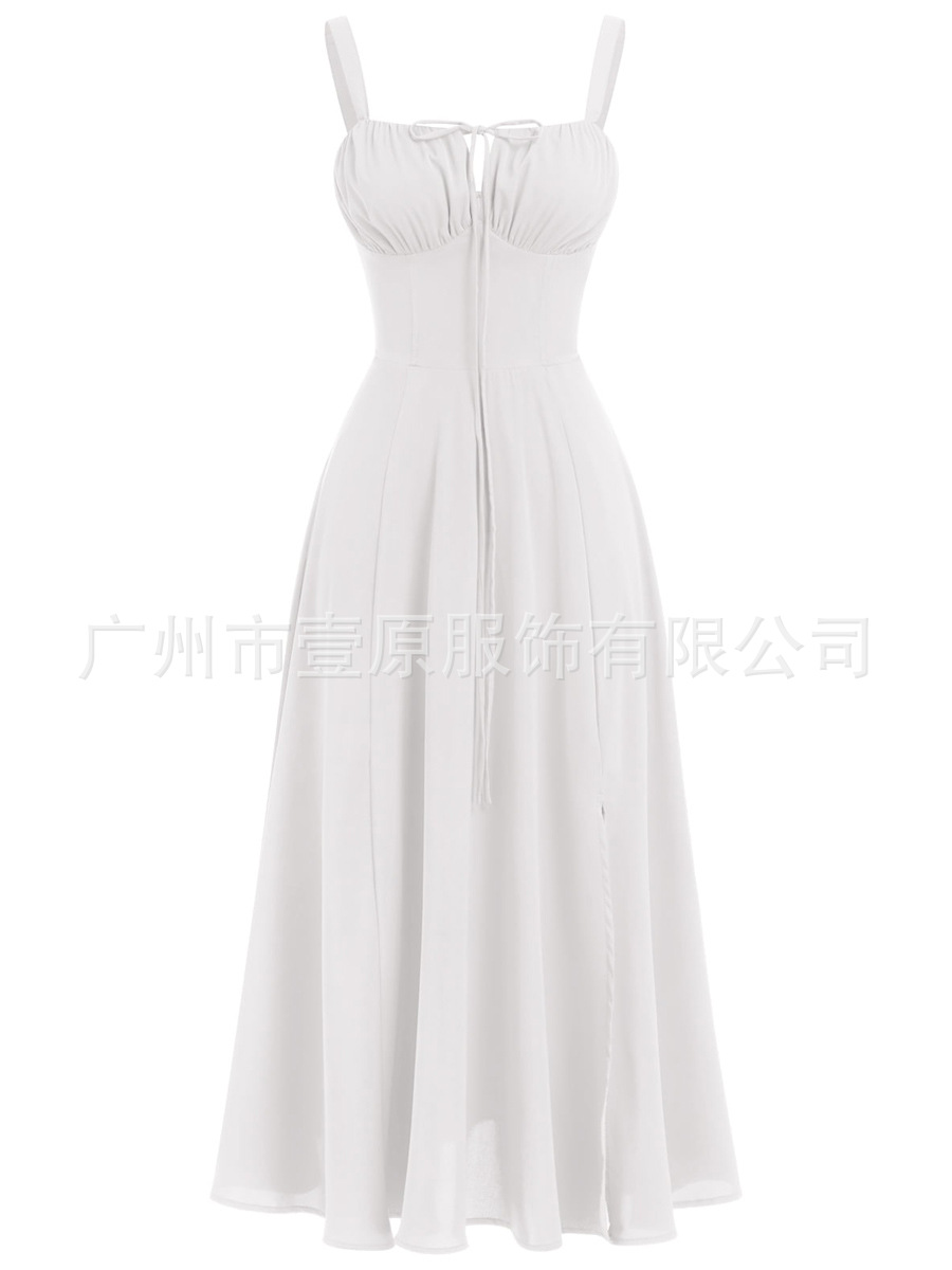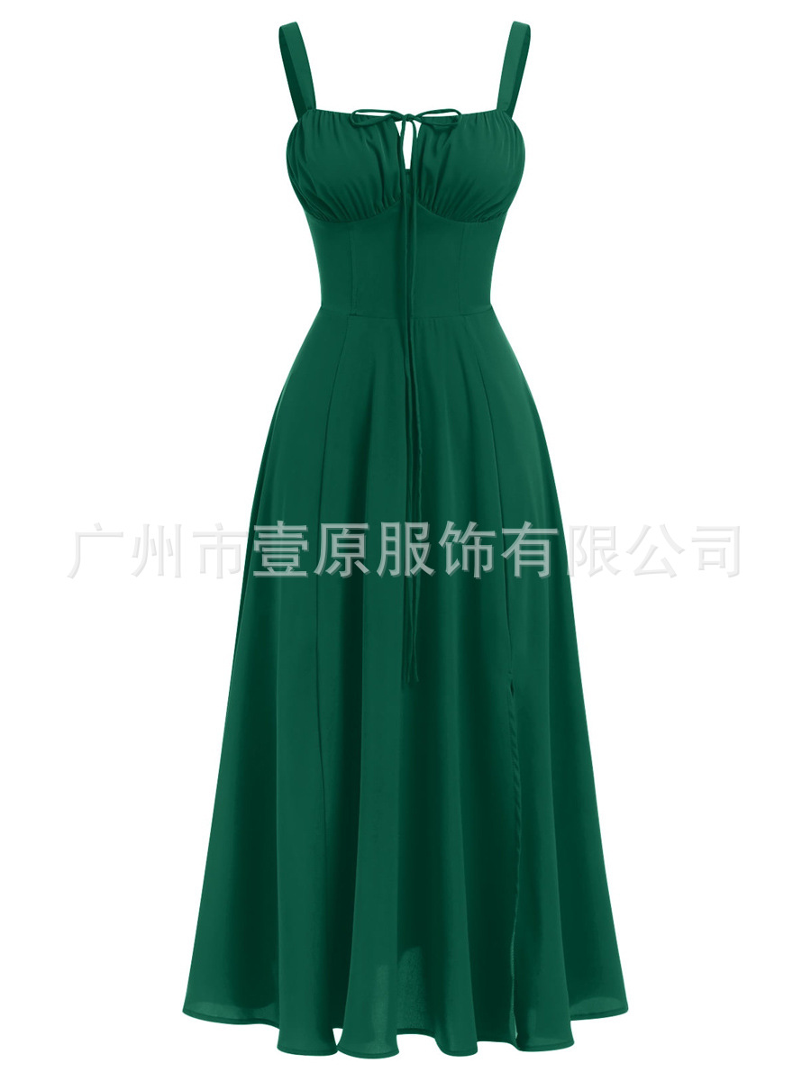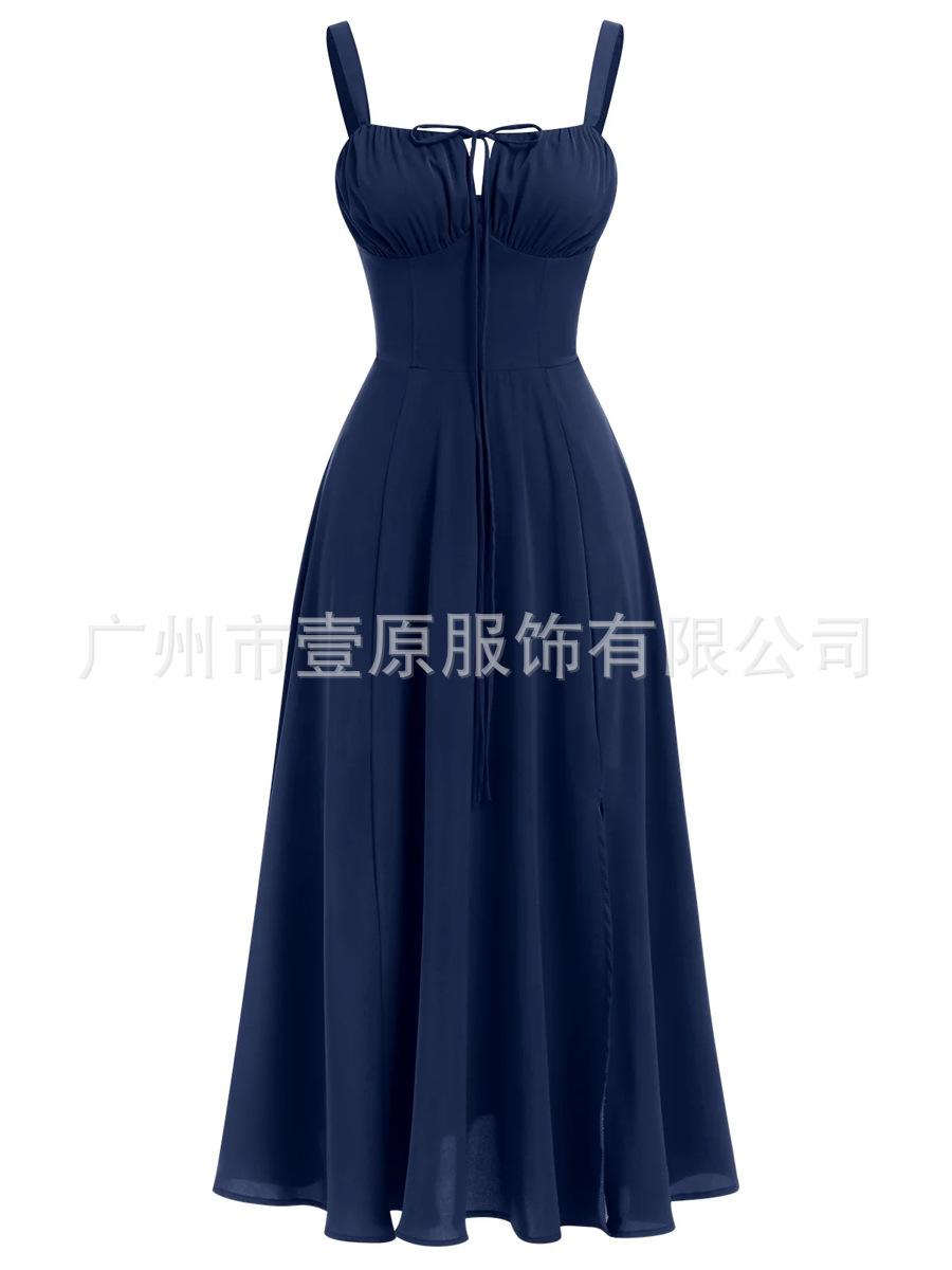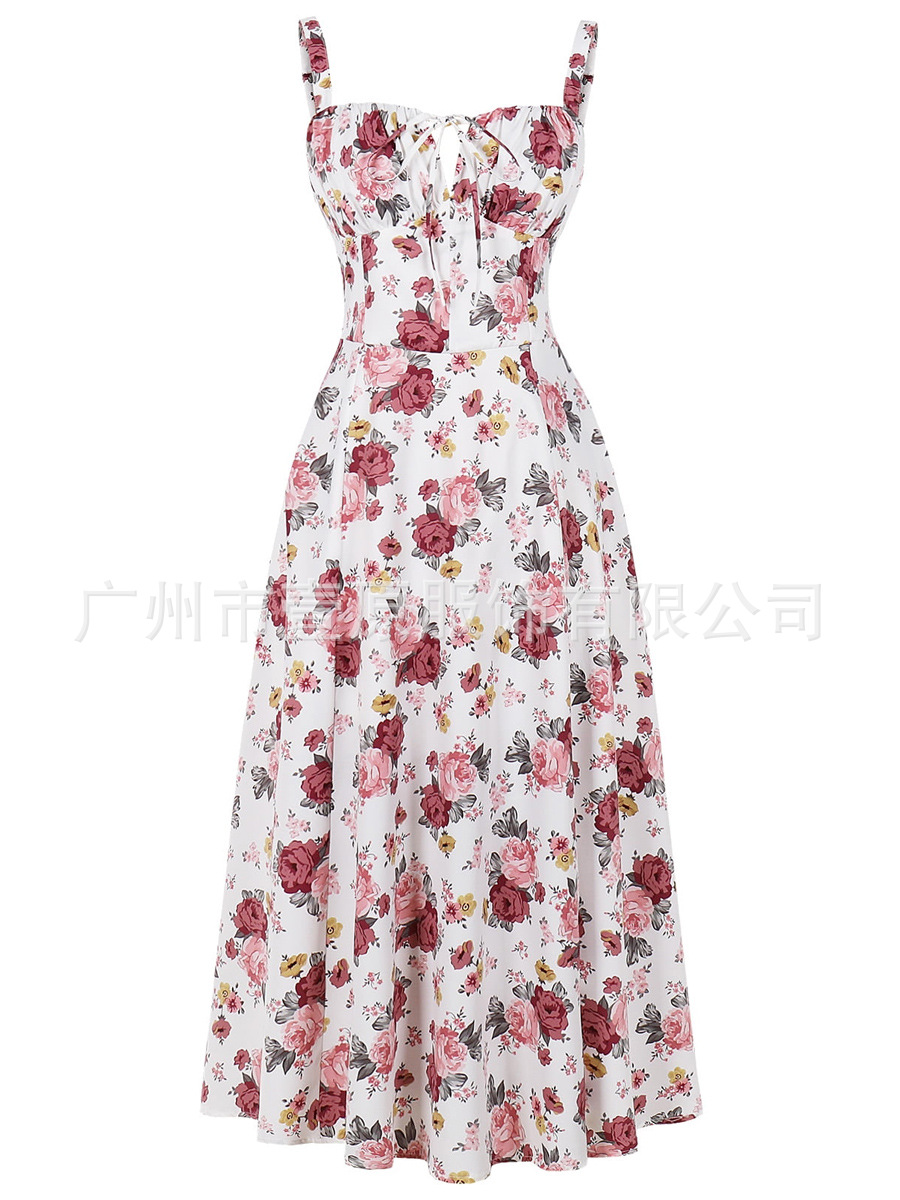 국경 간 유럽과 미국 2025 아마존 여름 새로운 인쇄 레이스 업 슬링 원피스 백 스트랩 허리 긴 원피스