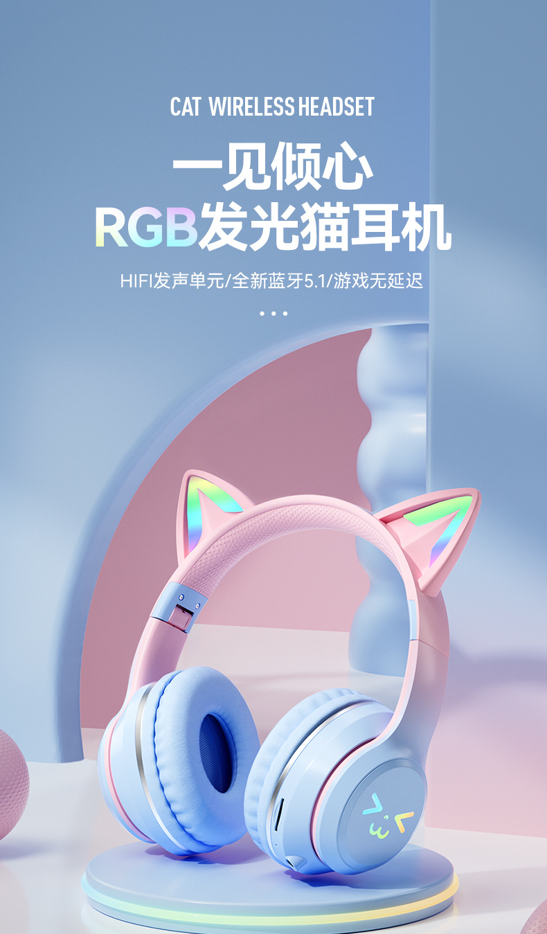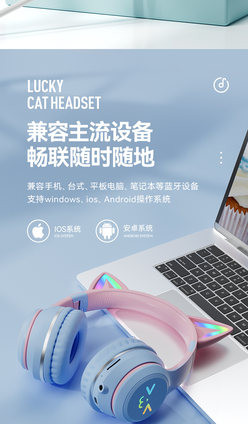 폭발적인 귀여운 빛나는 블루투스 헤드셋 무선 헤드셋 고양이 귀 카메라 헤드셋 게임 음악 범용 헤드셋