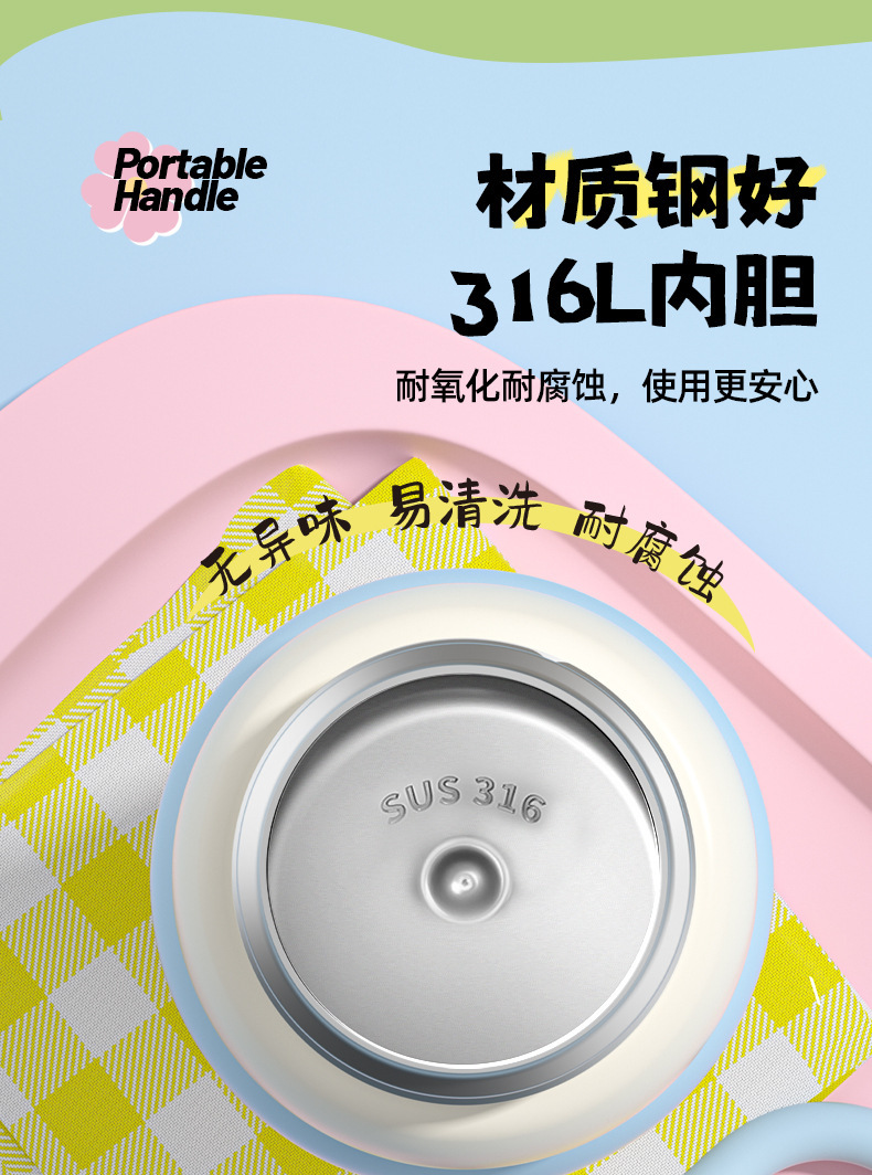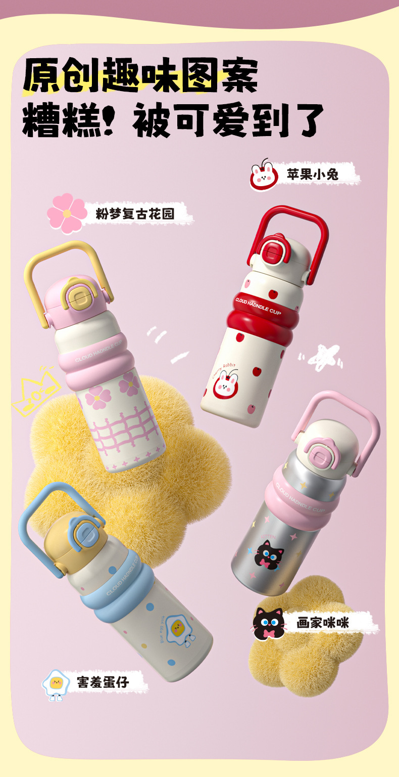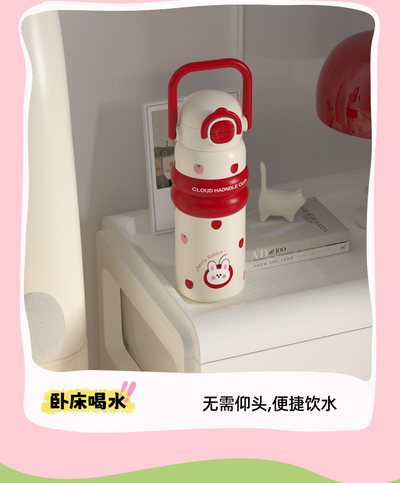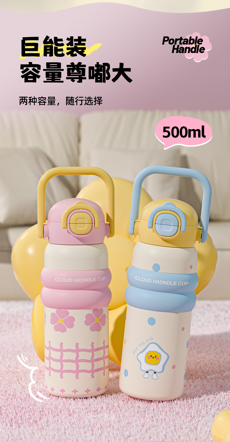316 스테인레스 스틸 보온병 컵 대용량 소녀 높은 가치 학생 밀짚 컵 만화 운반 스포츠 주전자스토어 가기