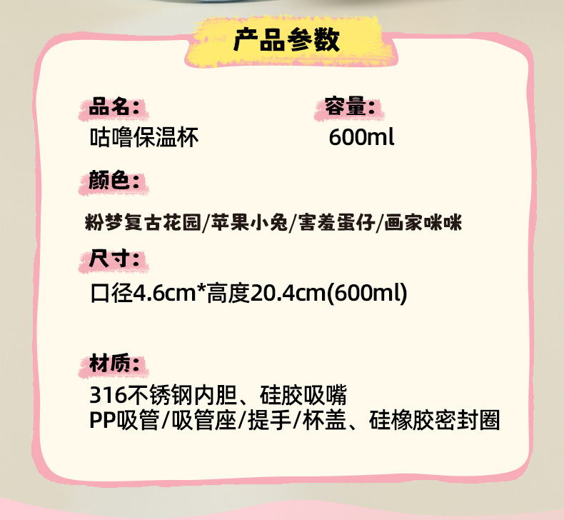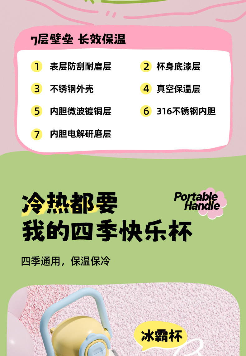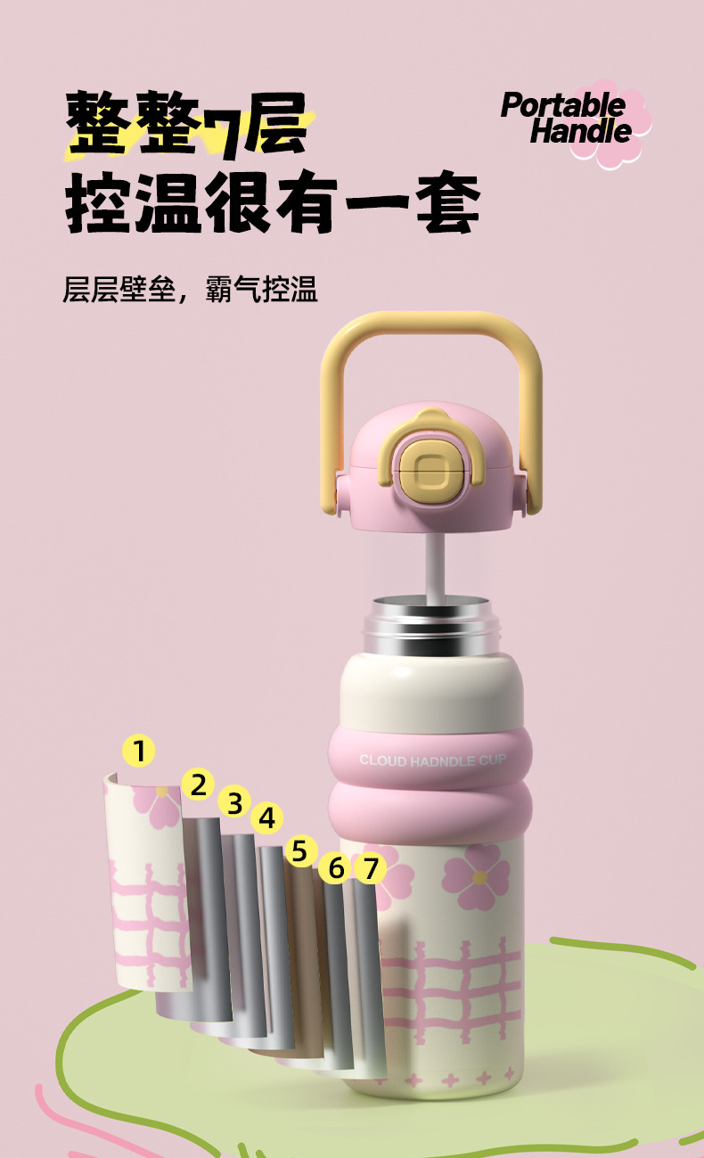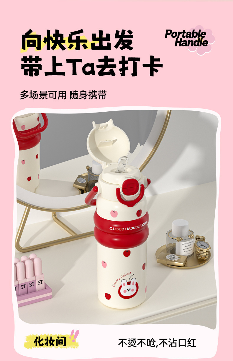 316 스테인레스 스틸 보온병 컵 대용량 소녀 높은 가치 학생 밀짚 컵 만화 운반 스포츠 주전자스토어 가기
