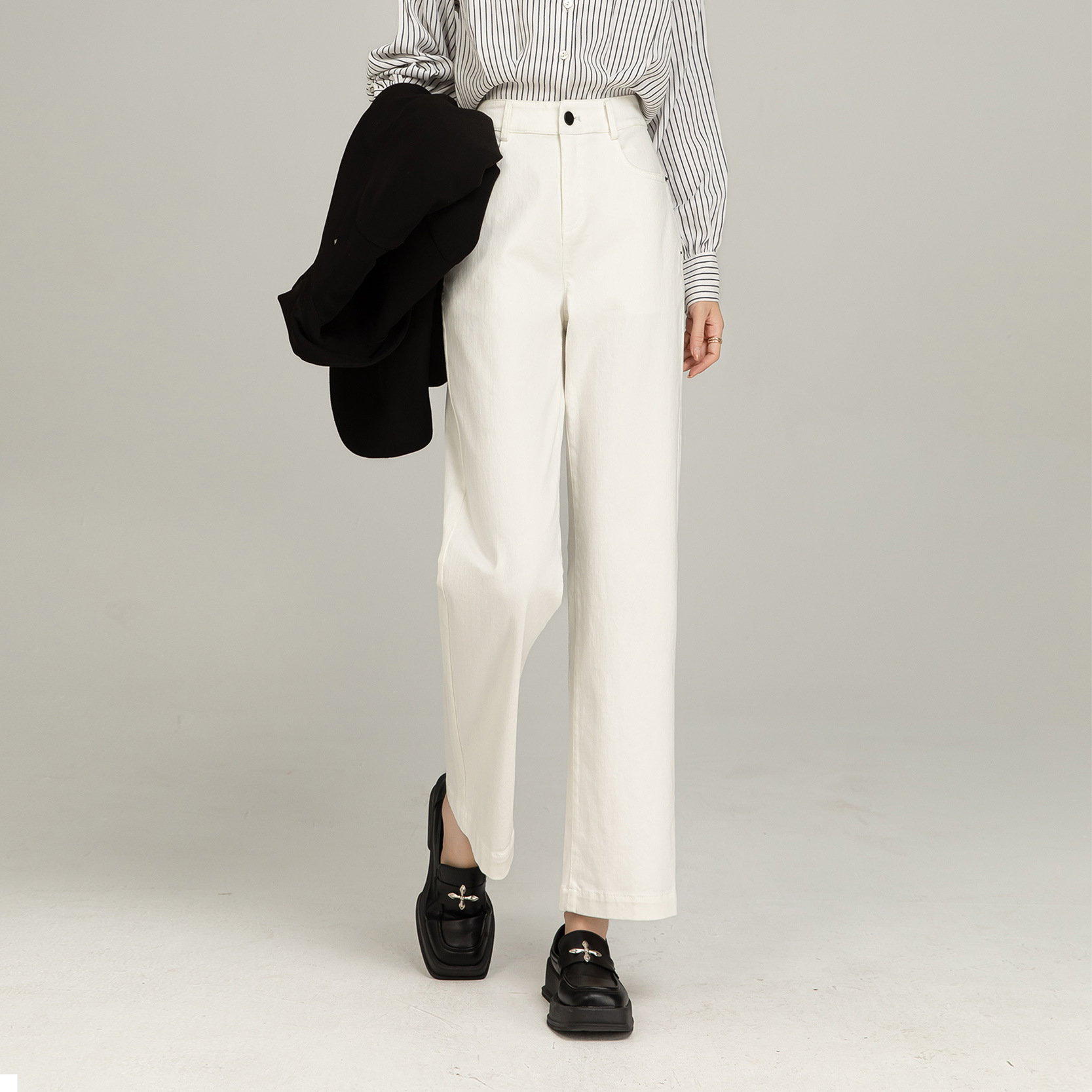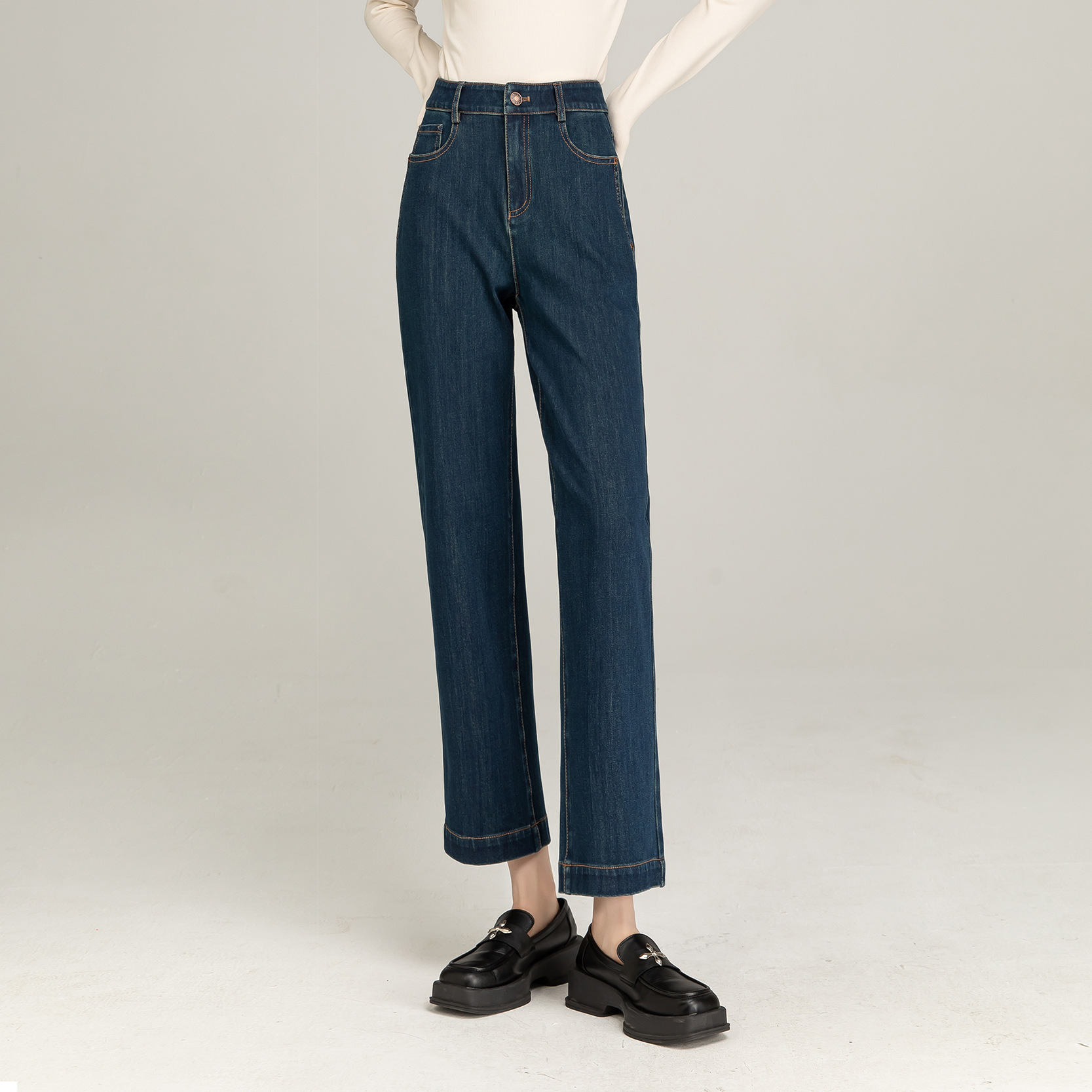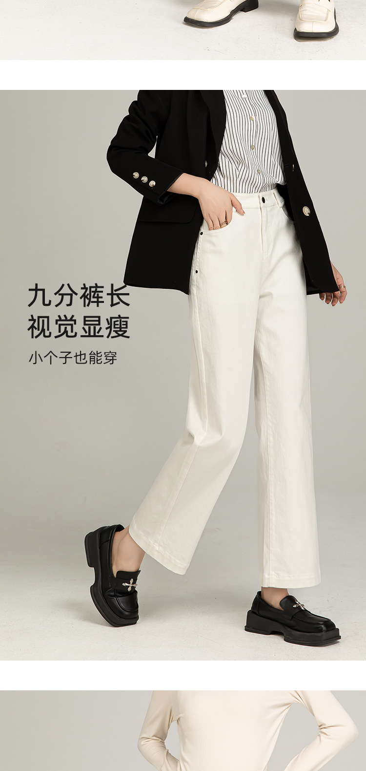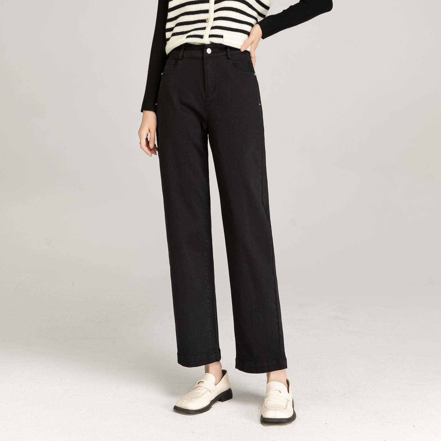 여성용 청바지 슬림핏 스트레이트 팬츠, 키 작은 여성용 스모크 파이프 팬츠, 하이웨이스트 9부 팬츠, 여성용 슬림핏 팬츠스토어 가기