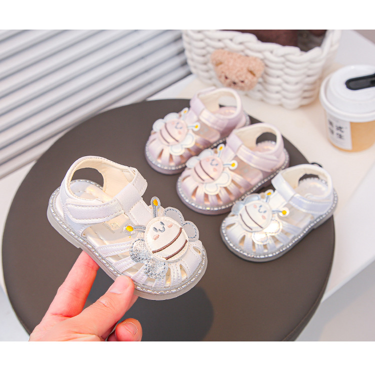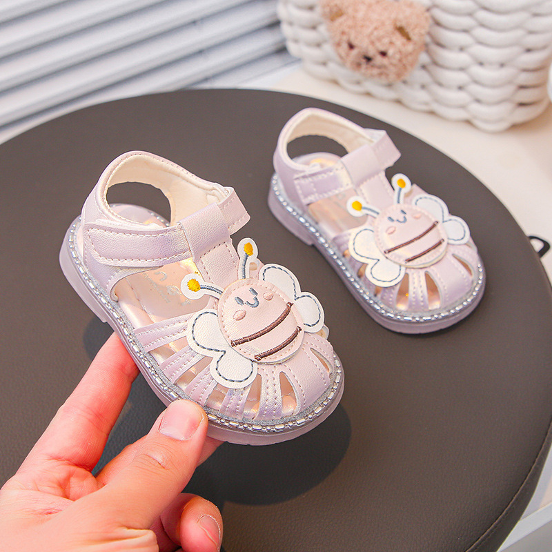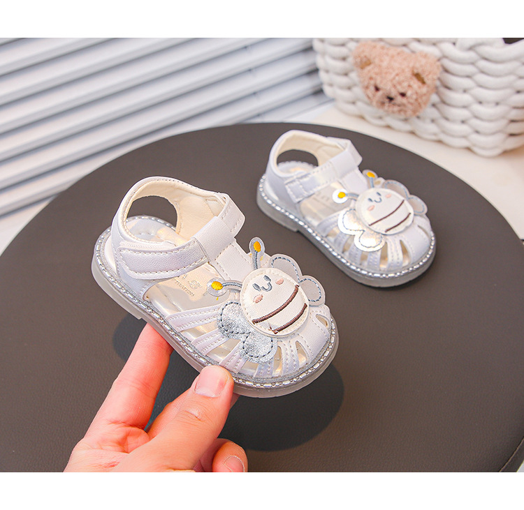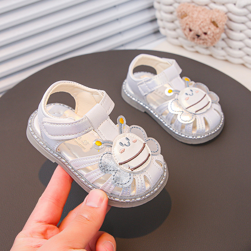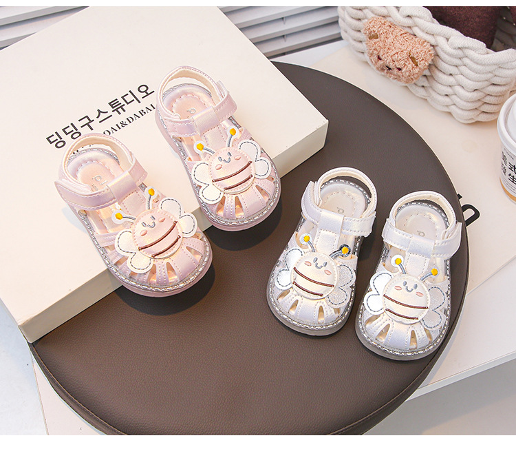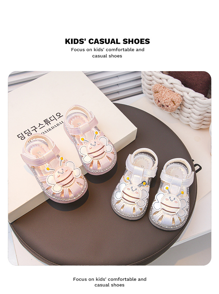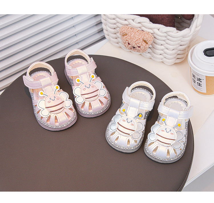 여자 소프트 단독 미끄럼 방지 발가락 샌들 2025 년 여름 새 한국식 꿀벌 만화 아기 유아 신발 0-3 년