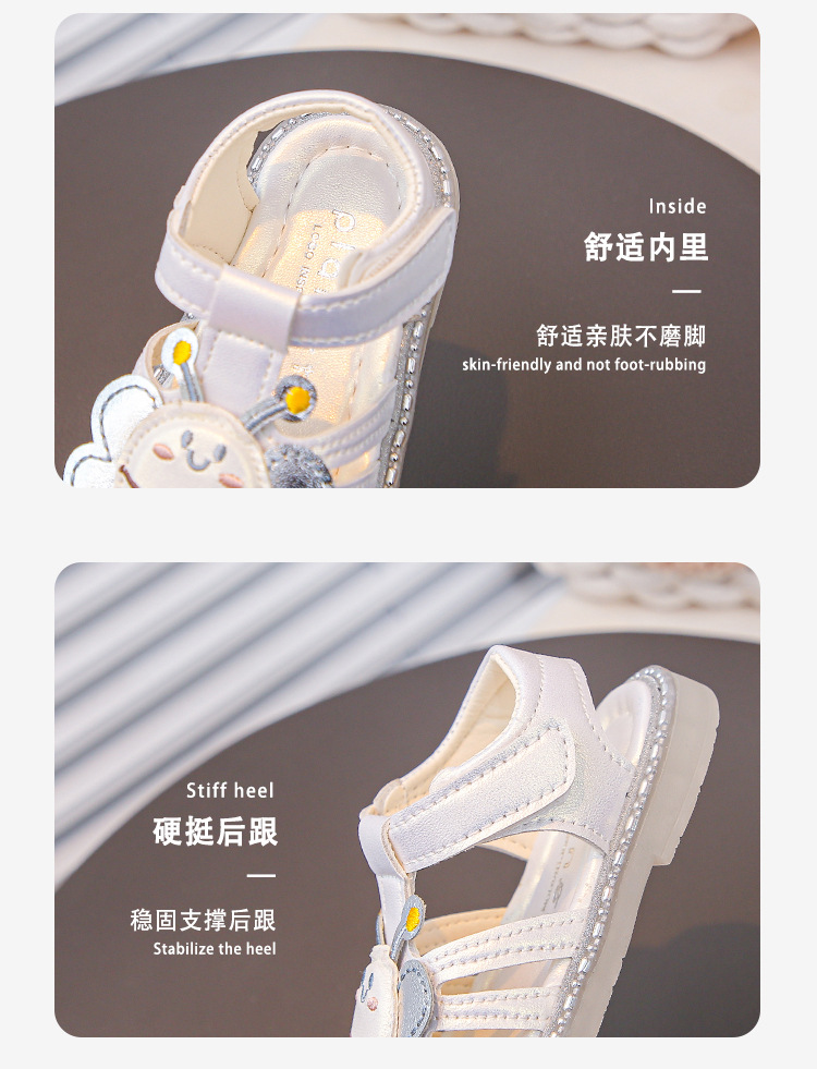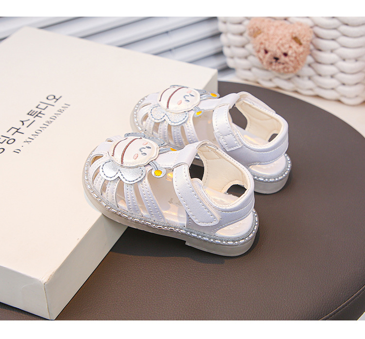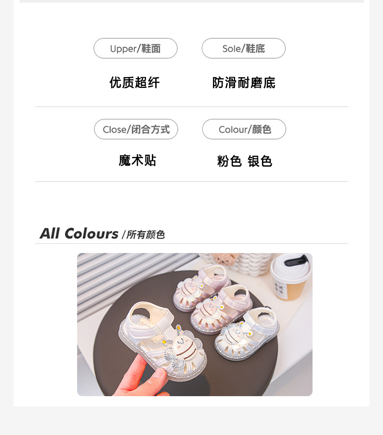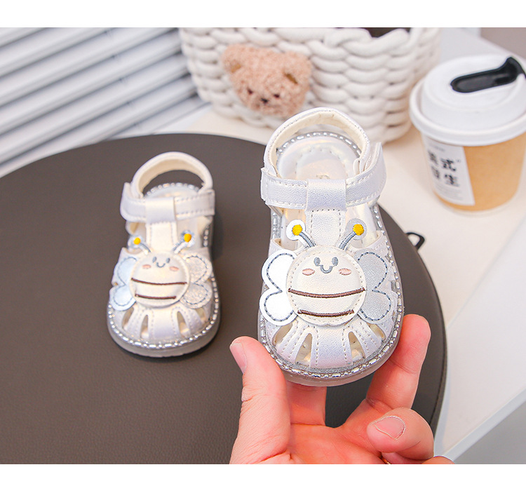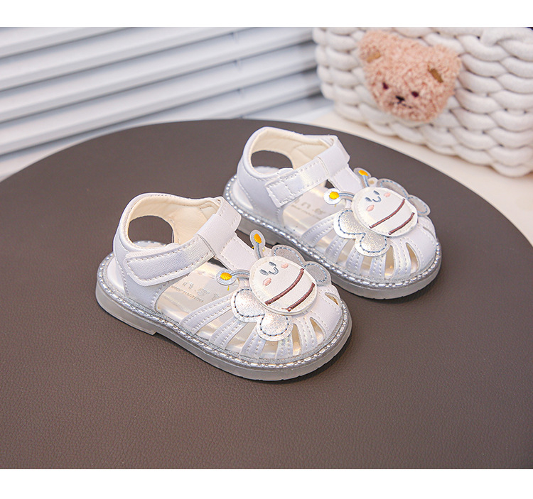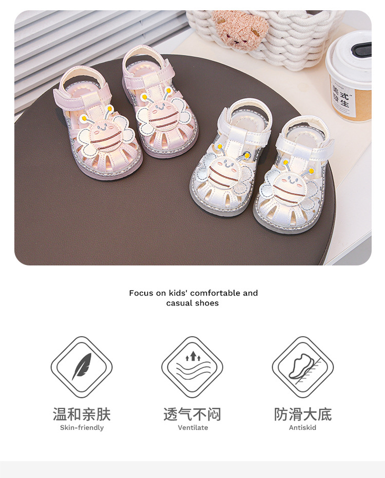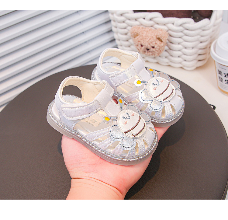 여자 소프트 단독 미끄럼 방지 발가락 샌들 2025 년 여름 새 한국식 꿀벌 만화 아기 유아 신발 0-3 년