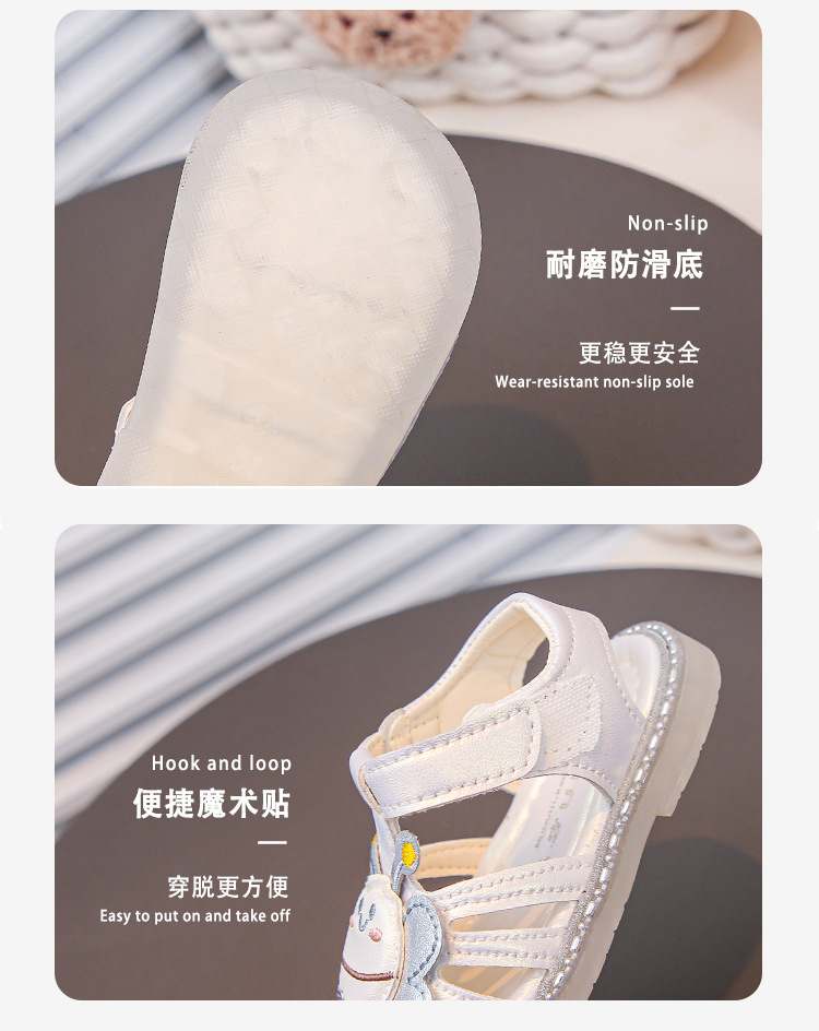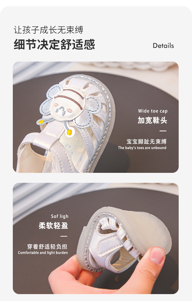 여자 소프트 단독 미끄럼 방지 발가락 샌들 2025 년 여름 새 한국식 꿀벌 만화 아기 유아 신발 0-3 년스토어 가기